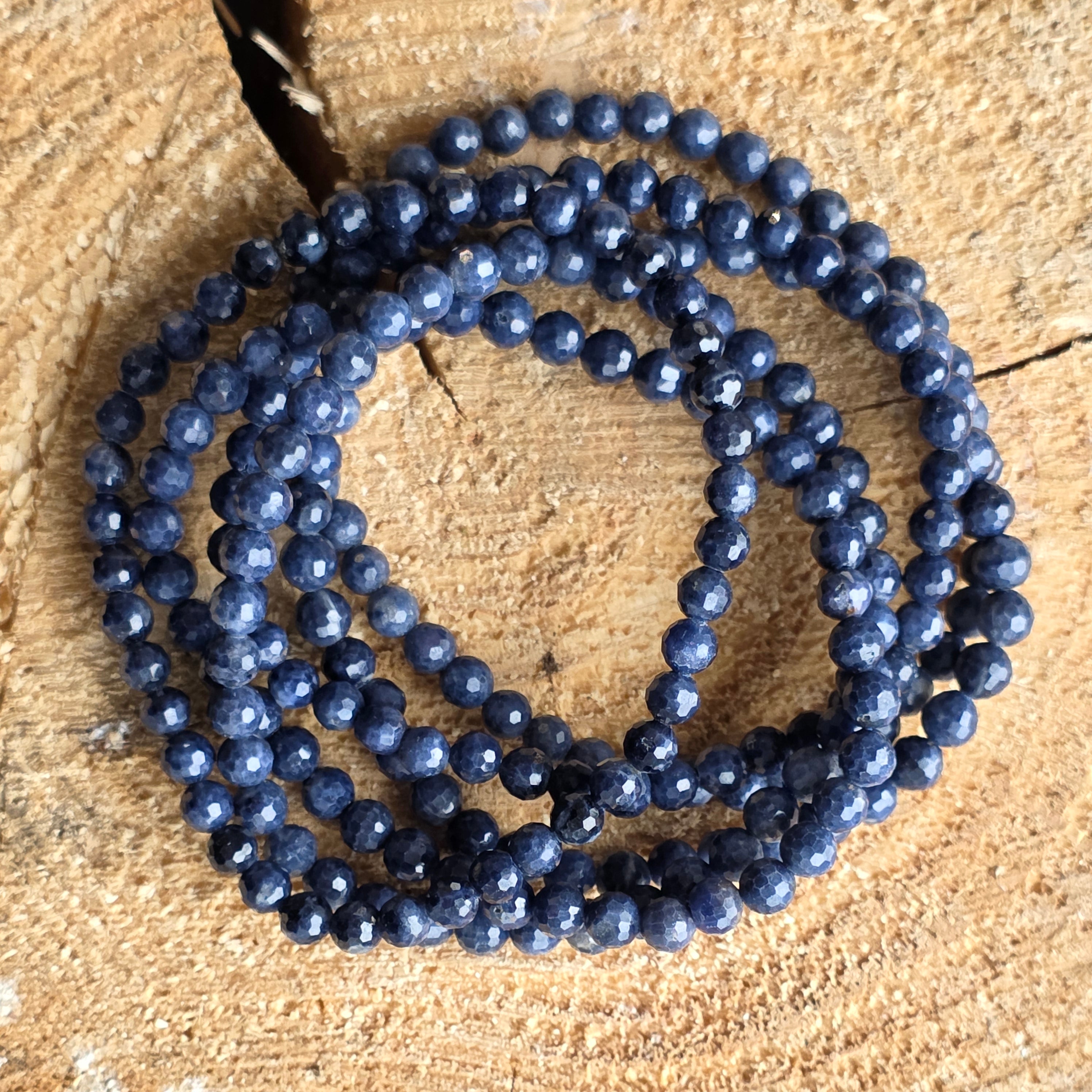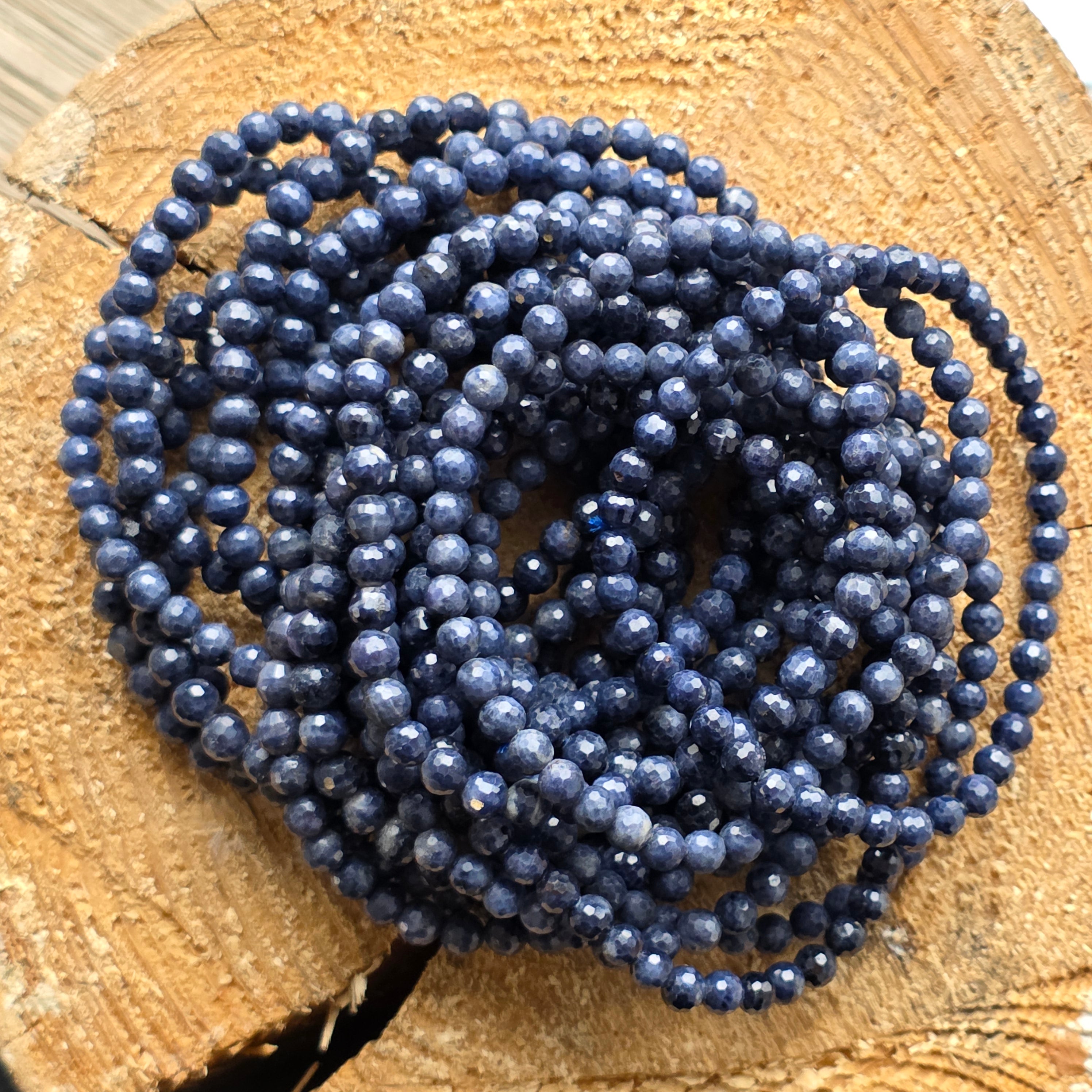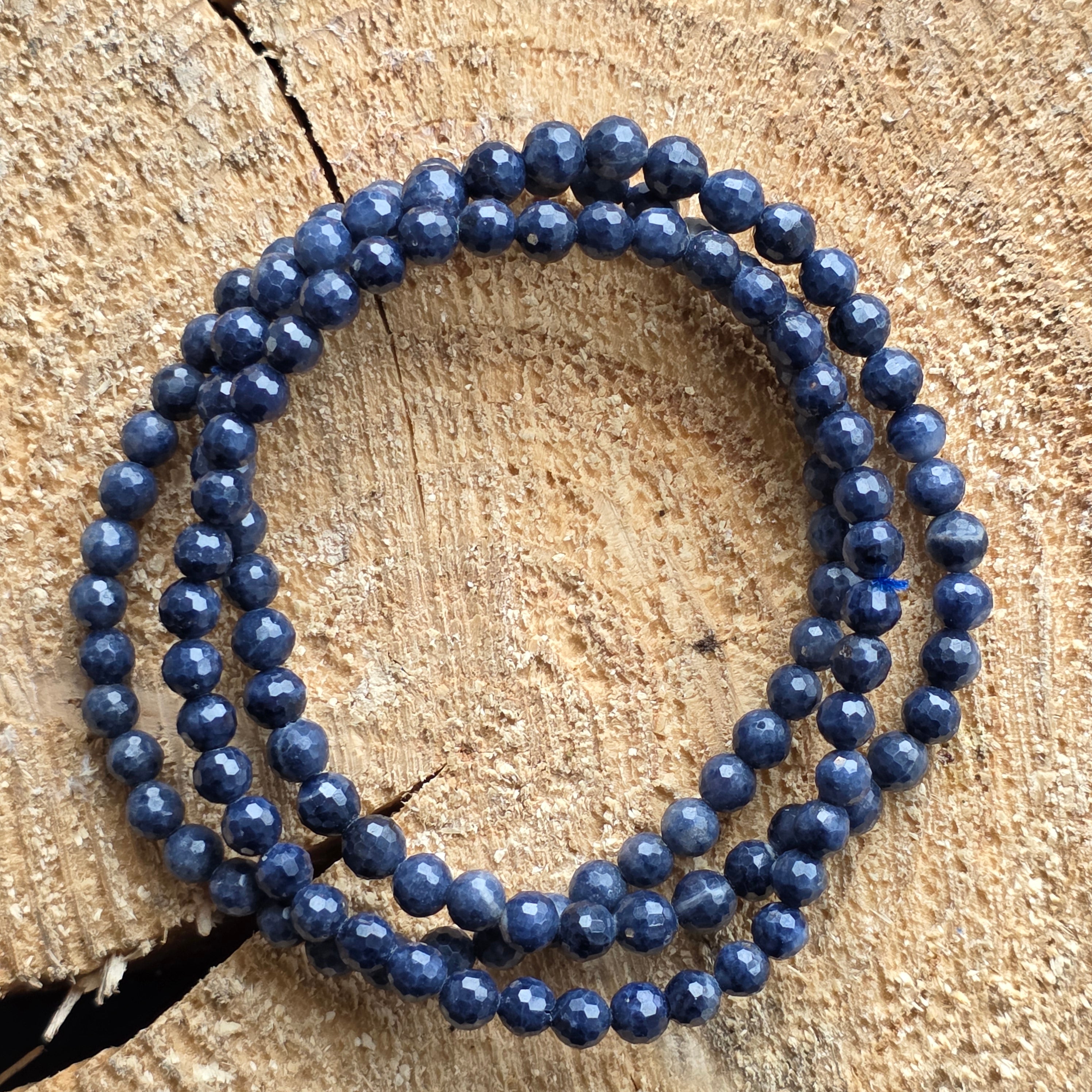 Фина като шепот и все пак пълна с дълбочина гривна, подобно на нощното небе, в което се отразяват звездите. Мънистата фасетирани натурални сапфирис диаметър 5 ммблестят в нюанси на наситено синьо, понякога с дълбоки индигови отблясъци или по-светли тонове, които придават баланс на композицията. Това е дискретно и изискано бижу, създадено за тези, които носят в сърцето си тихата елегантност и вътрешната сила.