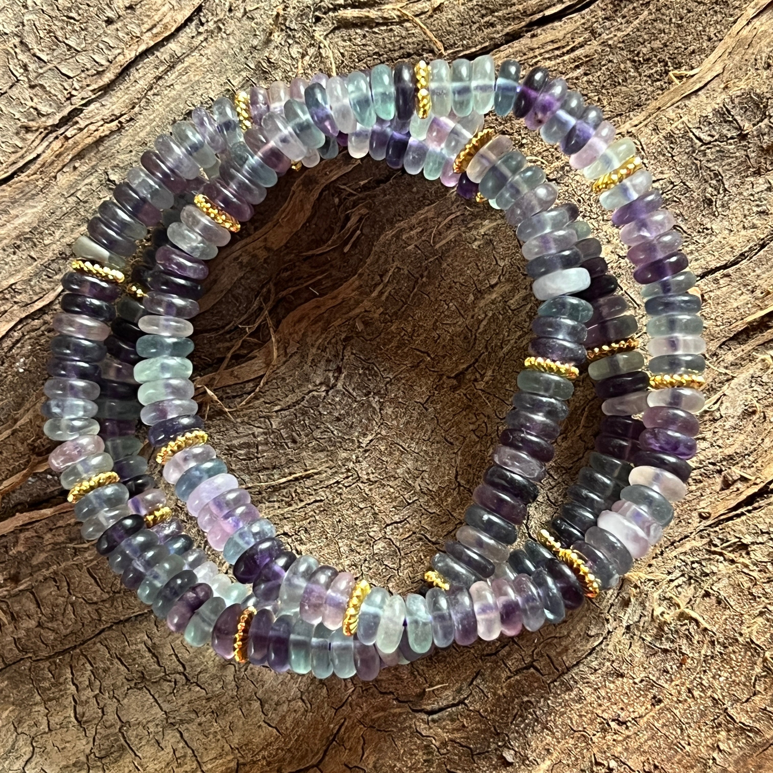 Descriere - Гривна с флуоритови дискове и златни вложки – 6x2 мм