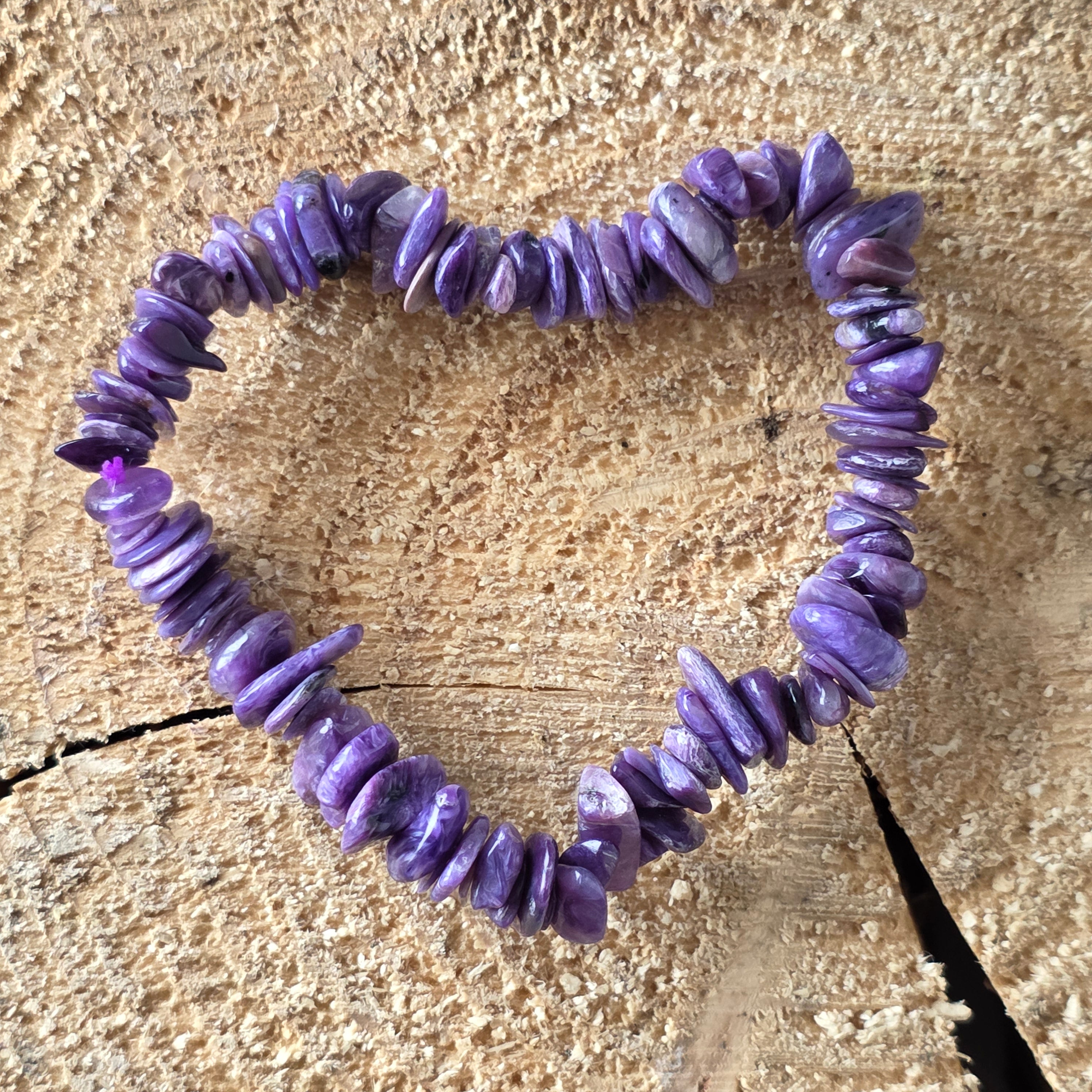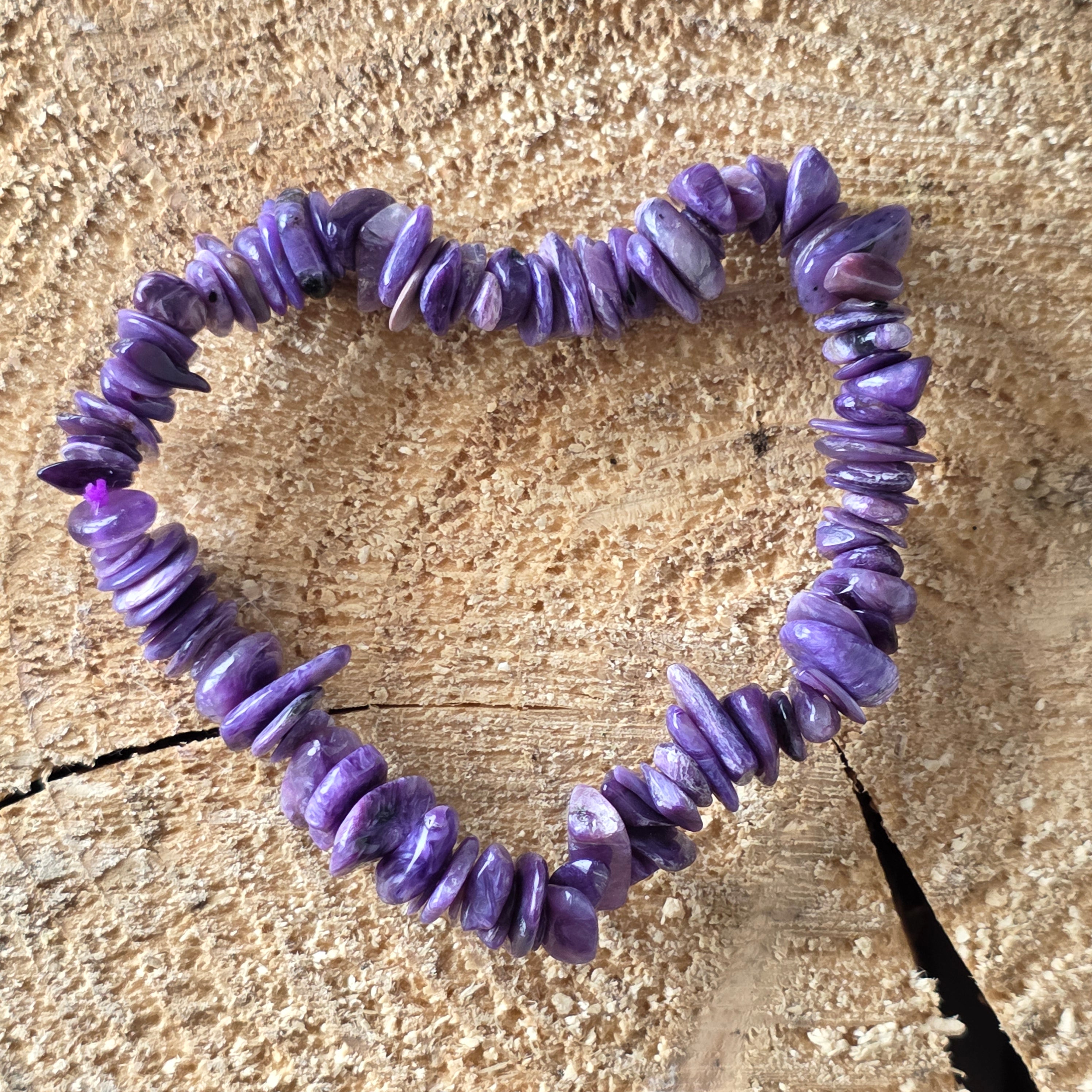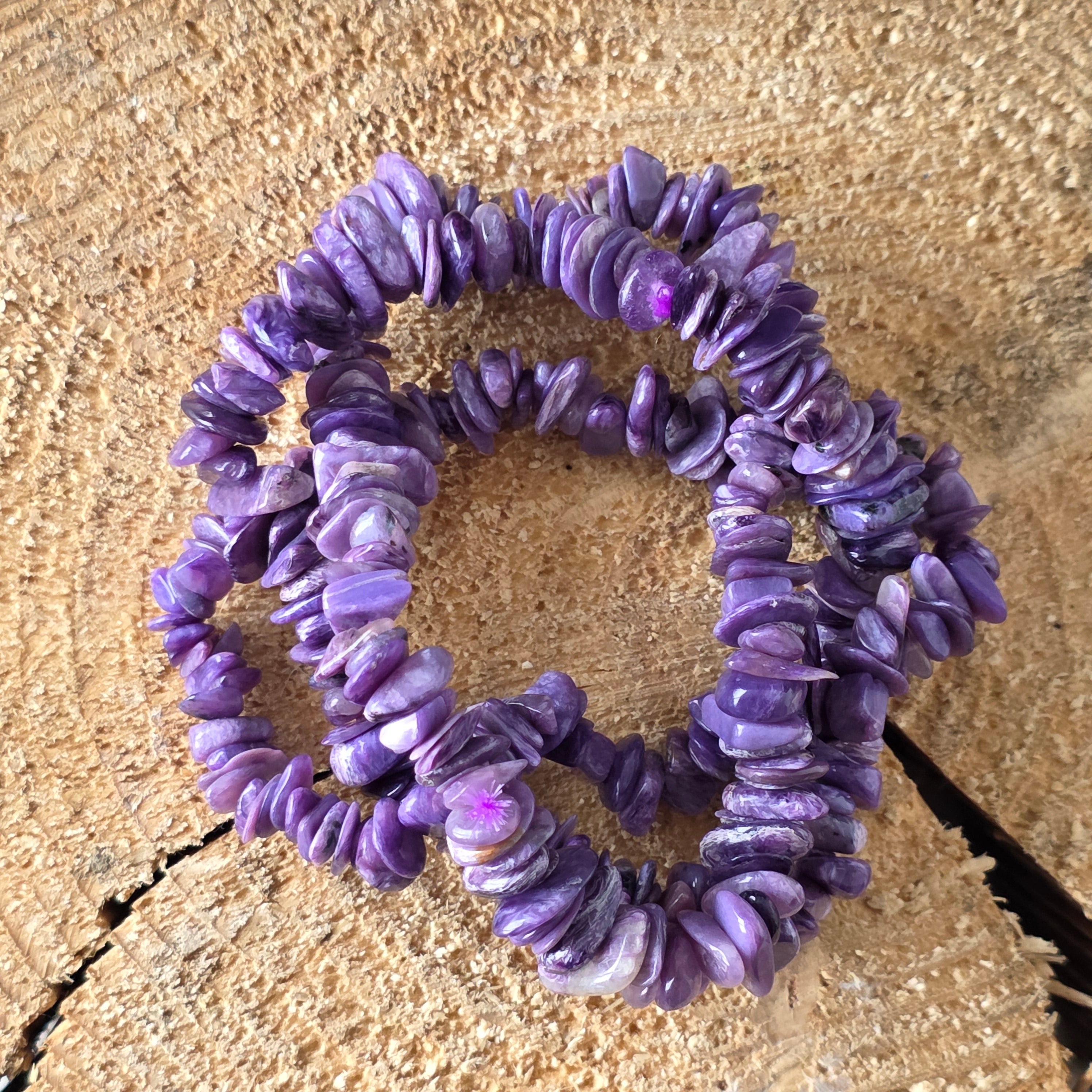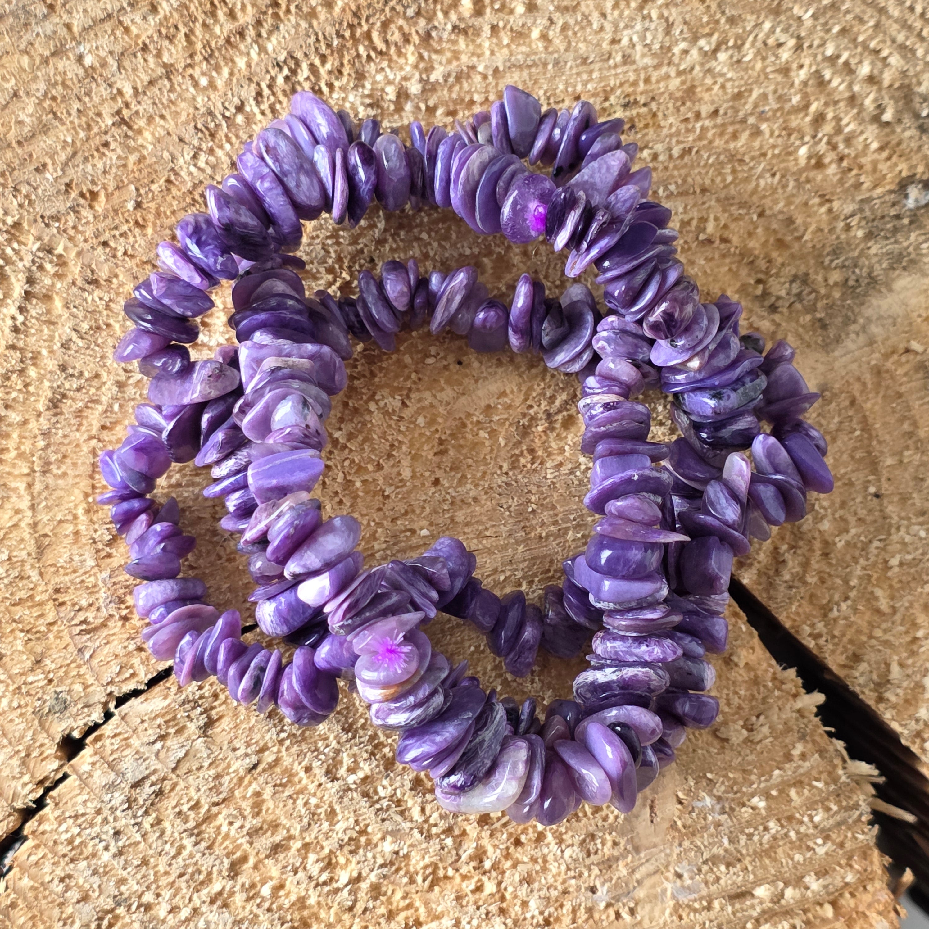 • Камък: чаароит натурален (нередовни, ръчно шлифовани чипсове) - камък на трансмутацията и вътрешното пречистване