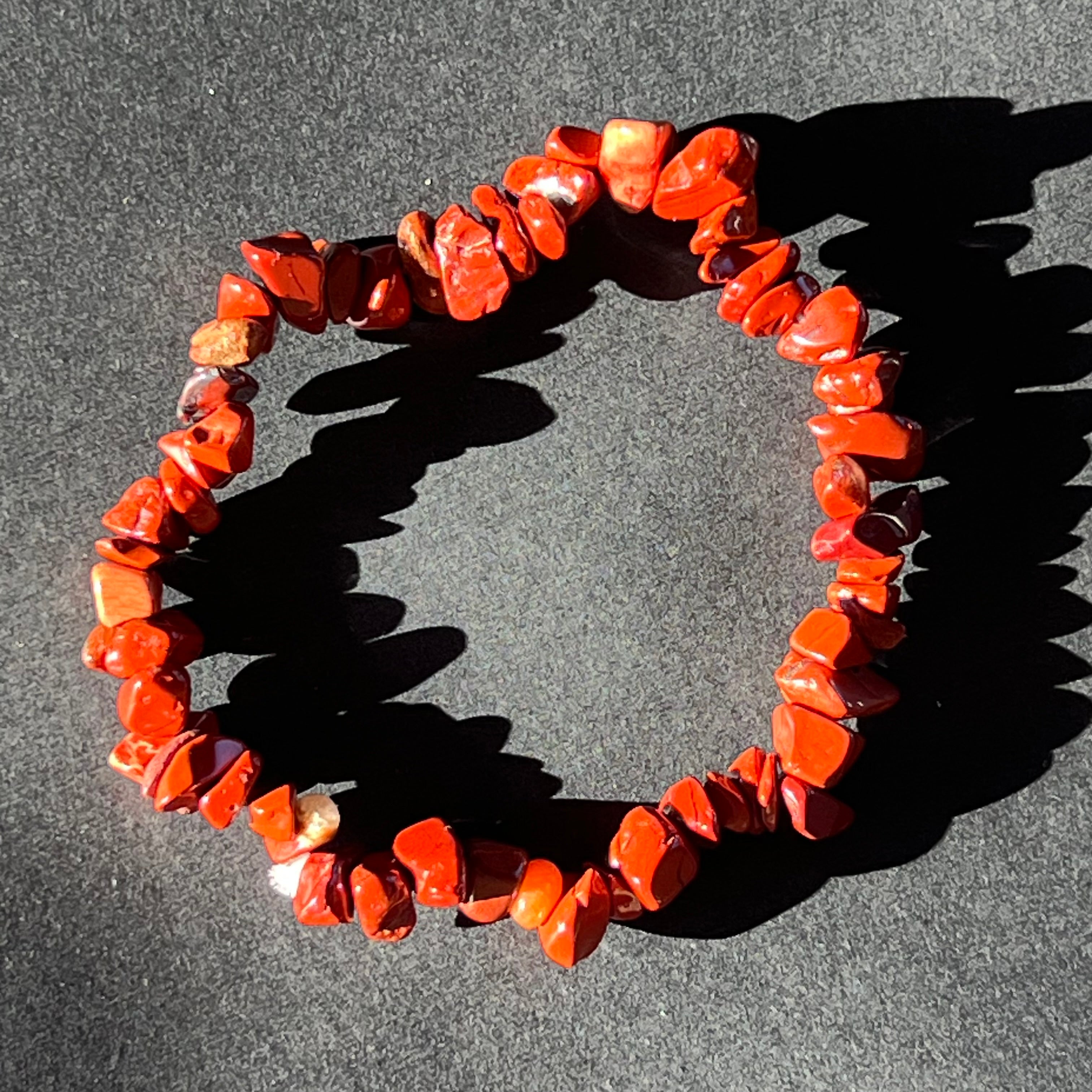 Червеният яспис най-често се свързва с коренната чакра, като се казва, че осигурява стабилност и сигурност на този, който го носи.