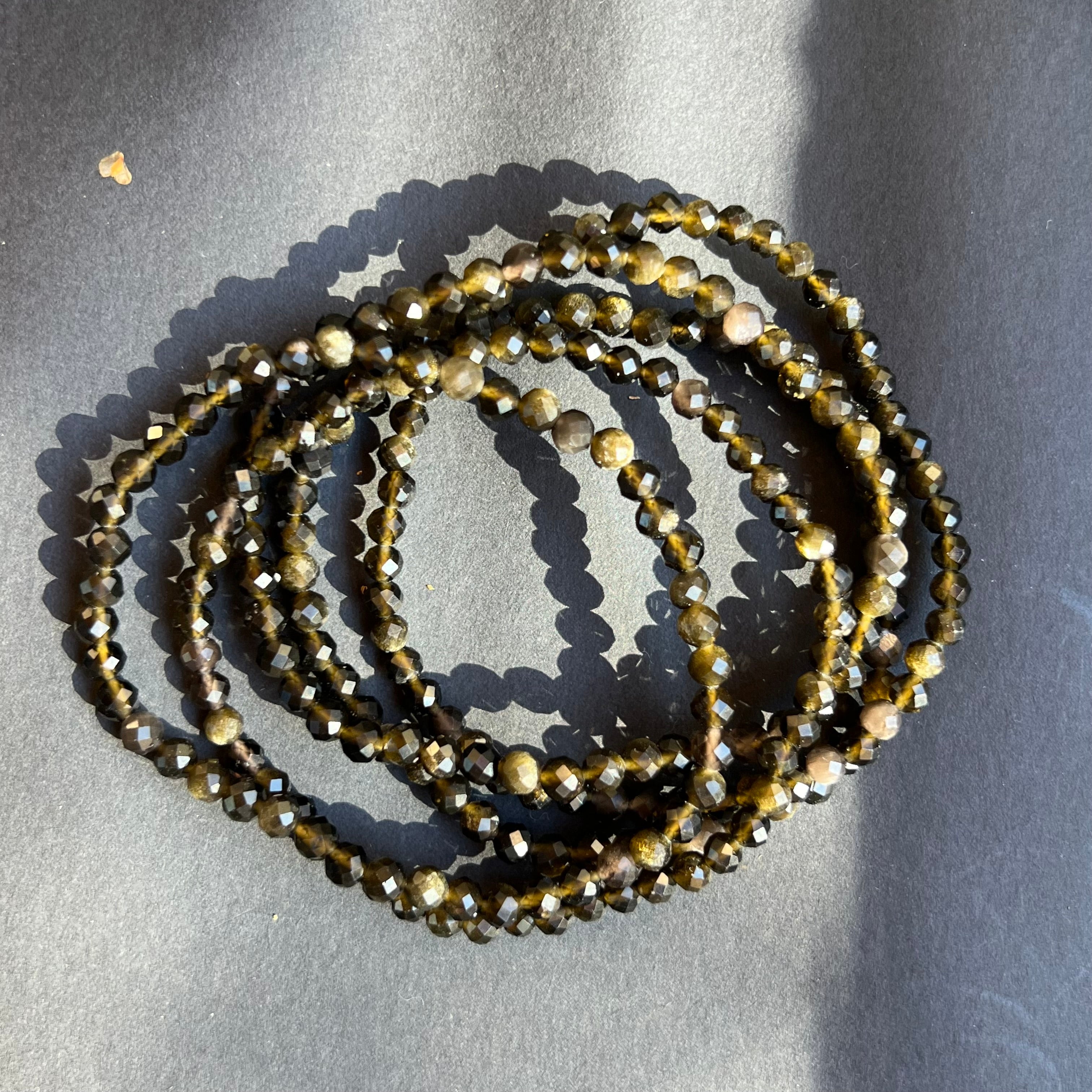 Descriere - Гривна фасетиран златист обсидиан 4 мм