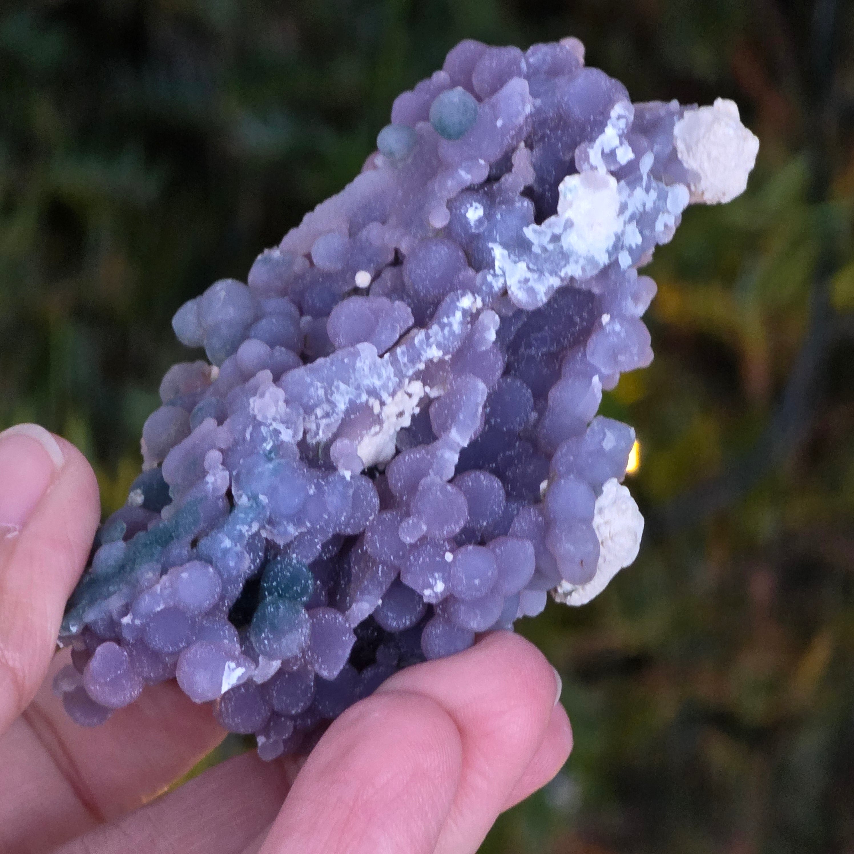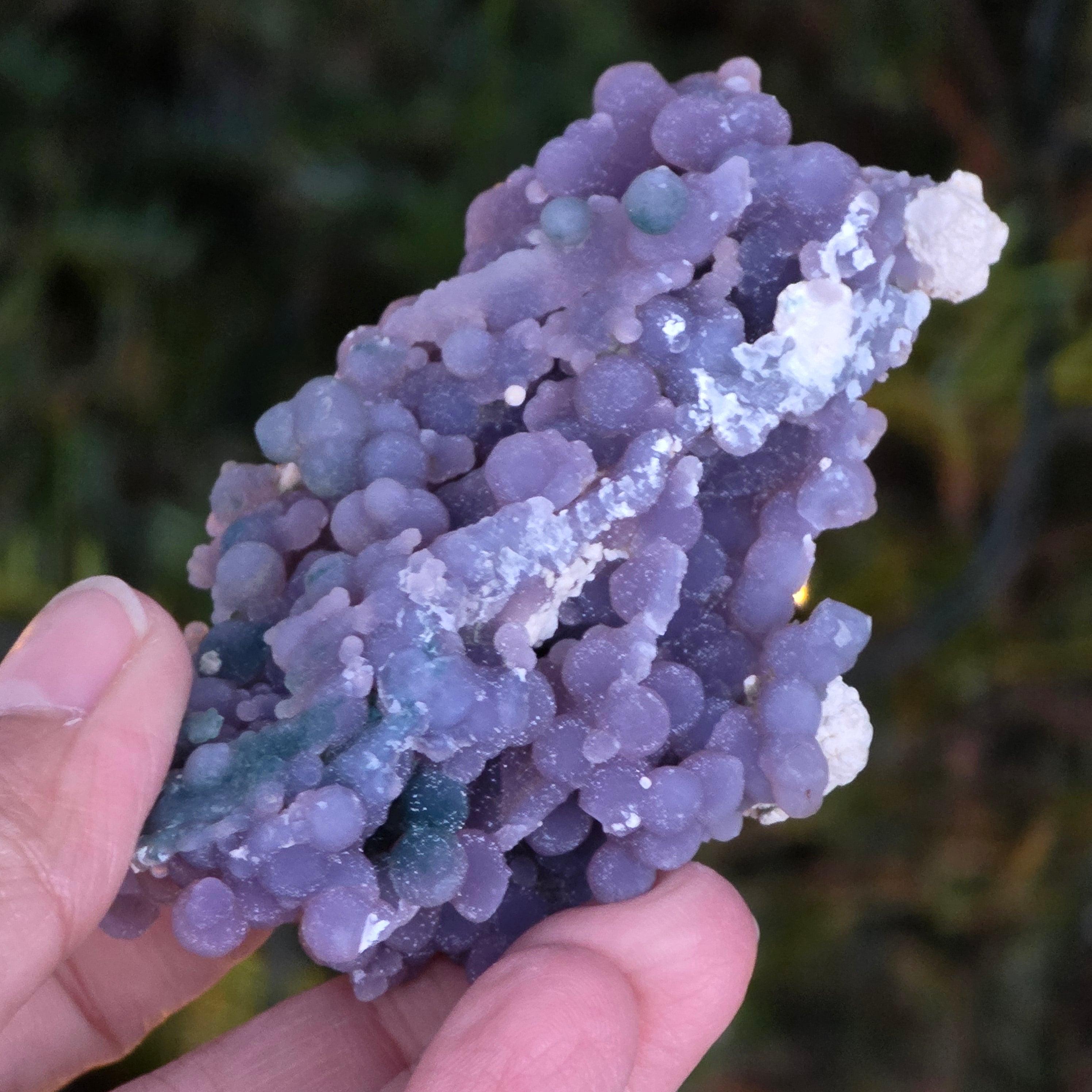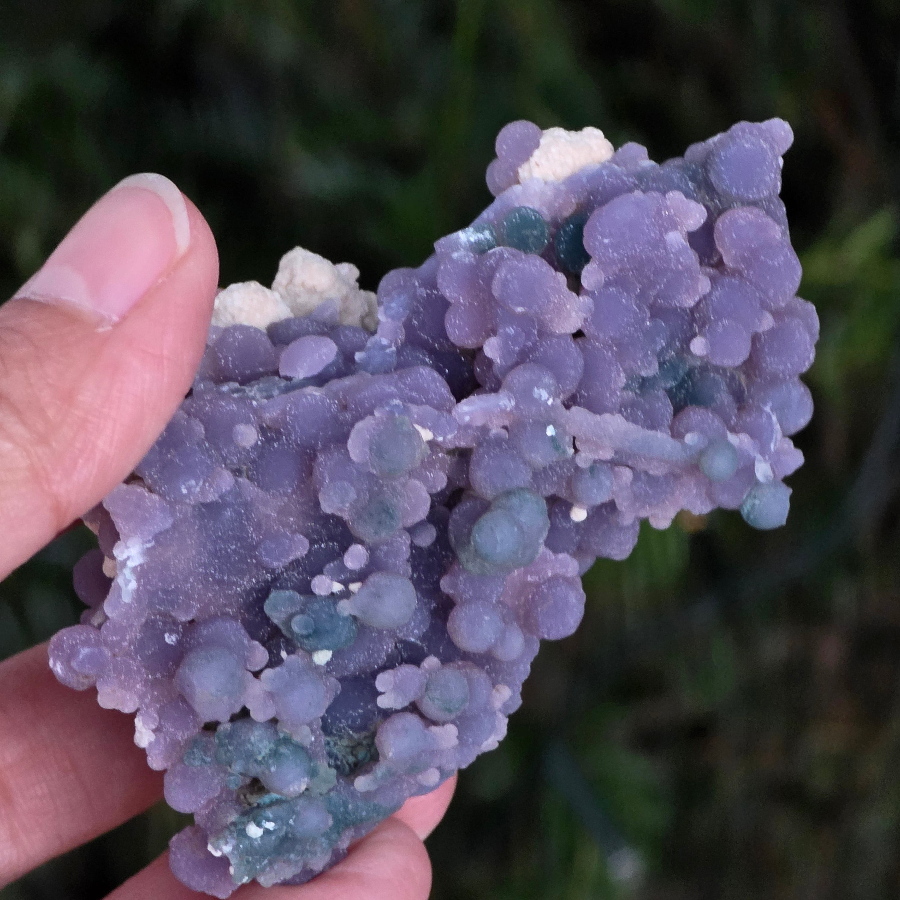 Гроздовият ахат се образува в кухините на вулканичните скали, където разтворите, богати на силиций, се охлаждат и кристализират, създавайки отличителния гроздов модел.