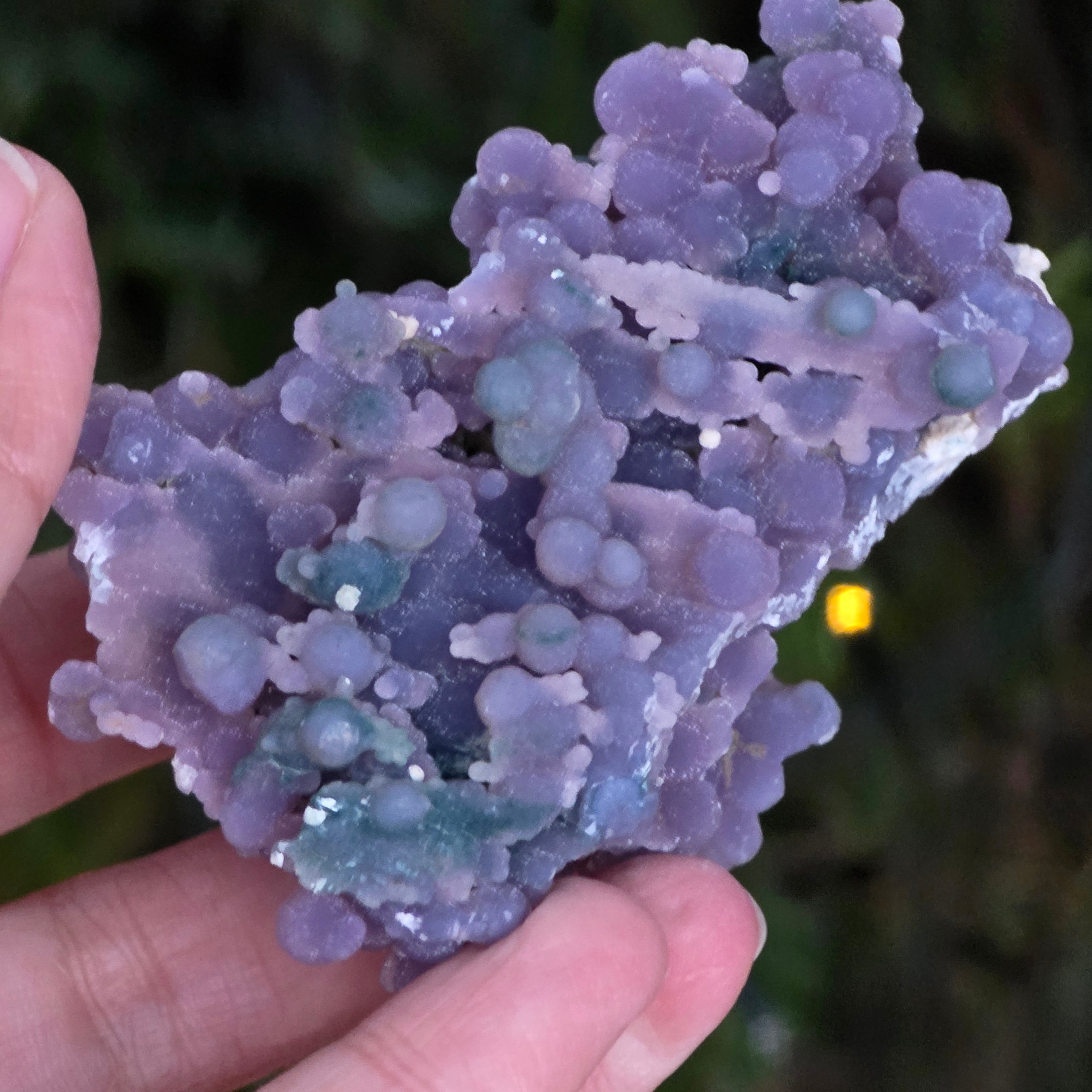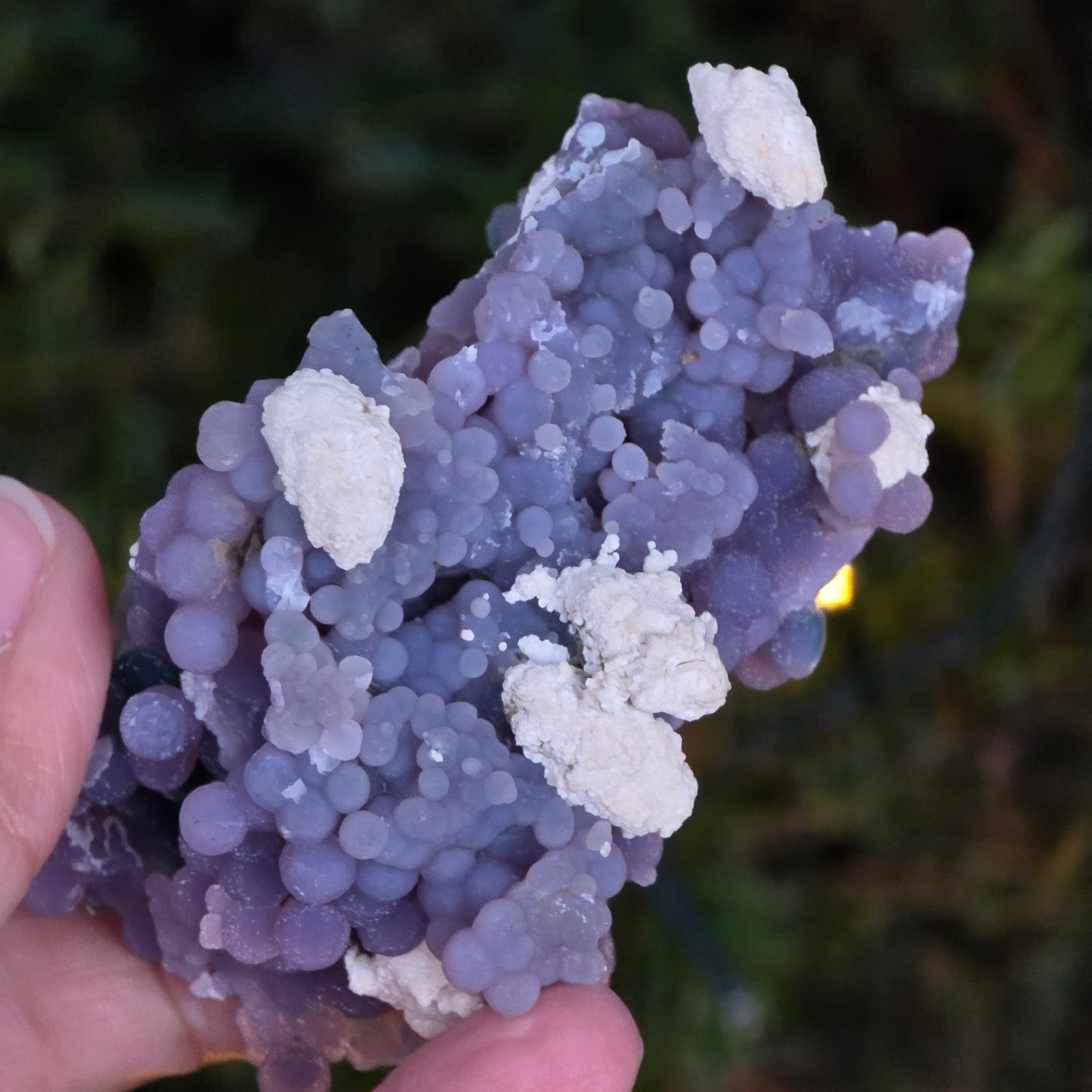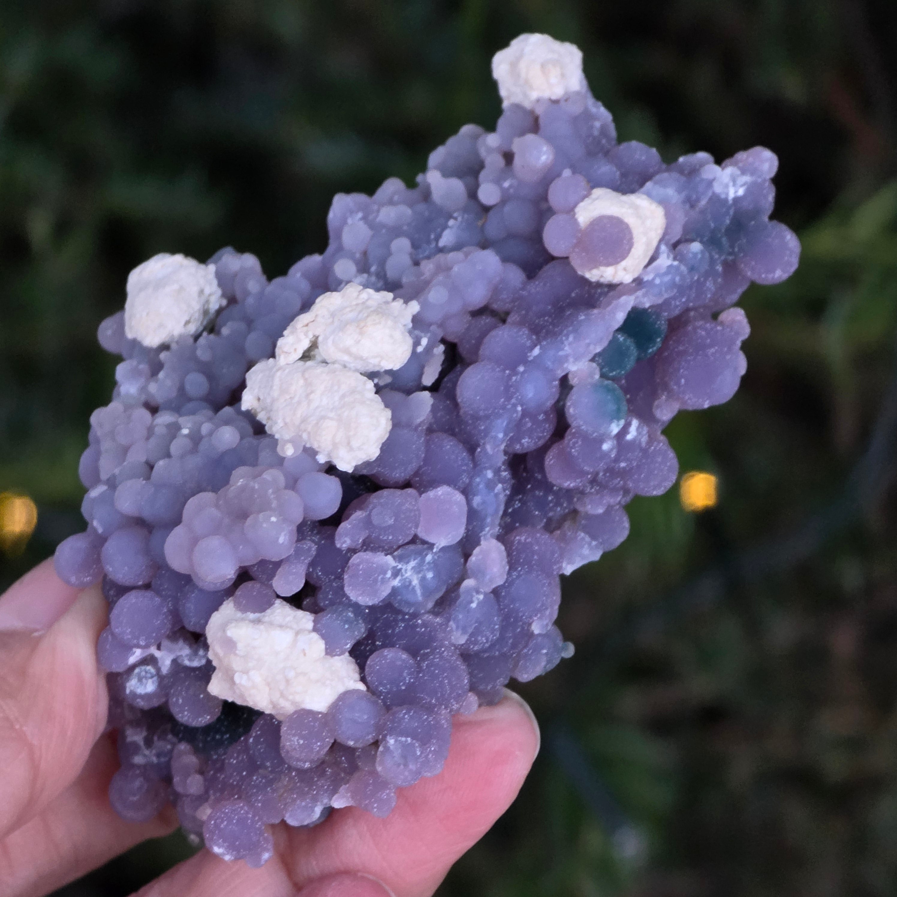 Гроздовият ахат се образува в кухините на вулканичните скали, където разтворите, богати на силиций, се охлаждат и кристализират, създавайки отличителния гроздов модел.