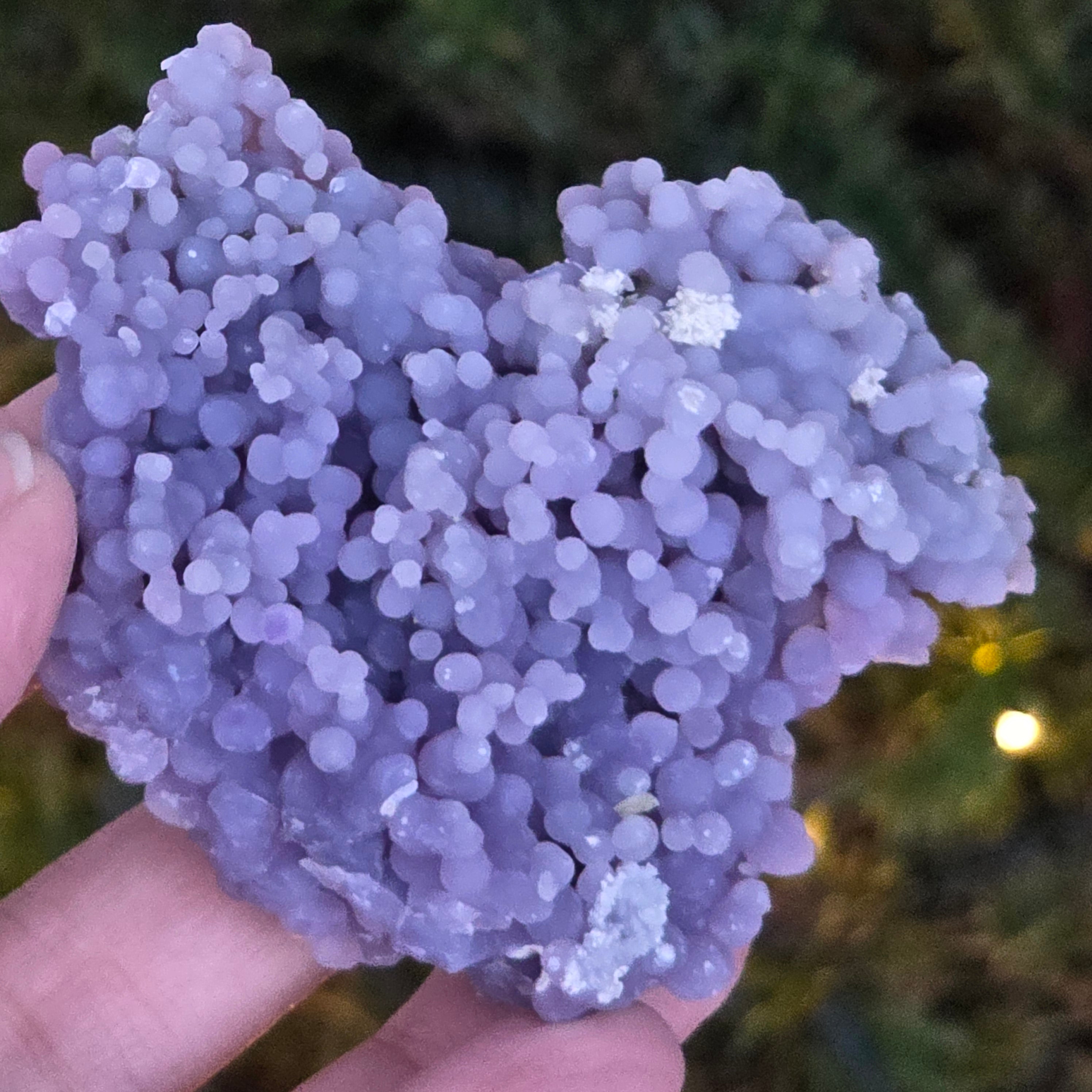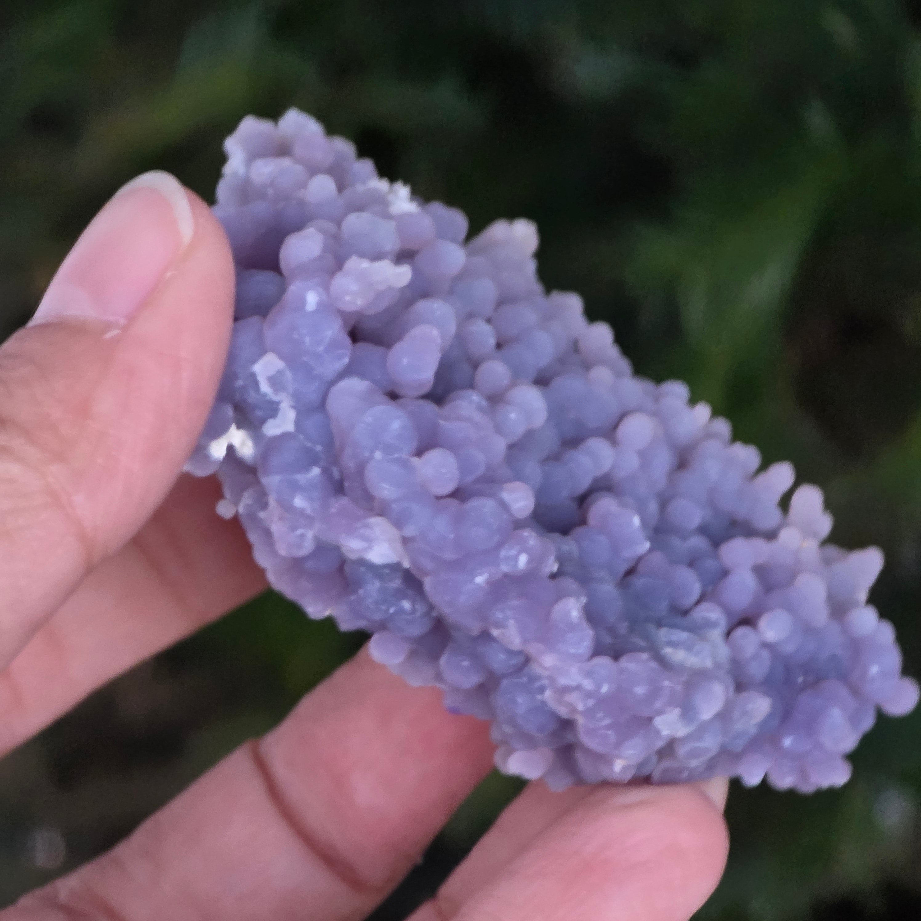 Гроздовият ахат се образува в кухините на вулканичните скали, където силициеви разтвори се охлаждат и кристализират, създавайки отличителния гроздов модел.