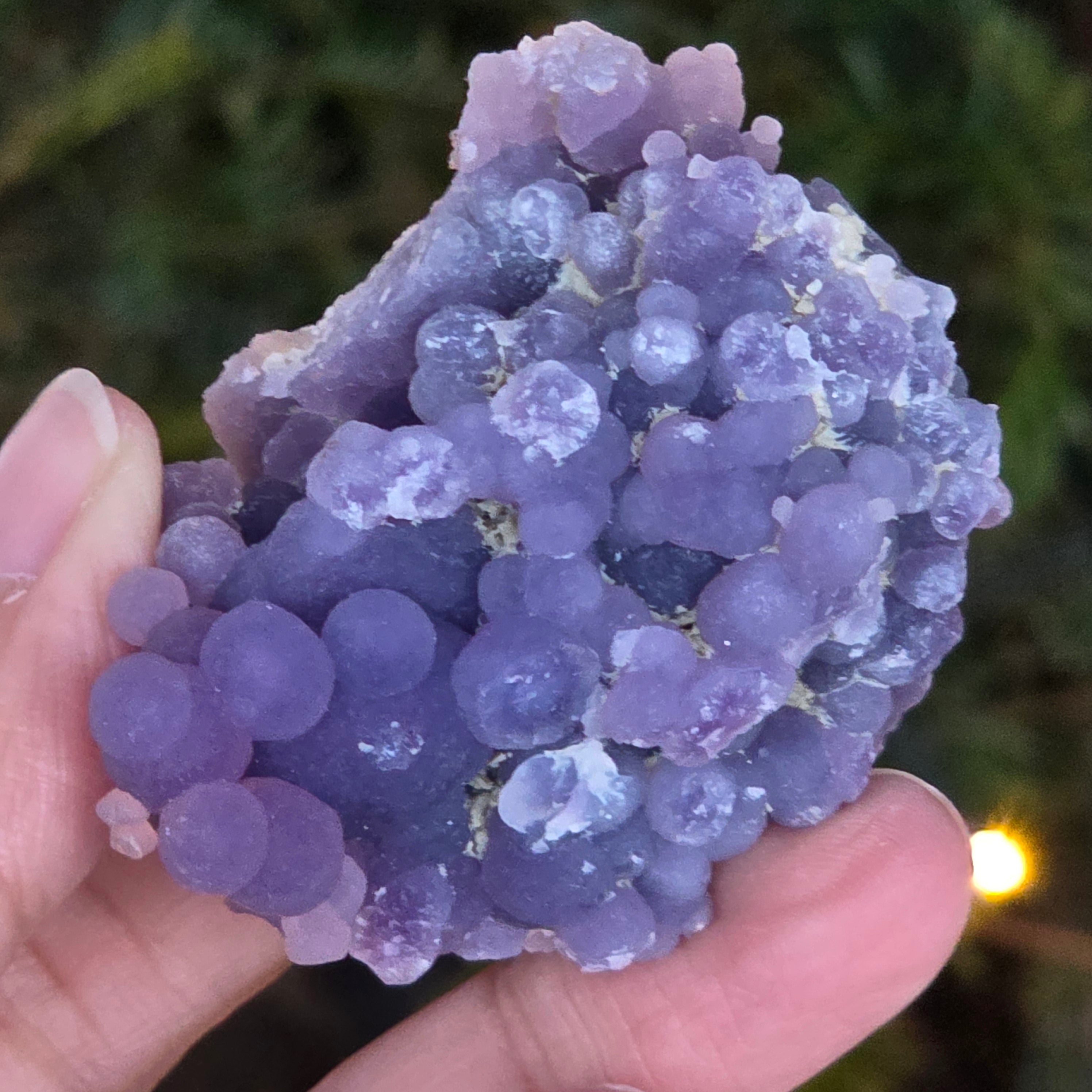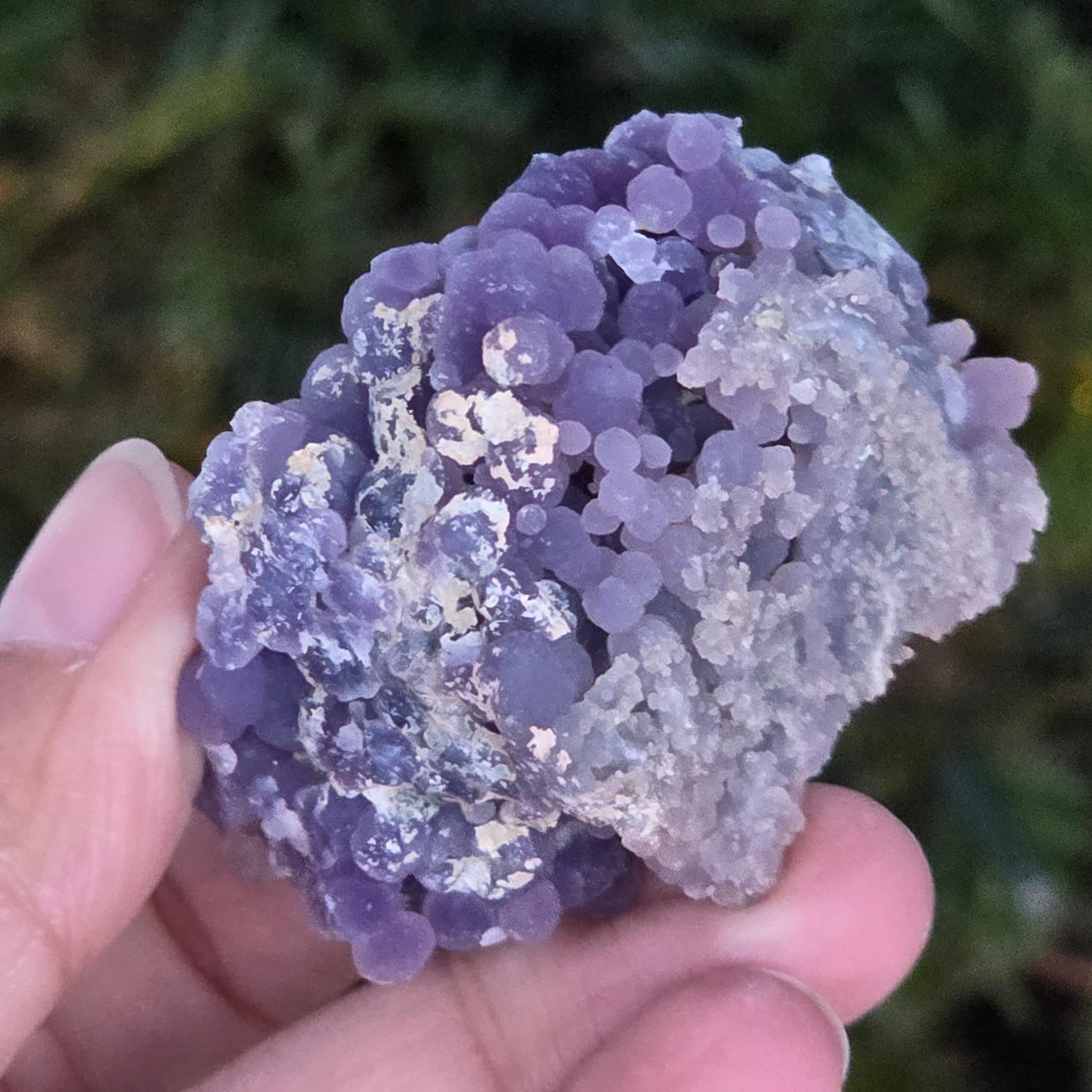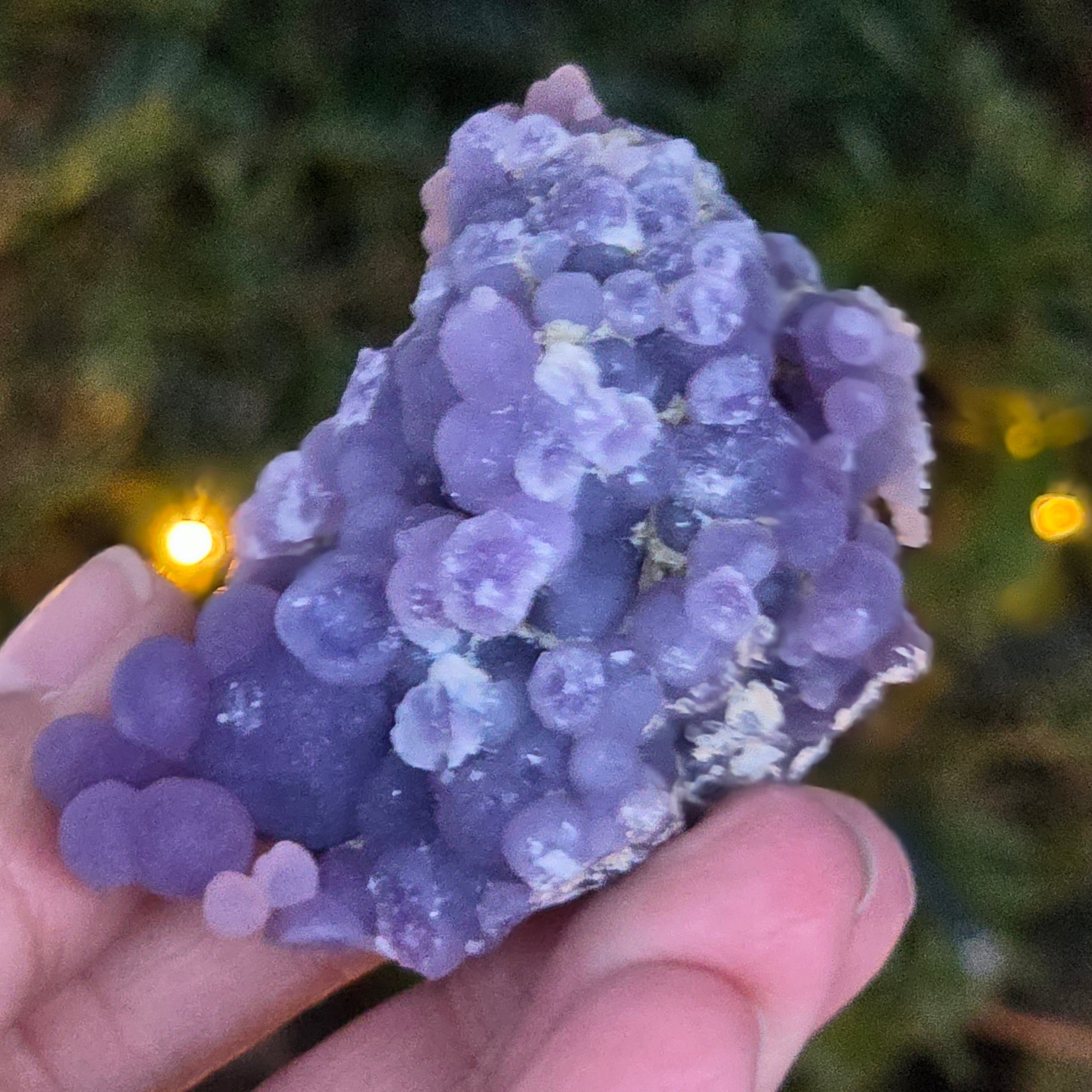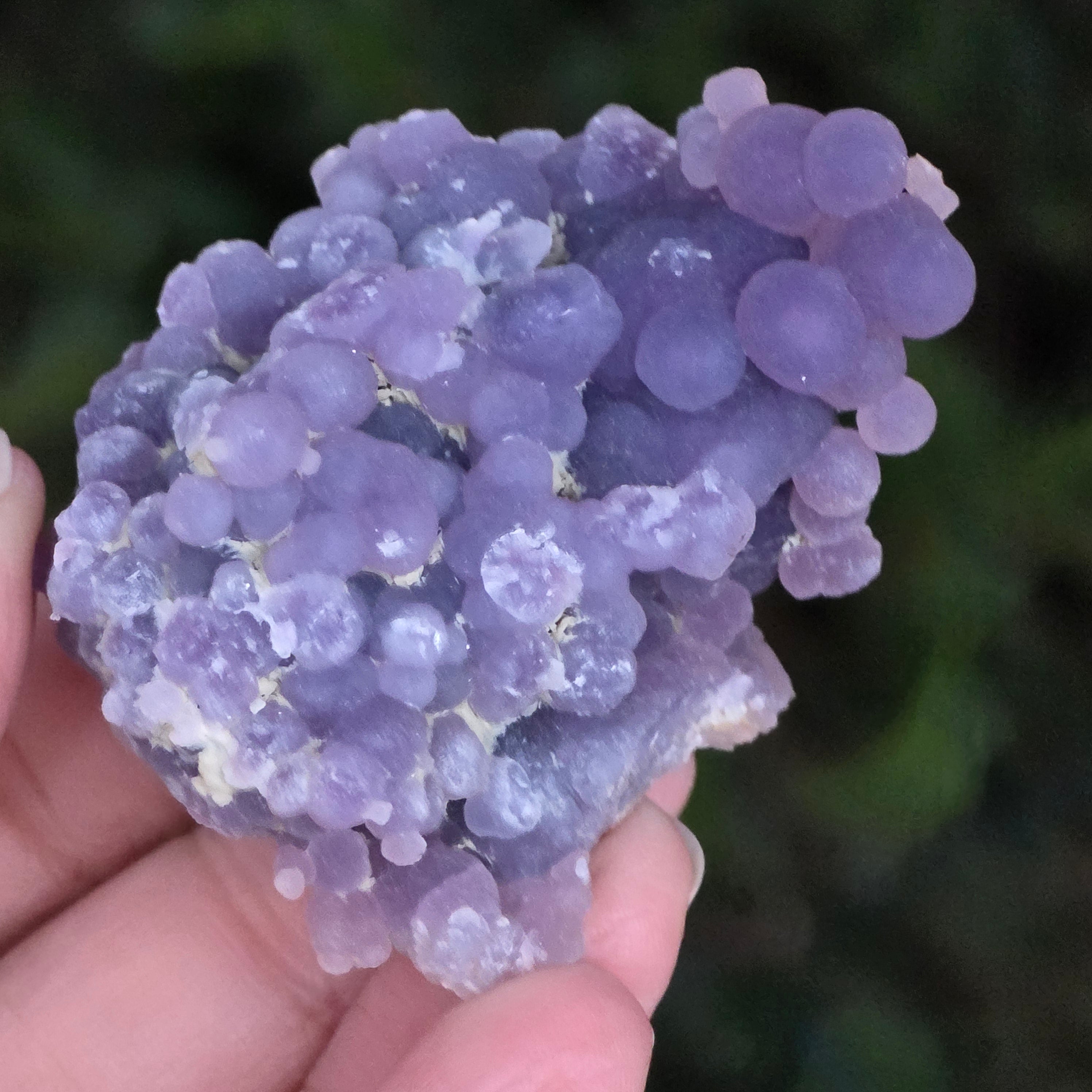 Гроздовият ахат се образува в кухините на вулканичните скали, където силициеви разтвори се охлаждат и кристализират, създавайки отличителния гроздов модел.