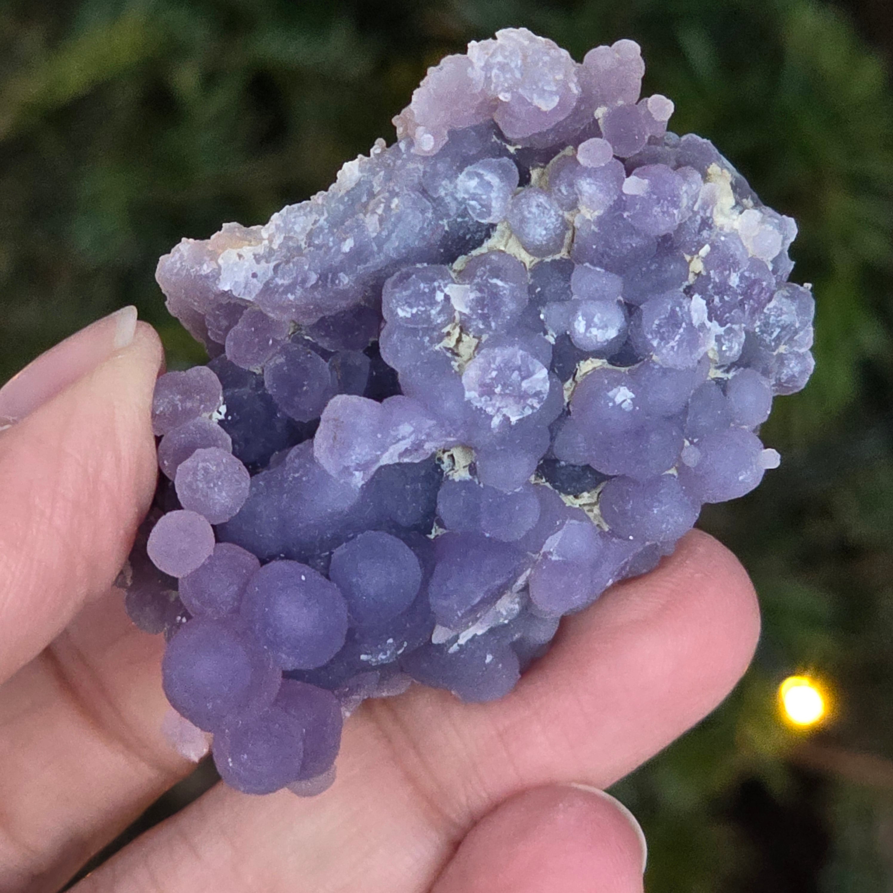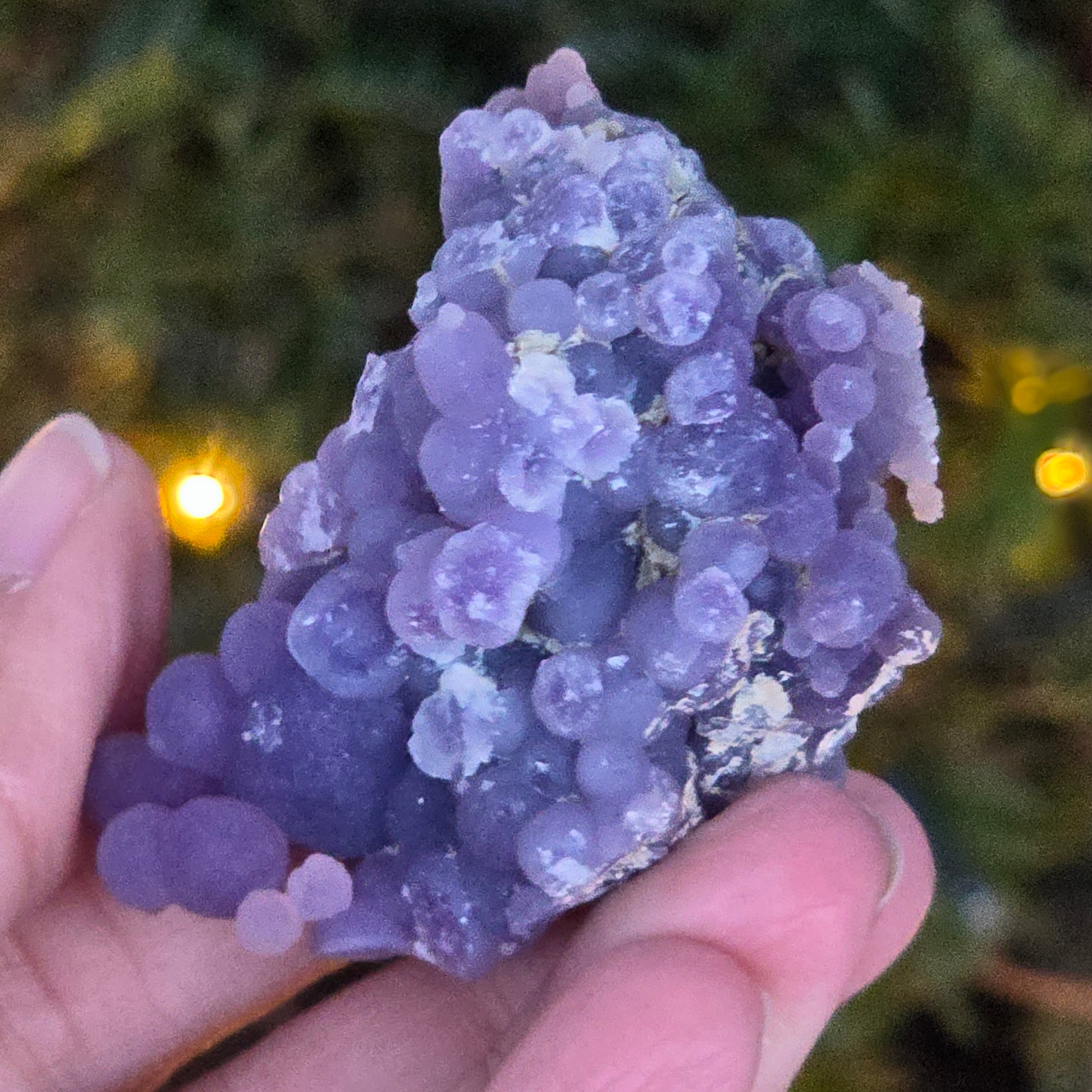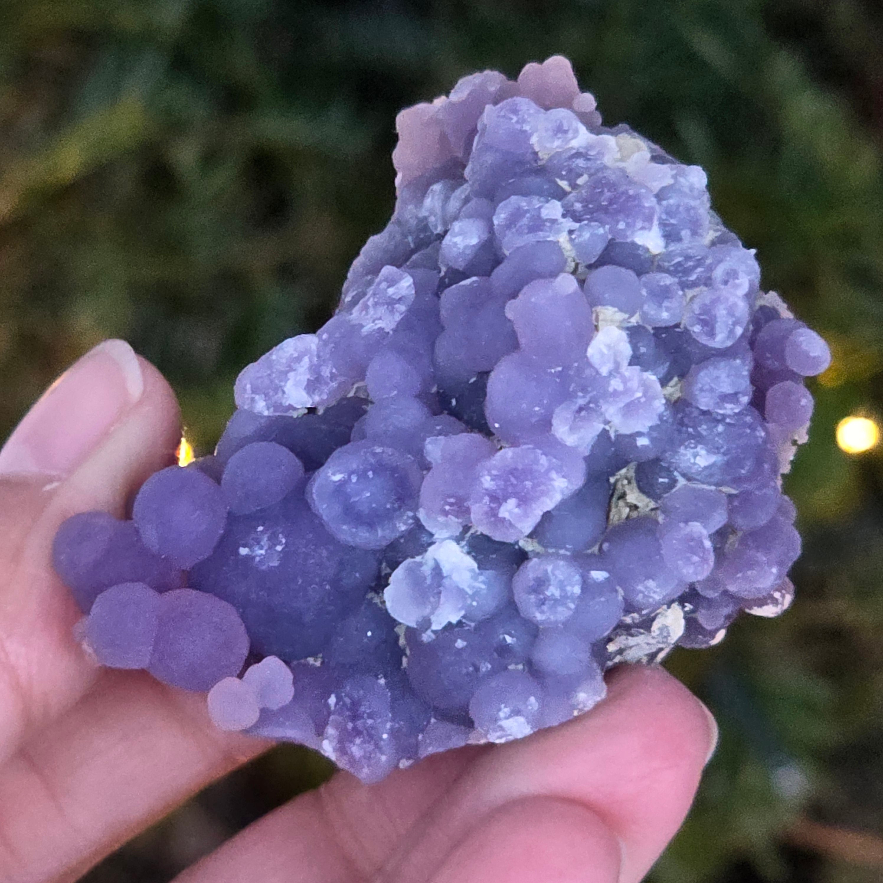 Гроздовият ахат се образува в кухините на вулканичните скали, където силициеви разтвори се охлаждат и кристализират, създавайки отличителния гроздов модел.