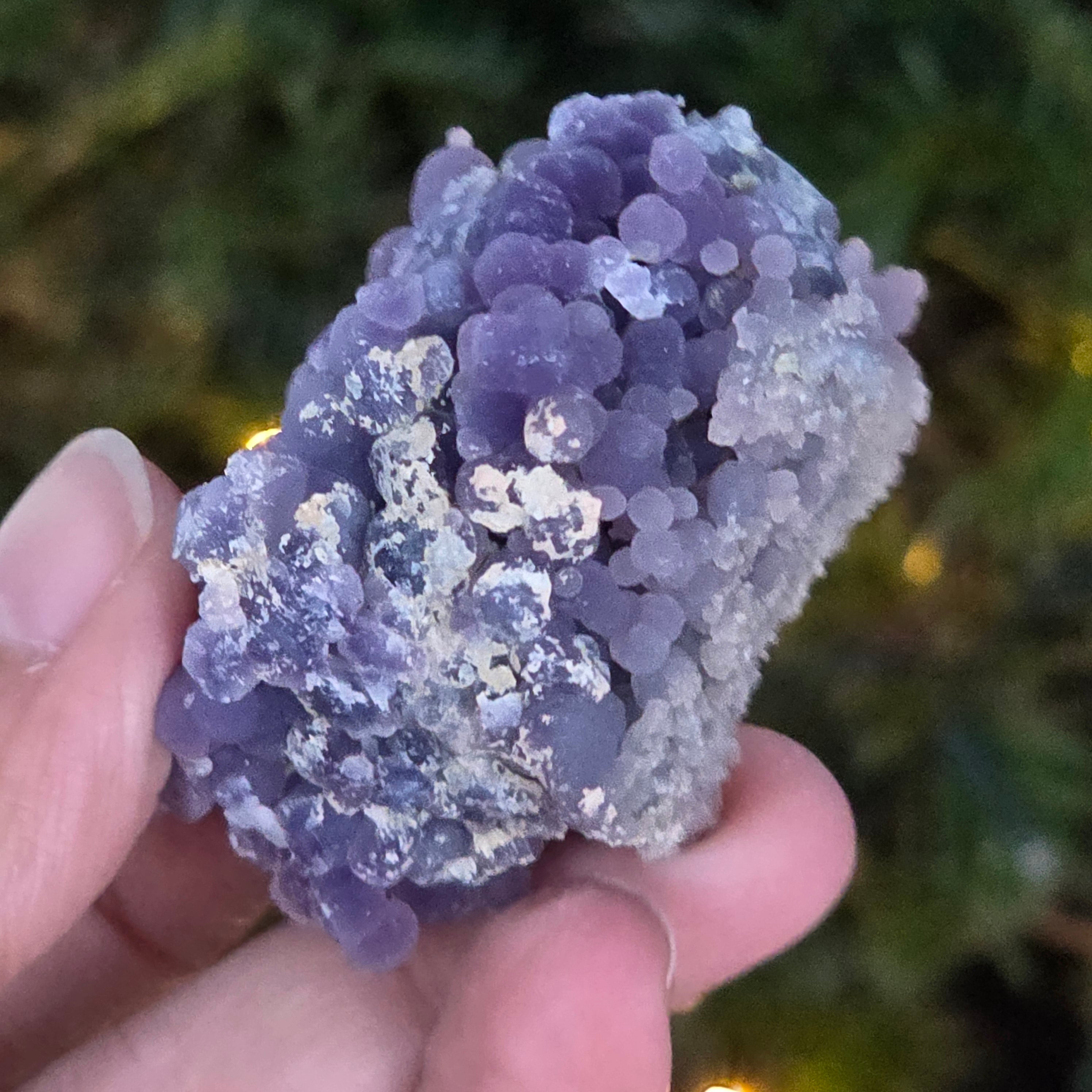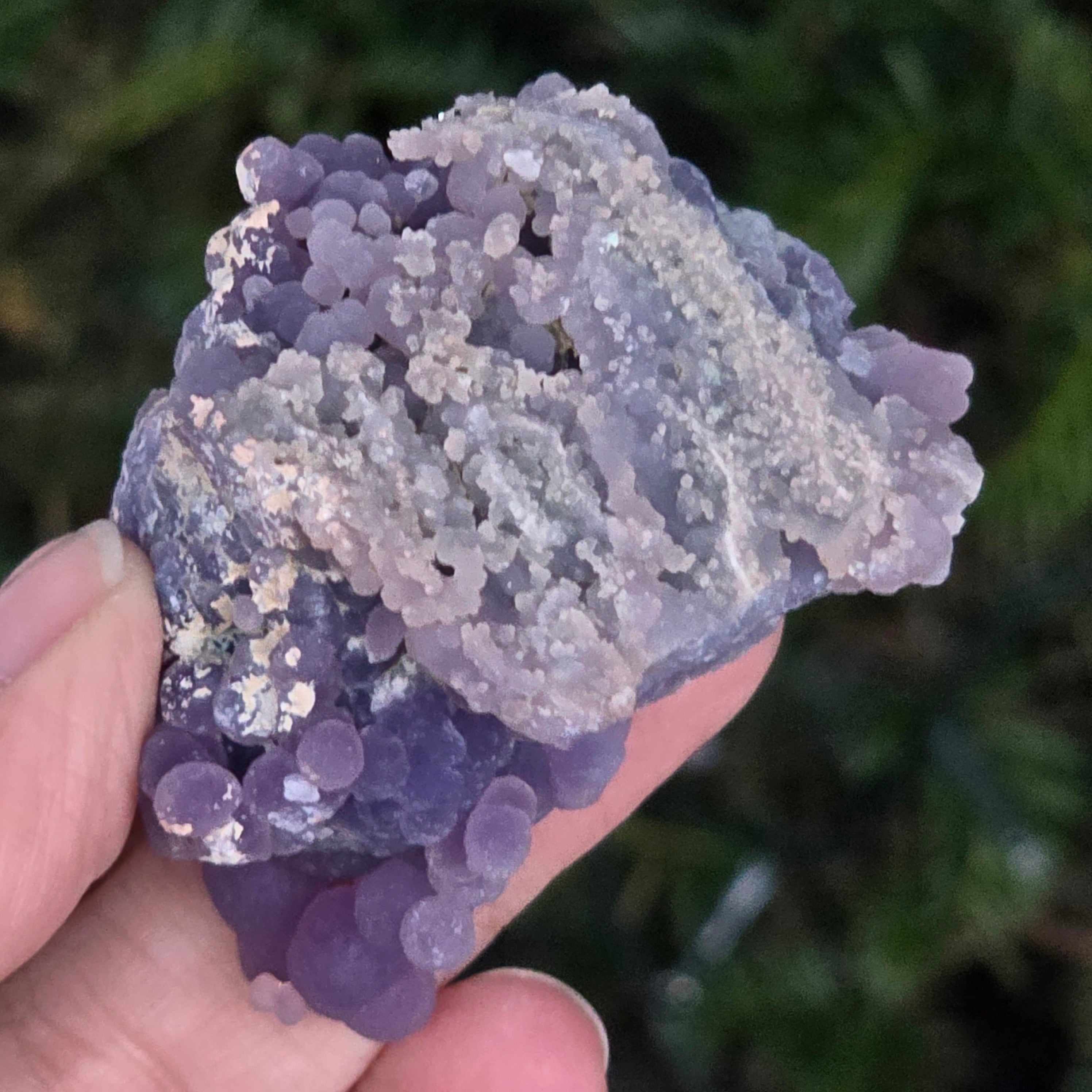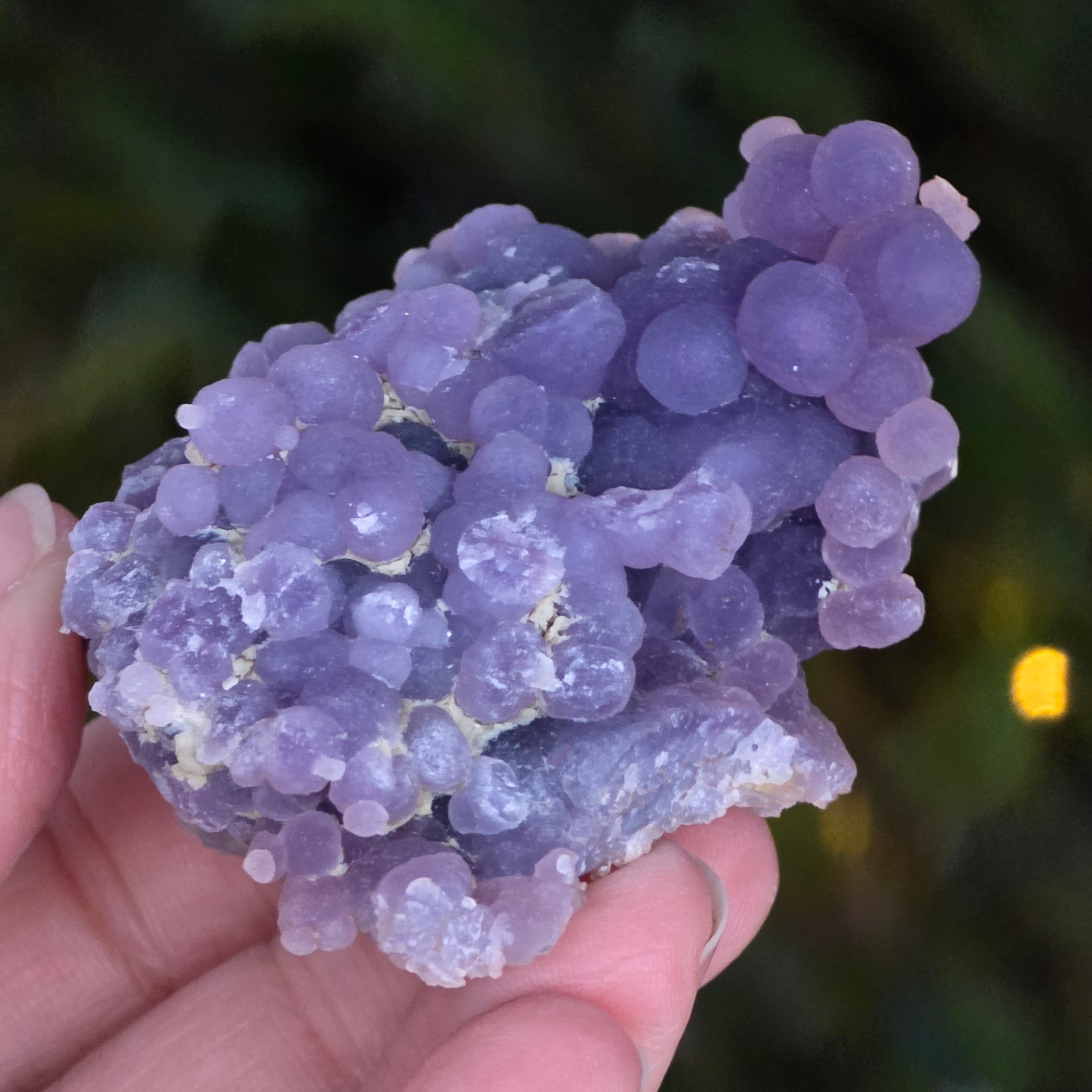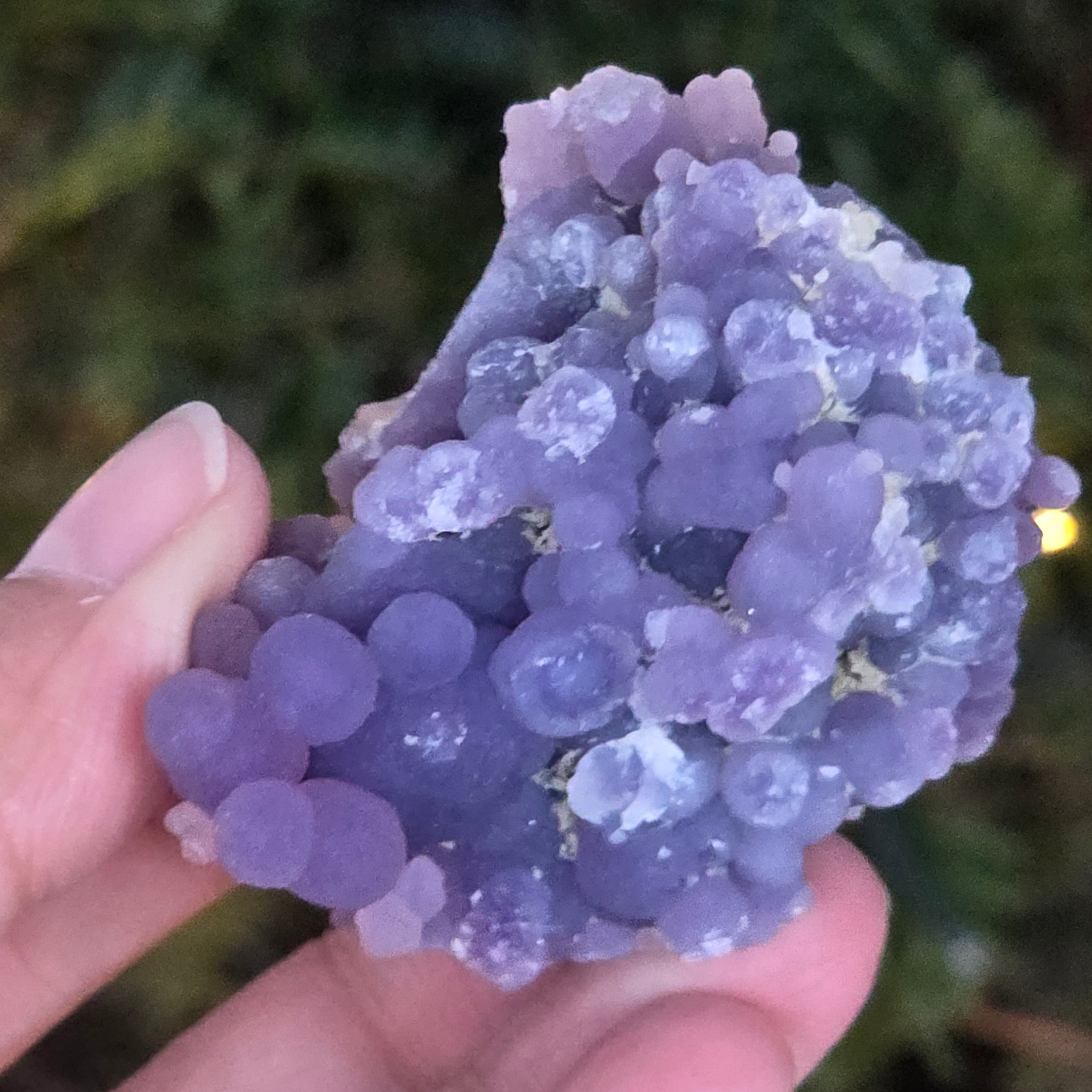 Гроздовият ахат се образува в кухините на вулканичните скали, където силициеви разтвори се охлаждат и кристализират, създавайки отличителния гроздов модел.