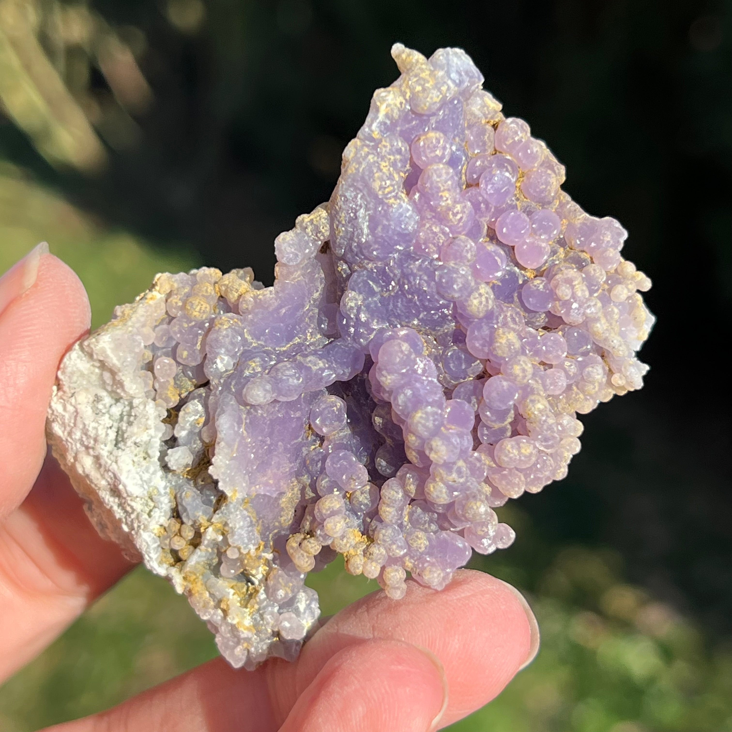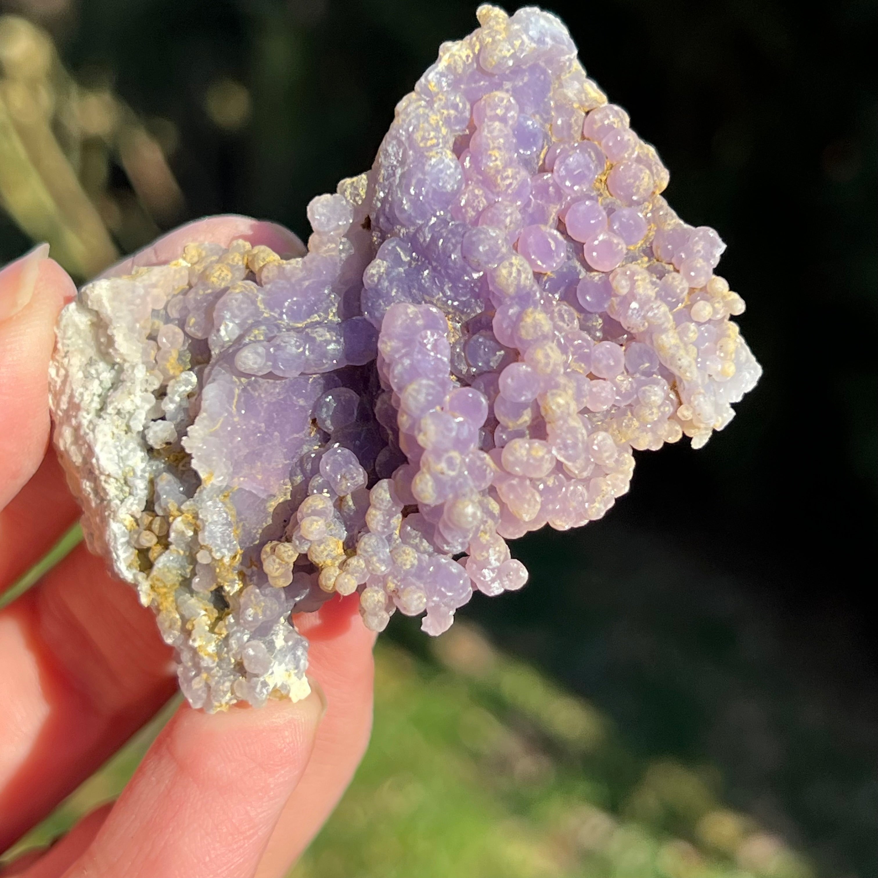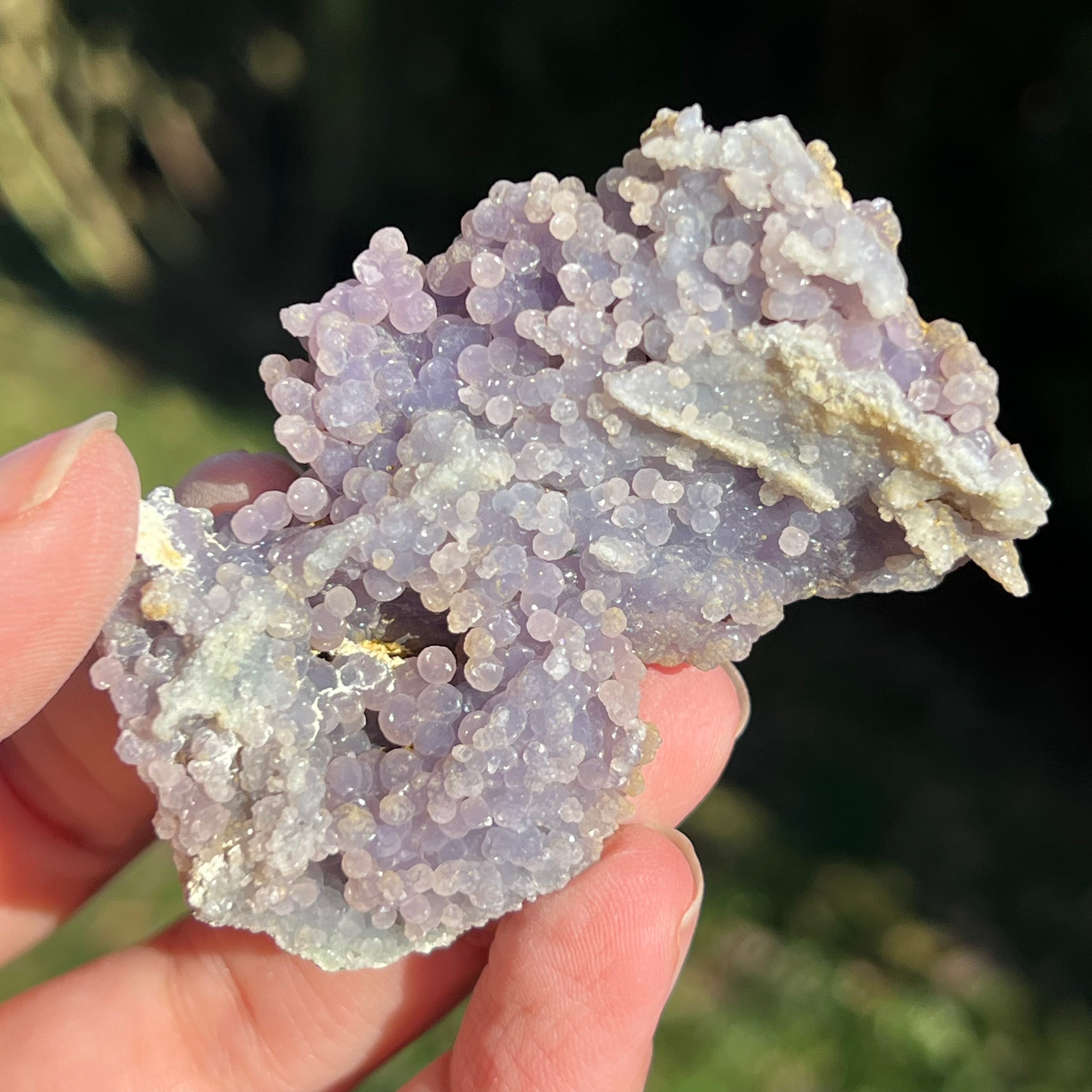 Гроздовият ахат се образува в кухините на вулканичните скали, където богатите на силиций разтвори се охлаждат и кристализират, създавайки отличителния модел на грозде.