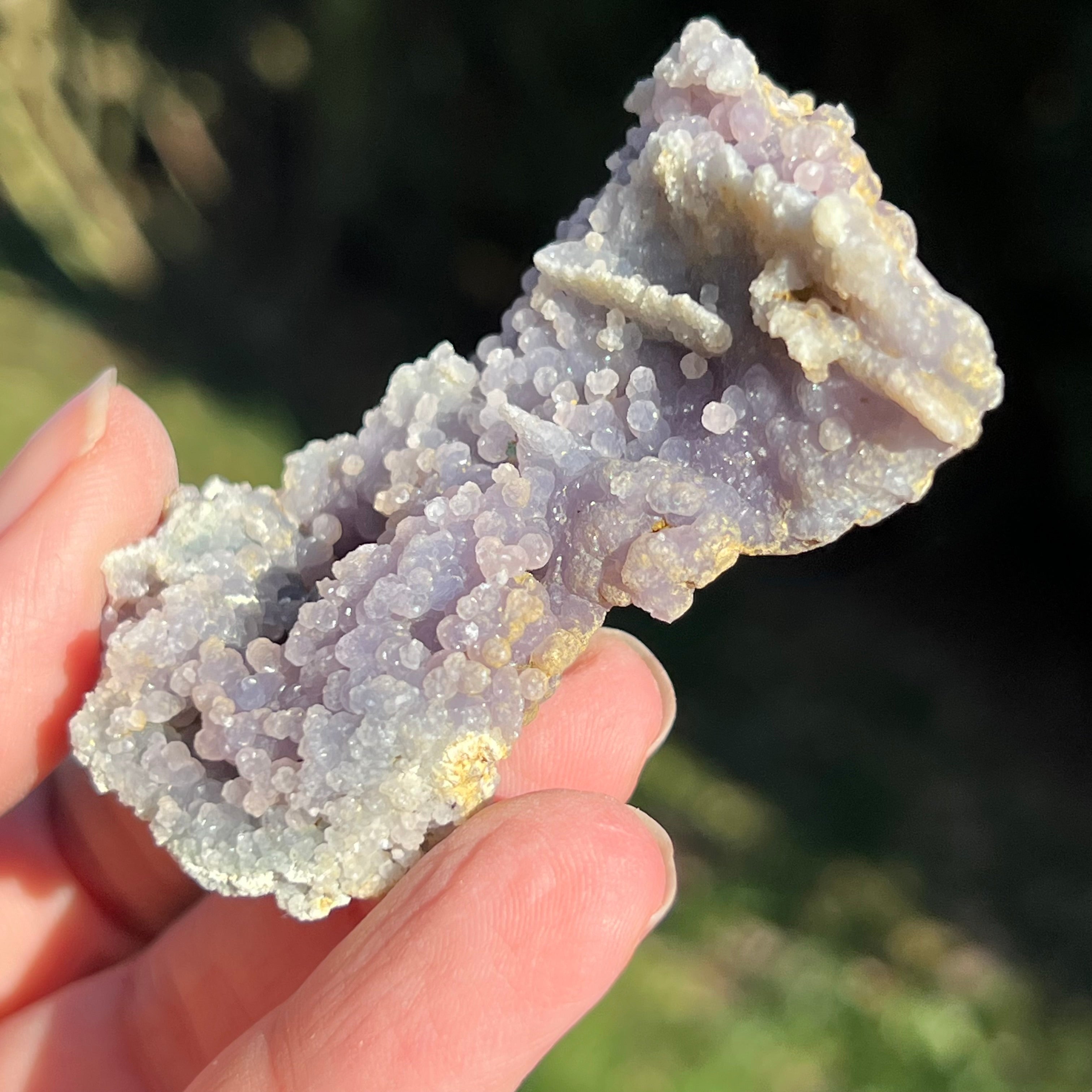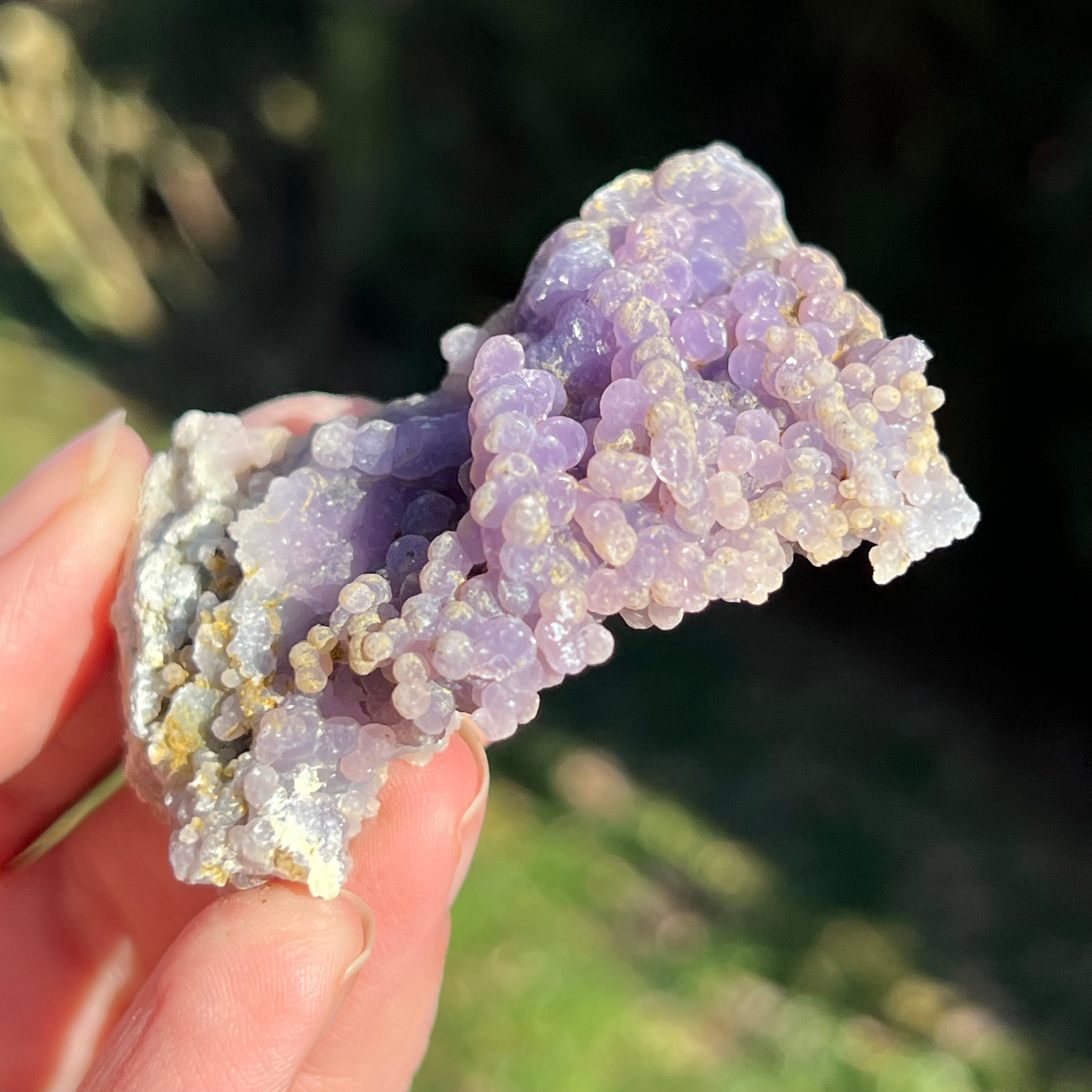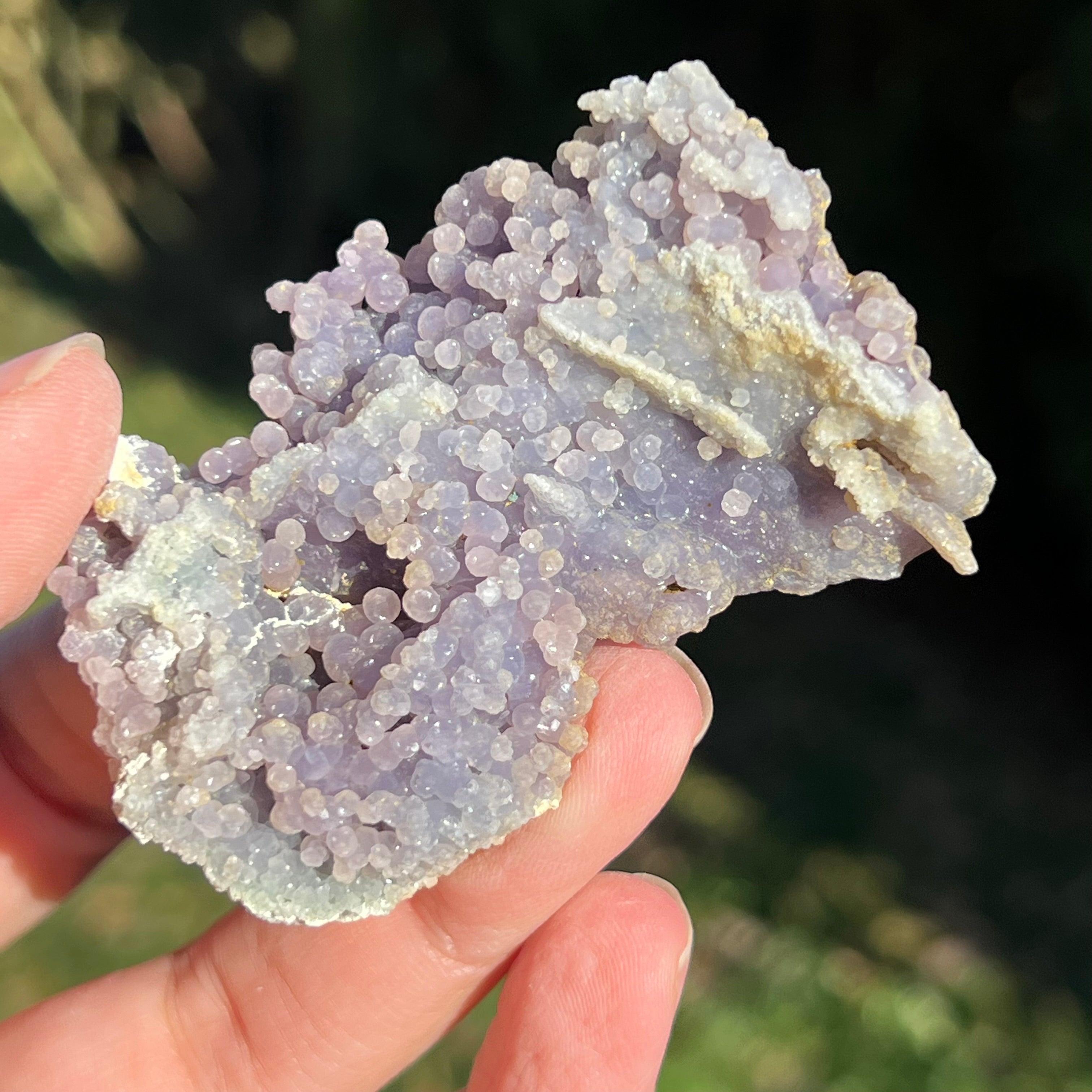 Гроздовият ахат се образува в кухините на вулканичните скали, където богатите на силиций разтвори се охлаждат и кристализират, създавайки отличителния модел на грозде.