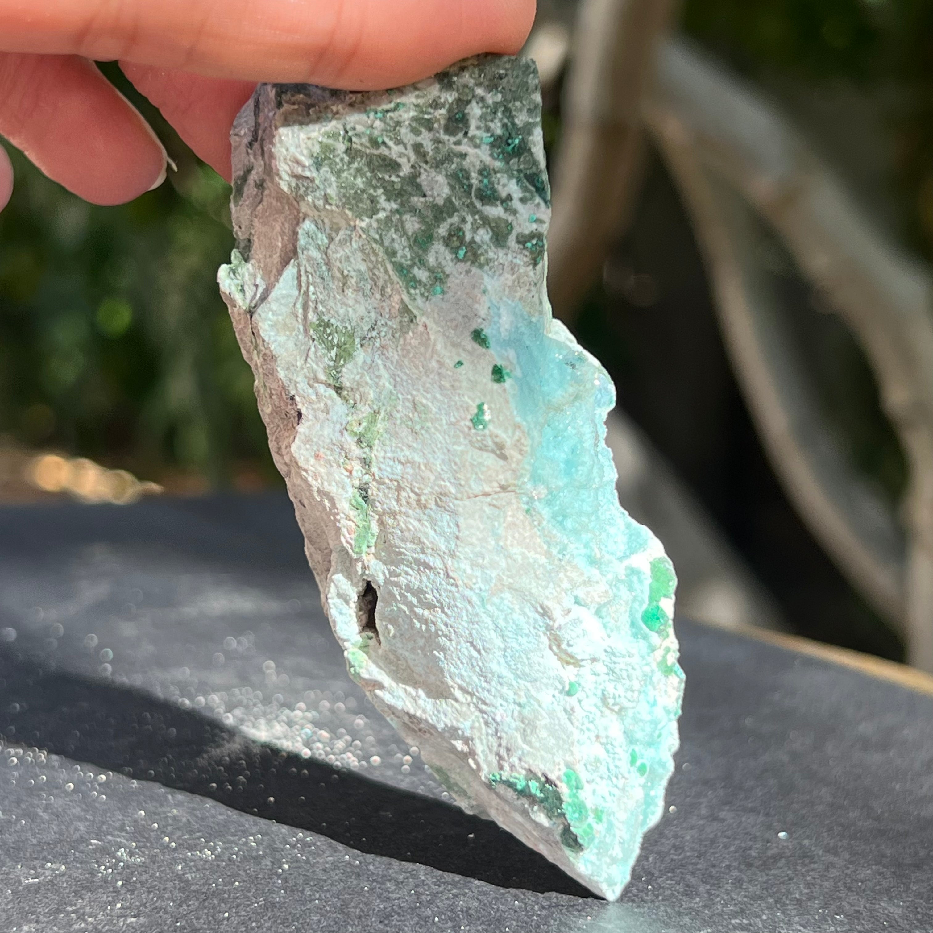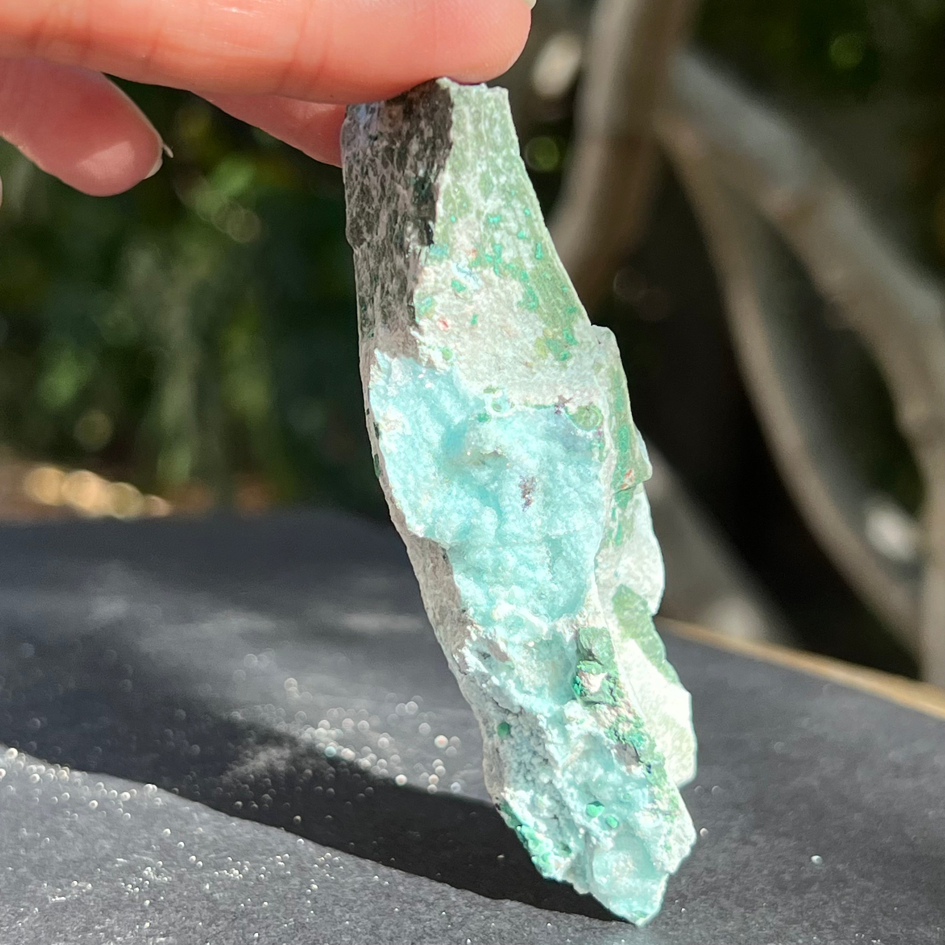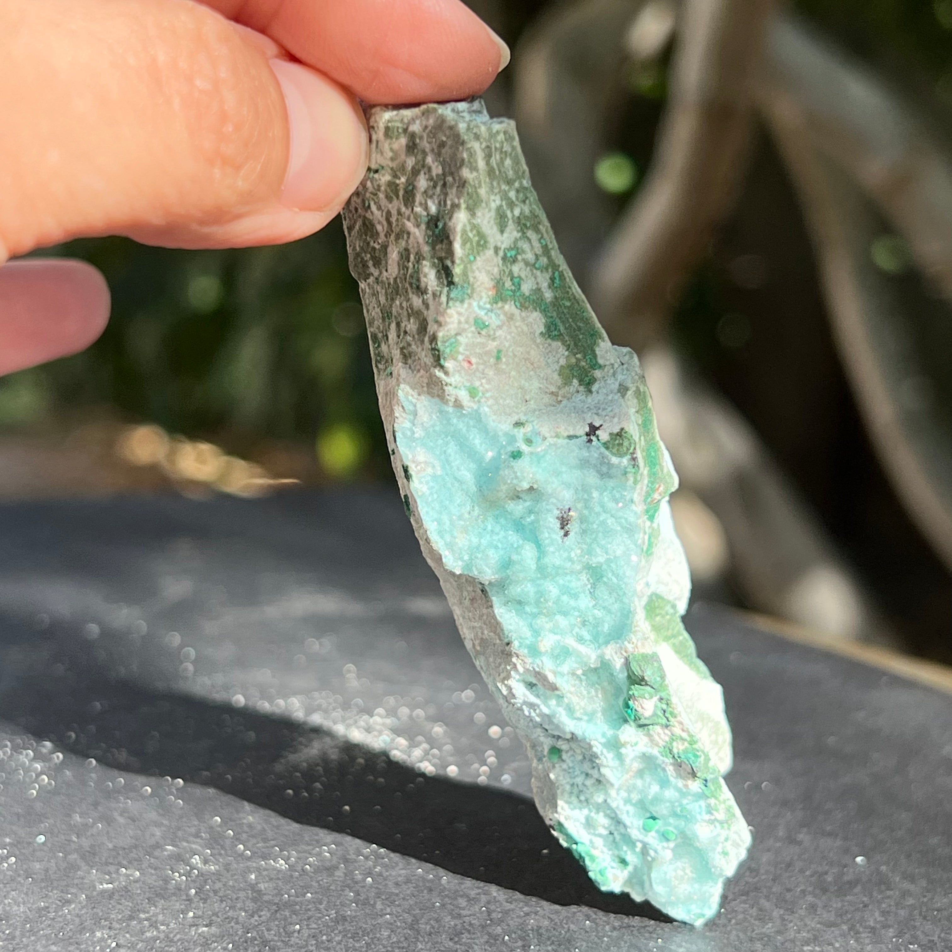 Груб кристализиран хризокол дрюзи камък от Конго модел 9, размер: 9 * 2,5 * 4 см