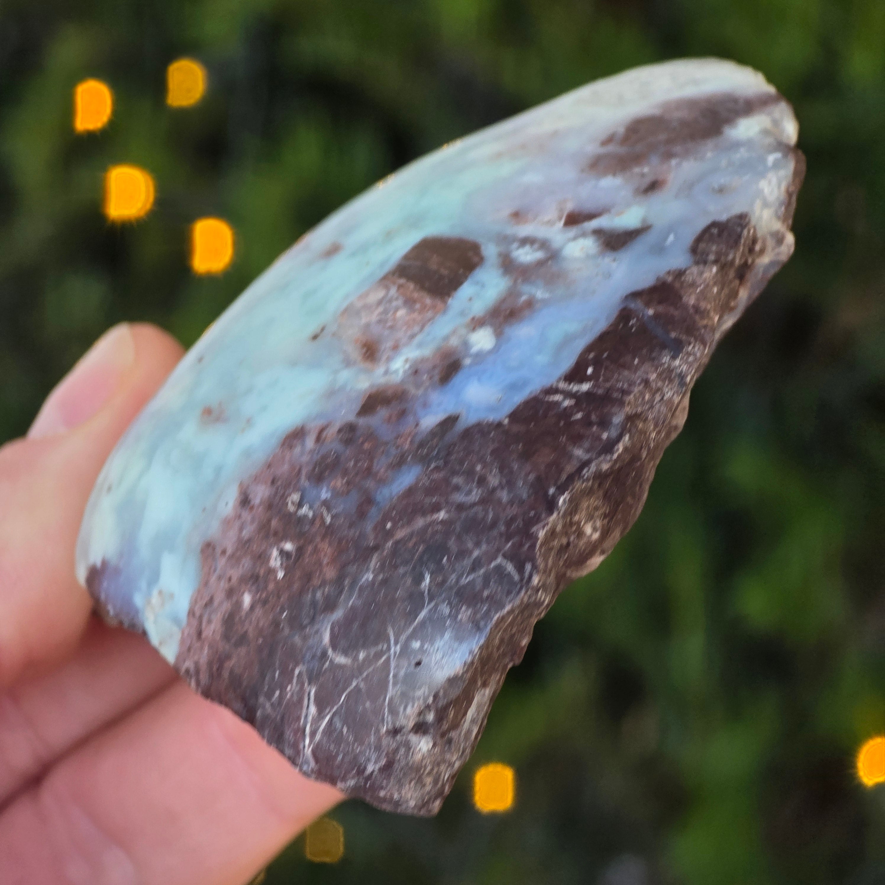Описание - Груб полирано камъче върху лице от халцедон с хром в синьо-зелени тонове от Зимбабве | Модел 6