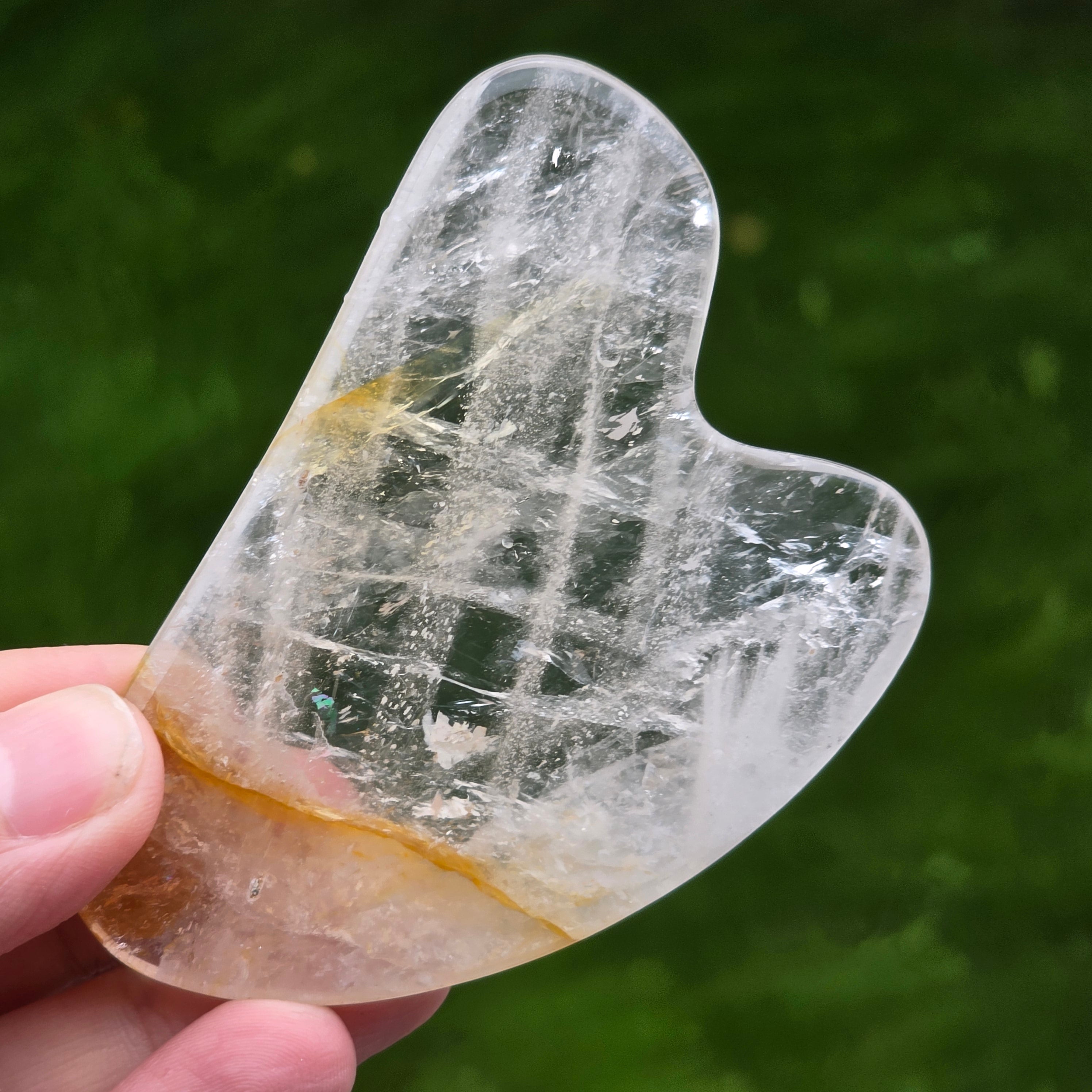 Гуа Ша камъкът от лимонит е едно от онези естествени парчета, които съчетават красотата на минералите с ритуалите за грижа за тялото. Топлите му нюанси – златисто жълто, мед, кехлибар – сякаш задържат в себе си светлината на мек залез. Това е камък, образуван чрез комбинация от кварц с включвания на лимонит и хематит, което създава плавни, златни модели с деликатни сенки и уникални естествени линии на всяко парче.