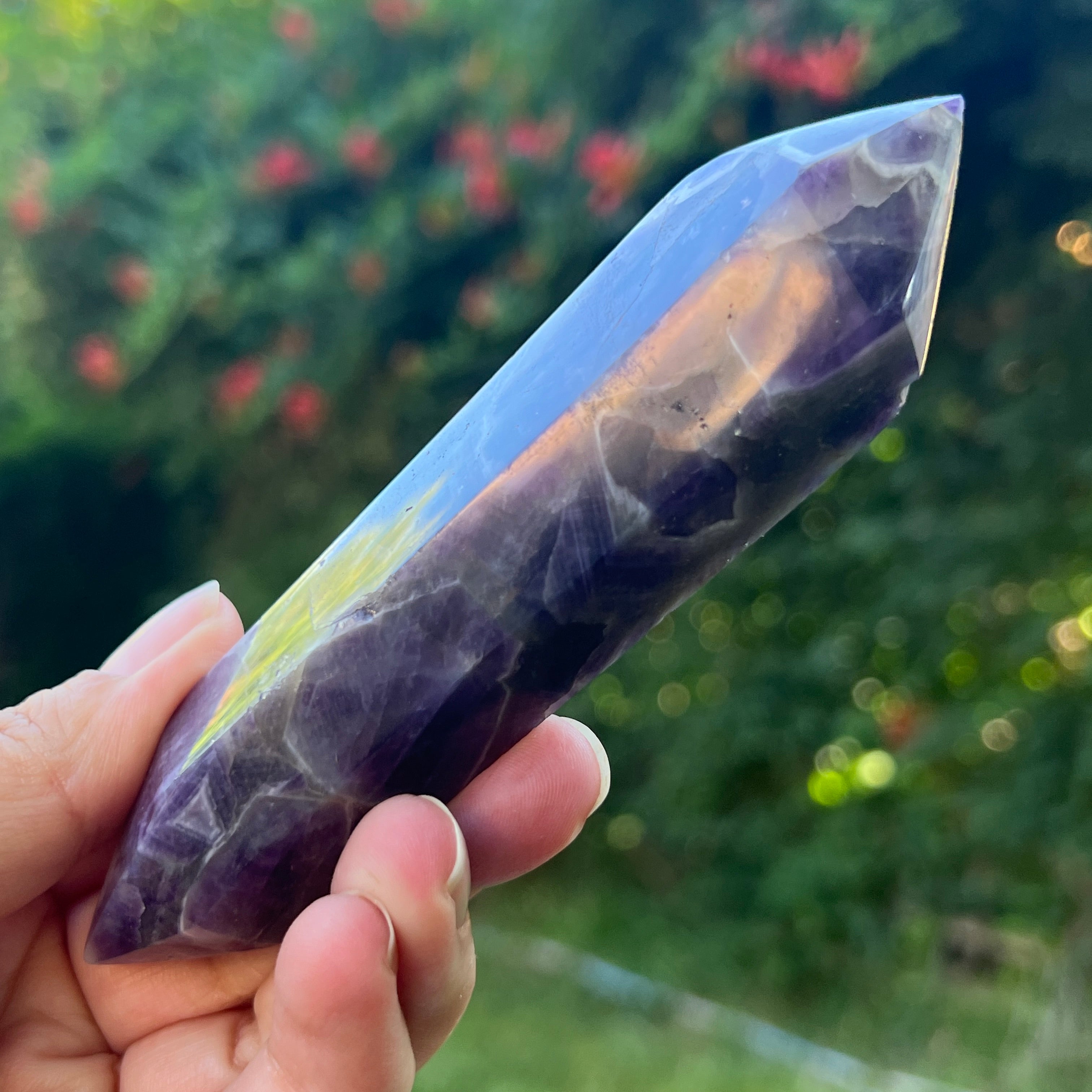 Шевронният аметист е известен със своите асоциации с чакрите на короната и третото око, повишавайки интуицията и способността за вземане на решения.