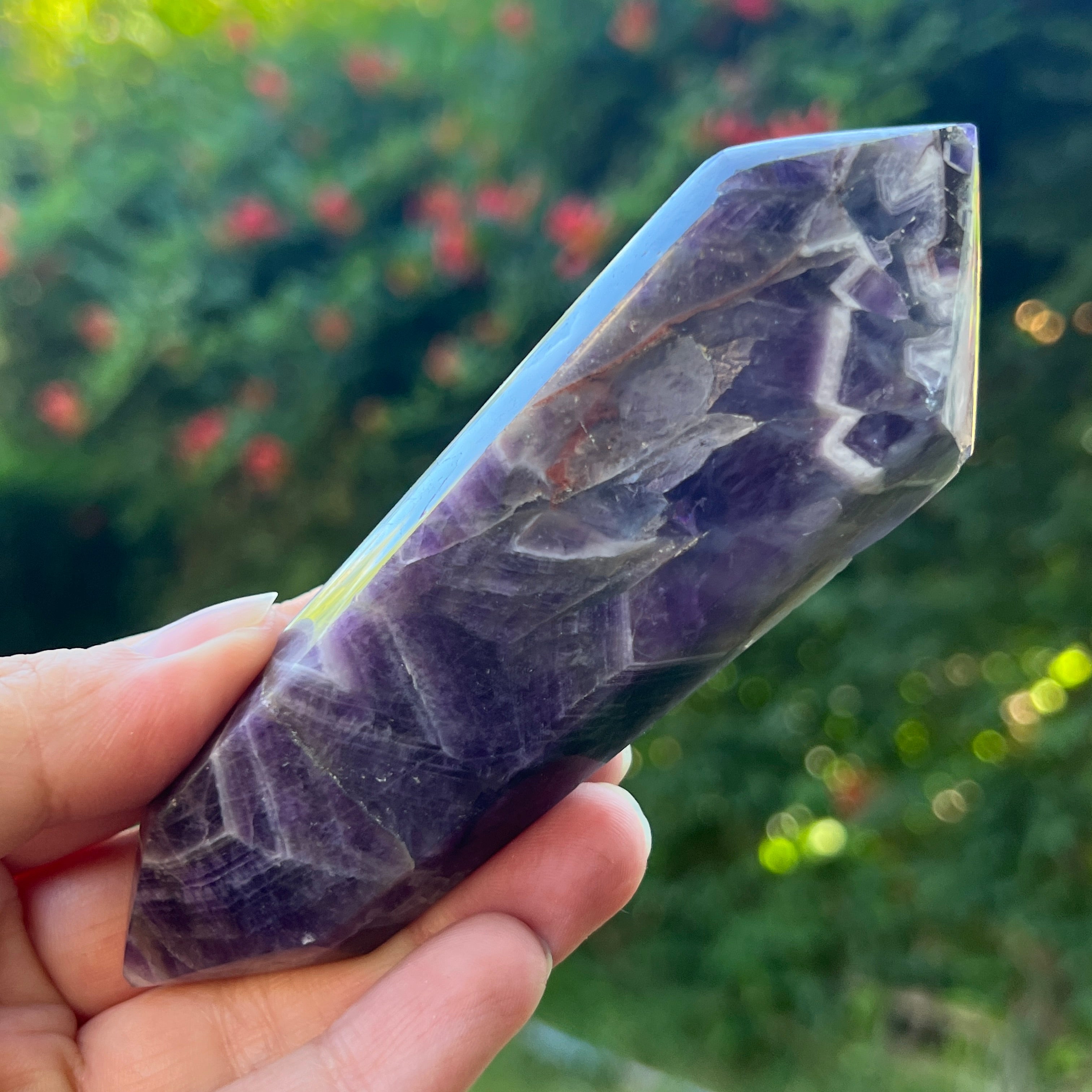 Chevron Amethyst може да се използва при медитация, като бижу или за добавяне на естествен и елегантен вид към вашия дом или офис.