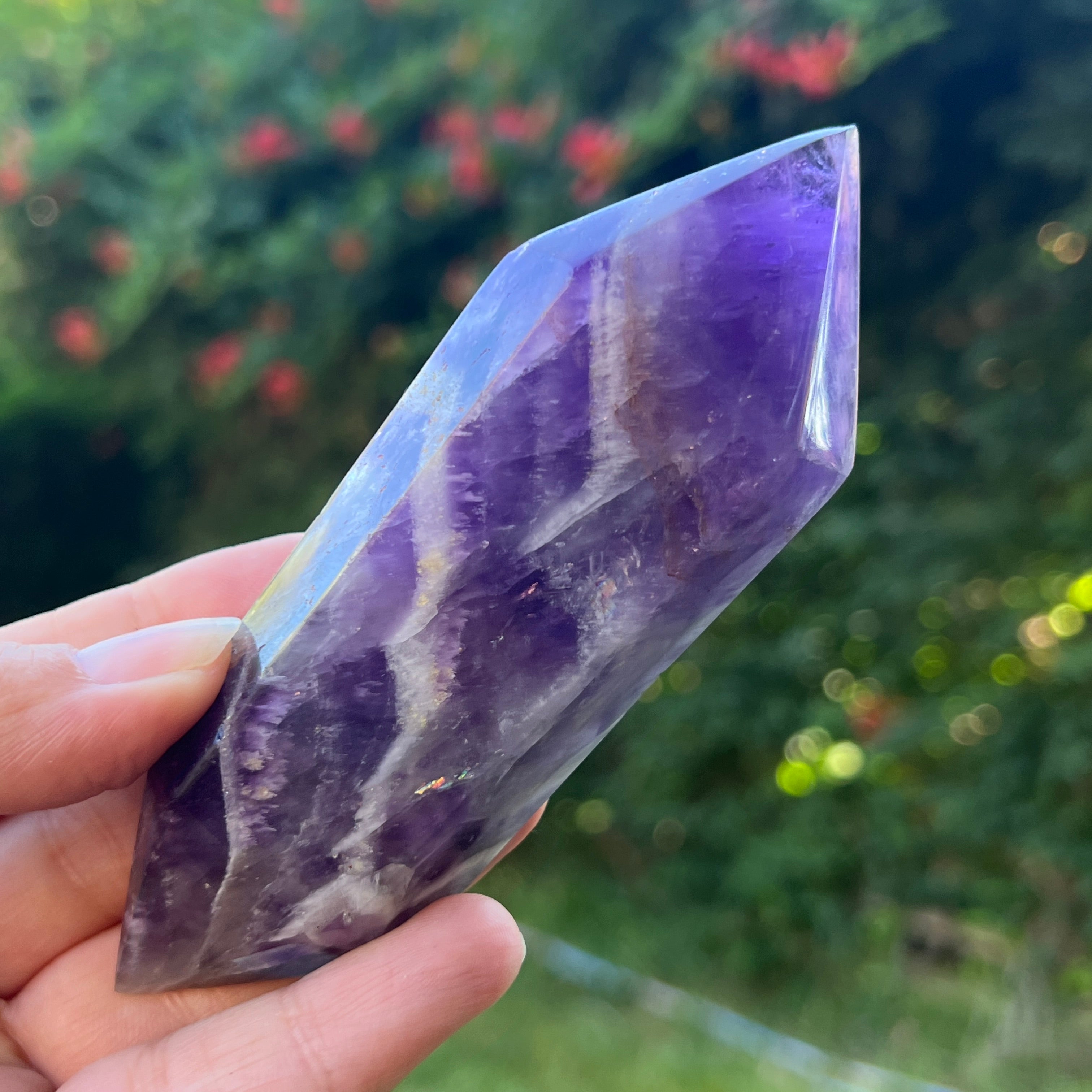 Аметистът шеврон може да се използва за медитация, като бижу или за да внесе естествен и елегантен вид в дома или офиса.
