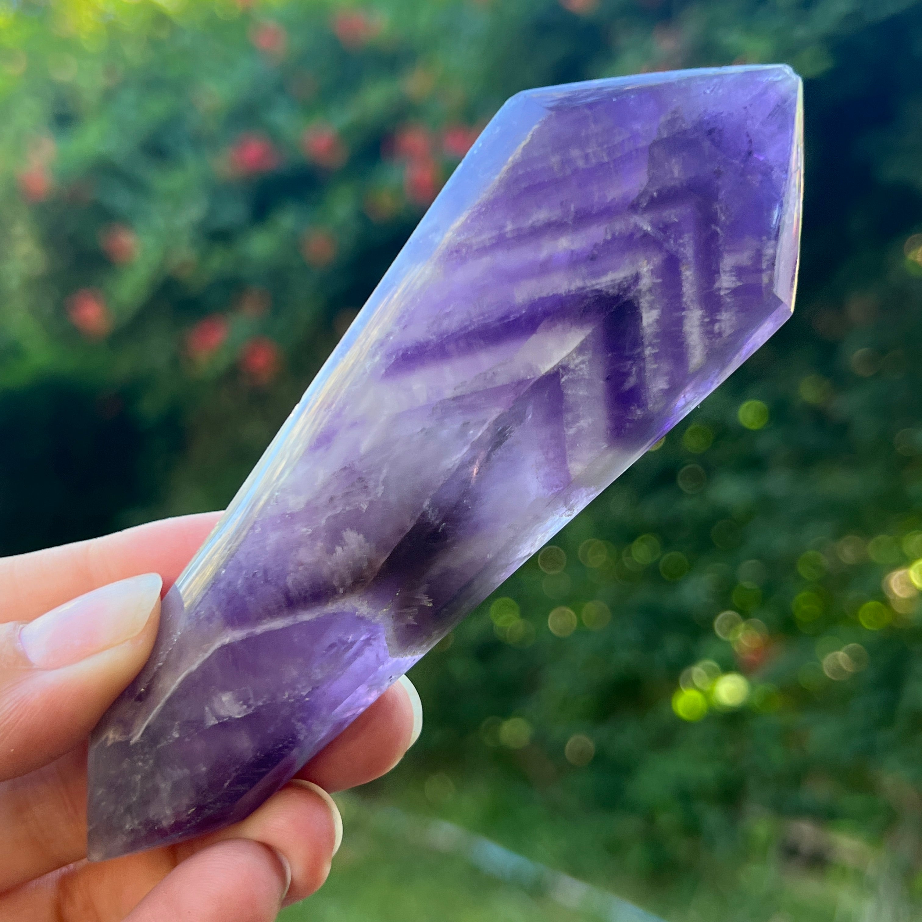 Chevron Amethyst може да се използва при медитация, като бижу или за добавяне на естествен и елегантен вид към вашия дом или офис.