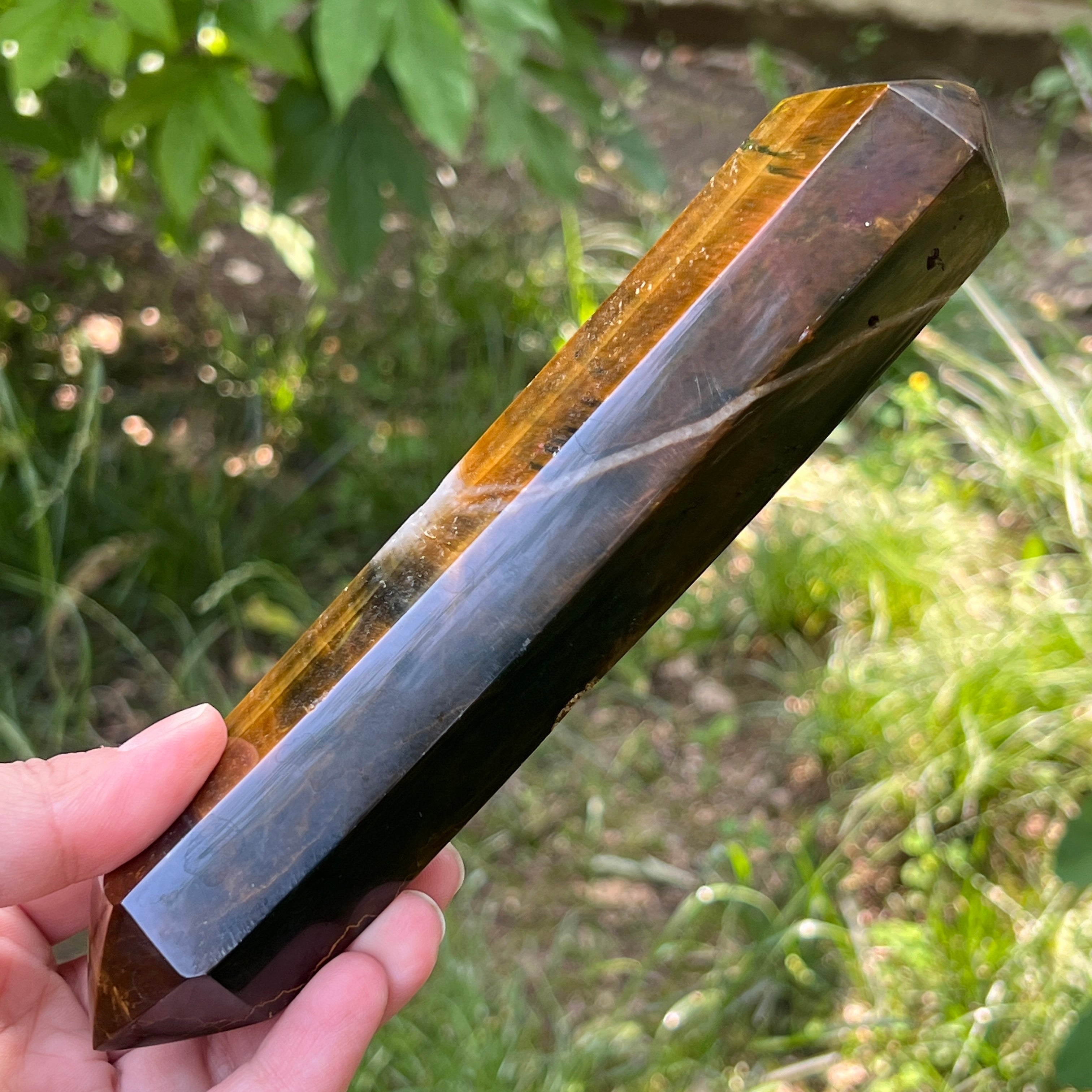 Тигровото око е очарователен камък с копринени отблясъци в златисти, кафяви и червеникави нюанси, които танцуват на светлина като жив поглед. Това е камък на вътрешната сила и ясния кураж, познат от древни времена като талисман за защита и ясновидска способност.