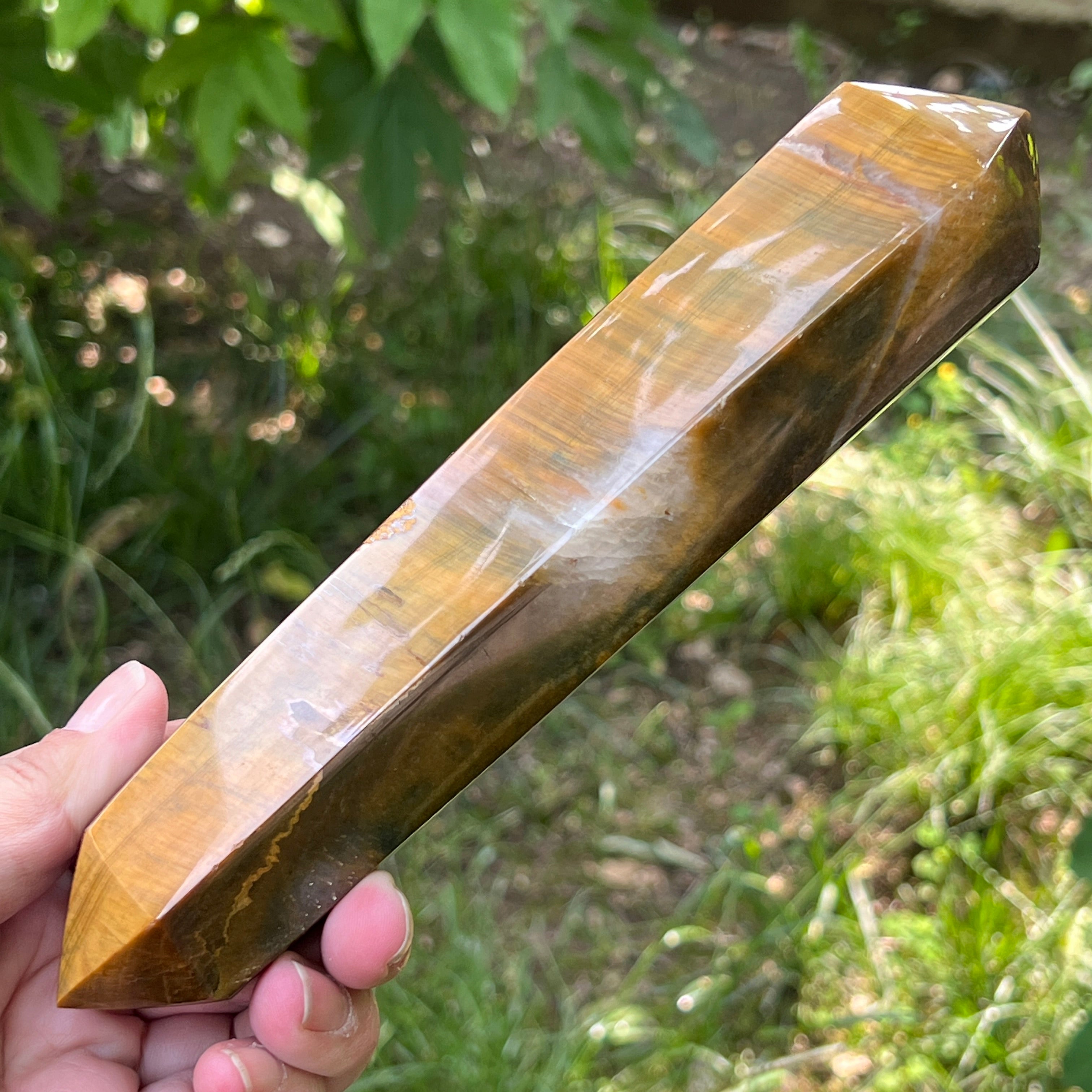 Тази масажна пръчка от тигрово око е уникален артикул, изсечен и полиран, за да канализира концентрираната енергия на Земята чрез ергономична форма, идеална за лечебни ритуали, енергиен масаж или дълбока релаксация.