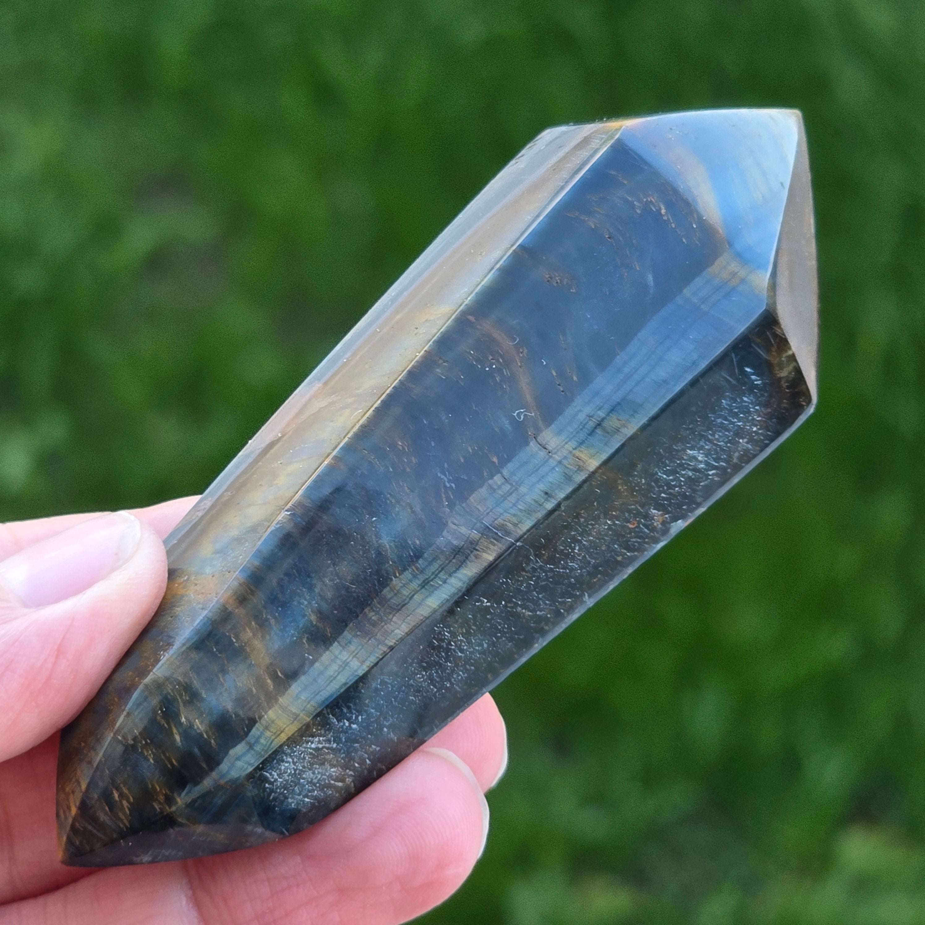 Соколското око е полускъпоценен камък с синикаво-метални отблясъци, напомнящи проникващия поглед на хищна птица. Известен като камък на ясното виждане и защитата, той помага за отстраняване на негативната енергия и усилване на интуицията. Казва се, че дава смелост пред промяната и умствена яснота в моменти на объркване. Често се използва в медитационни практики за свързване с вътрешната истина. Идеален избор за тези, които търсят вътрешна сила и емоционална стабилност.