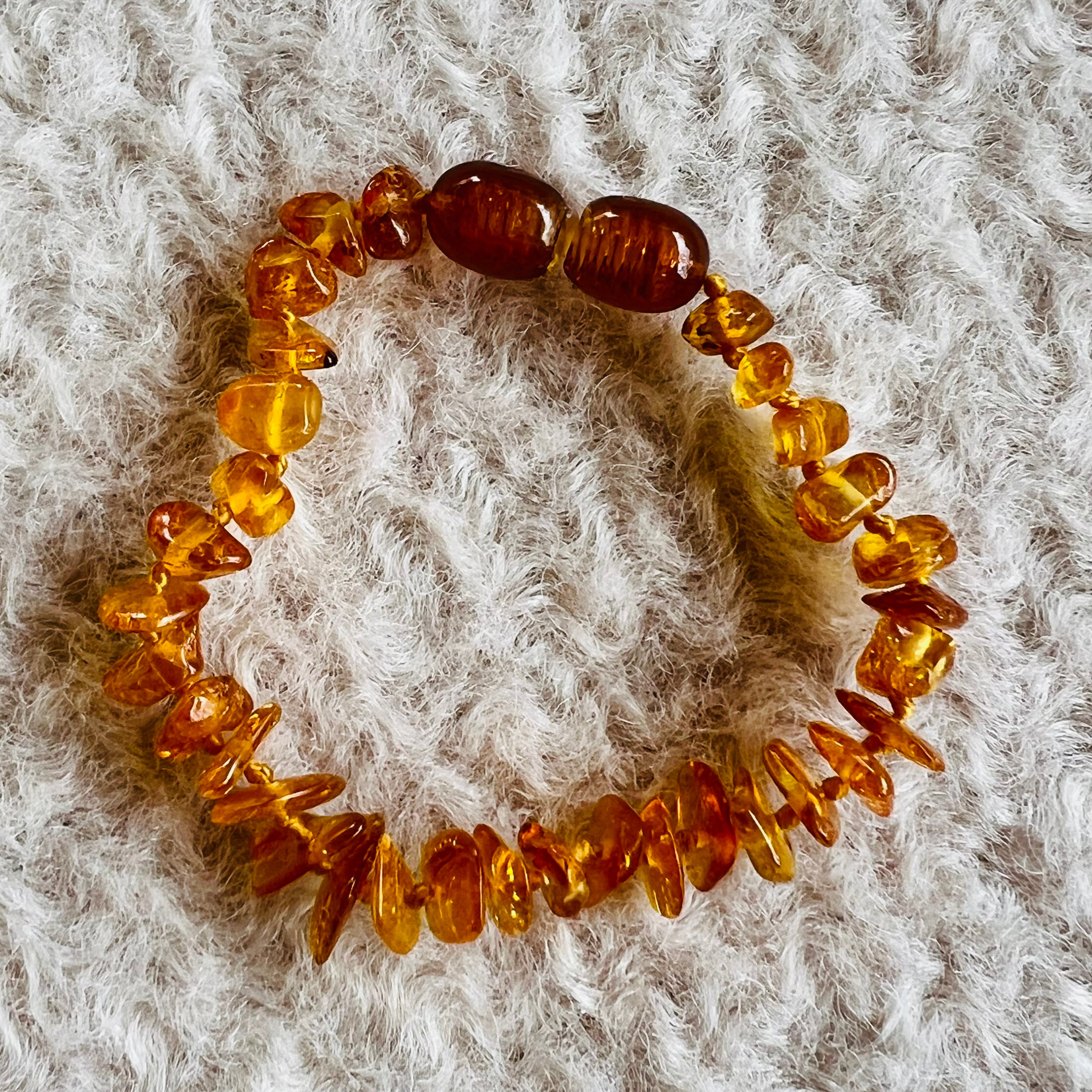 Контактът на кехлибара с кожата на детето помага за освобождаването на тази сукцинова киселина, която може да намали дискомфорта и раздразнението на венците по време на пробиването на зъбите. Много родители съобщават, че използването на кехлибар по време на никнене на зъбите е донесло облекчение и спокойствие на децата им.