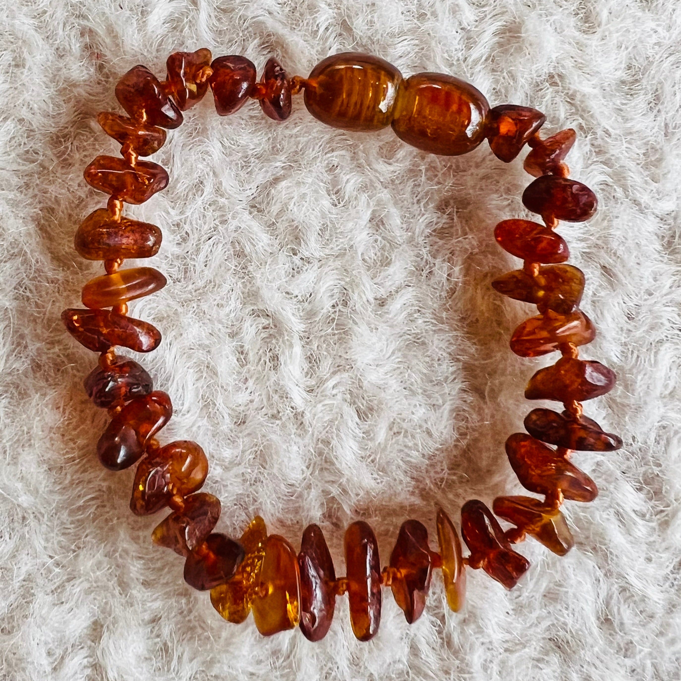 Контактът на кехлибара с кожата на детето помага за освобождаването на тази сукцинова киселина, която може да намали дискомфорта и раздразнението на венците по време на пробиването на зъбите. Много родители съобщават, че използването на кехлибар по време на никнене на зъби е донесло облекчение и спокойствие на децата им.