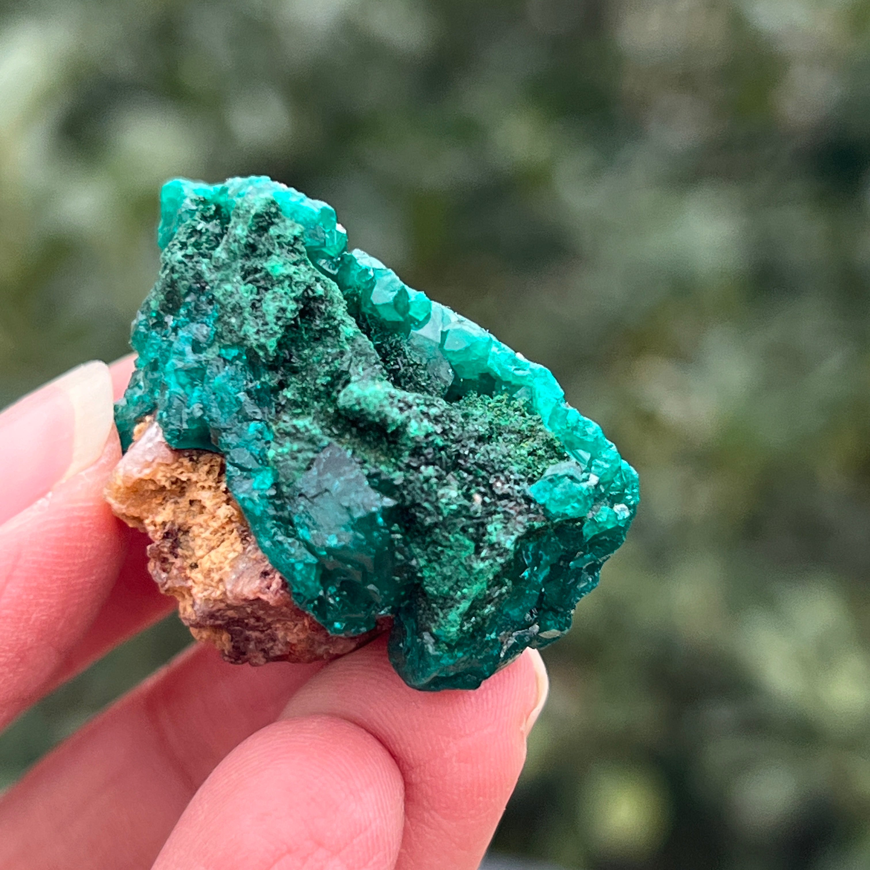 Диоптазът е ценен полускъпоценен камък със яркозелен цвят, съставен от меден силикат и хидроксид.