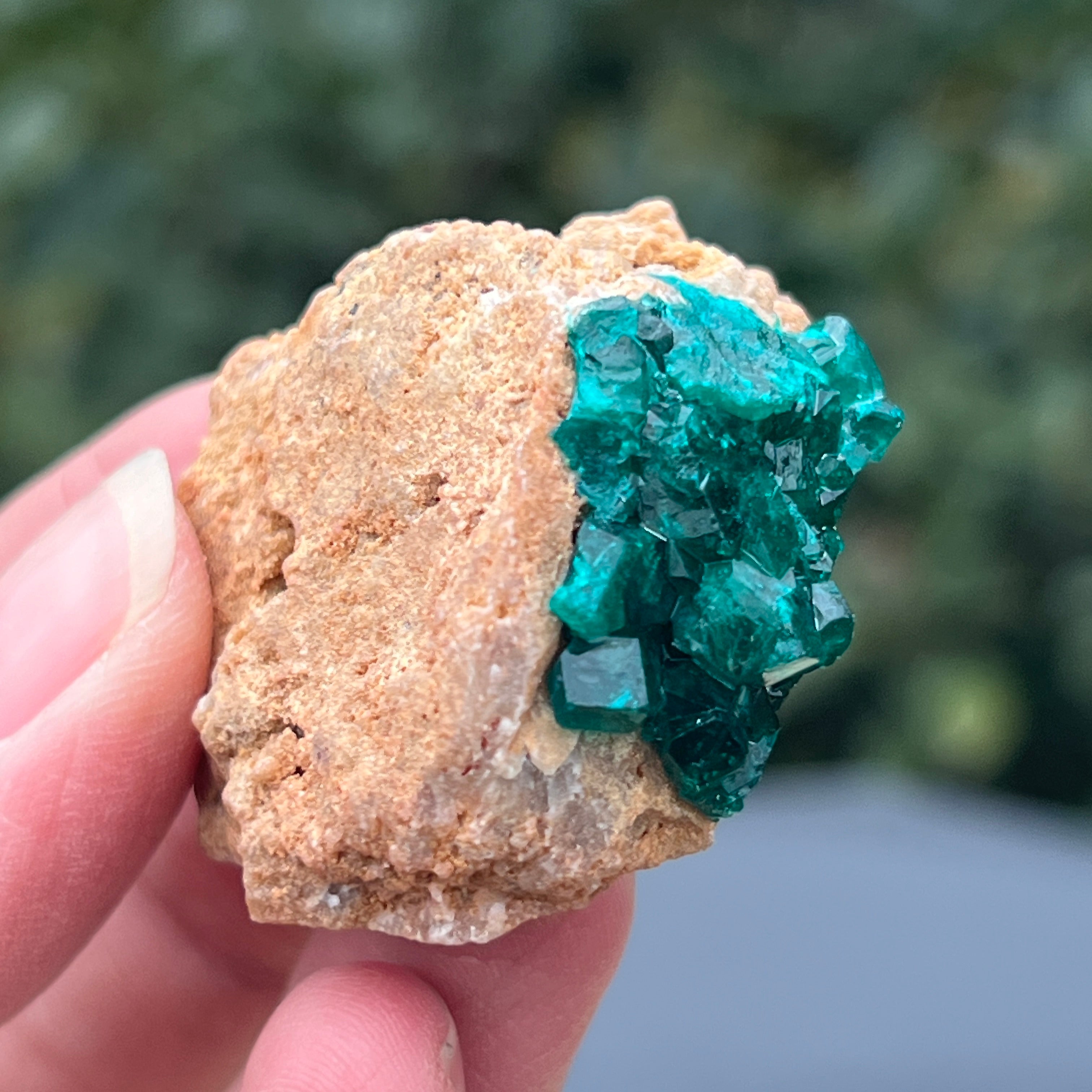 Диоптазът е ценен полускъпоценен камък със яркозелен цвят, съставен от меден силикат и хидроксид.