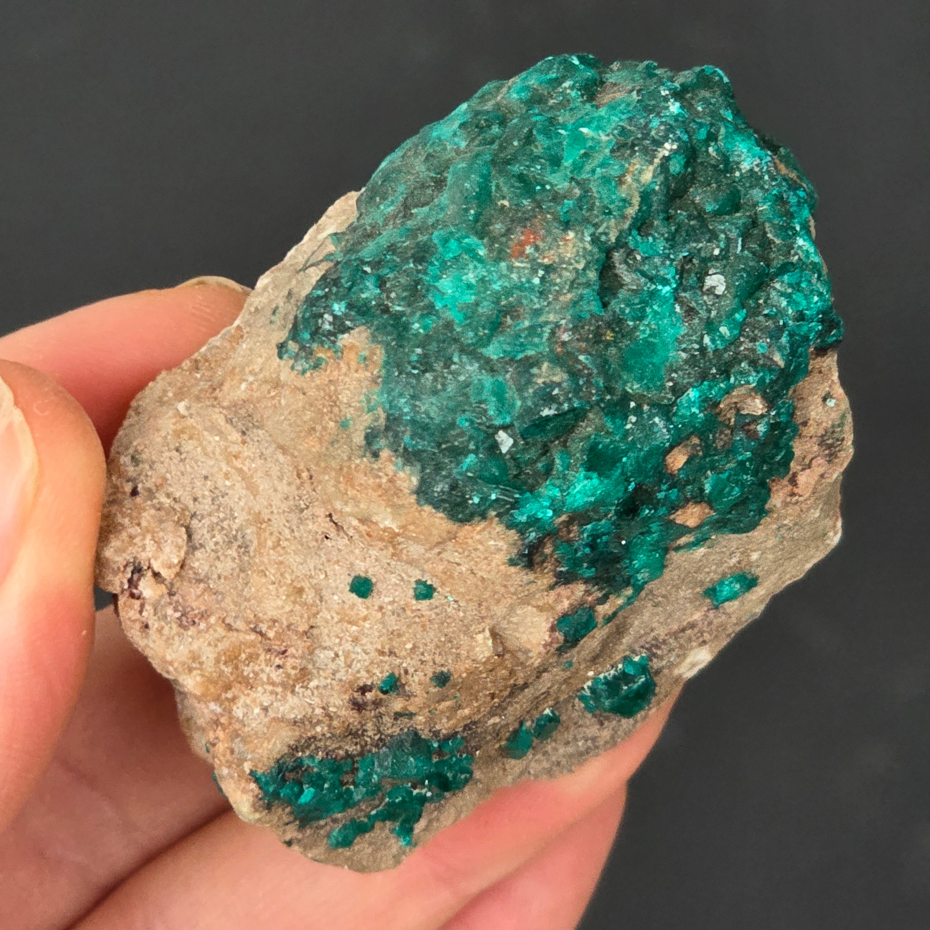 Диоптазът е ценен полускъпоценен камък с яркозелен цвят, съставен от меден силикат и хидроксид.