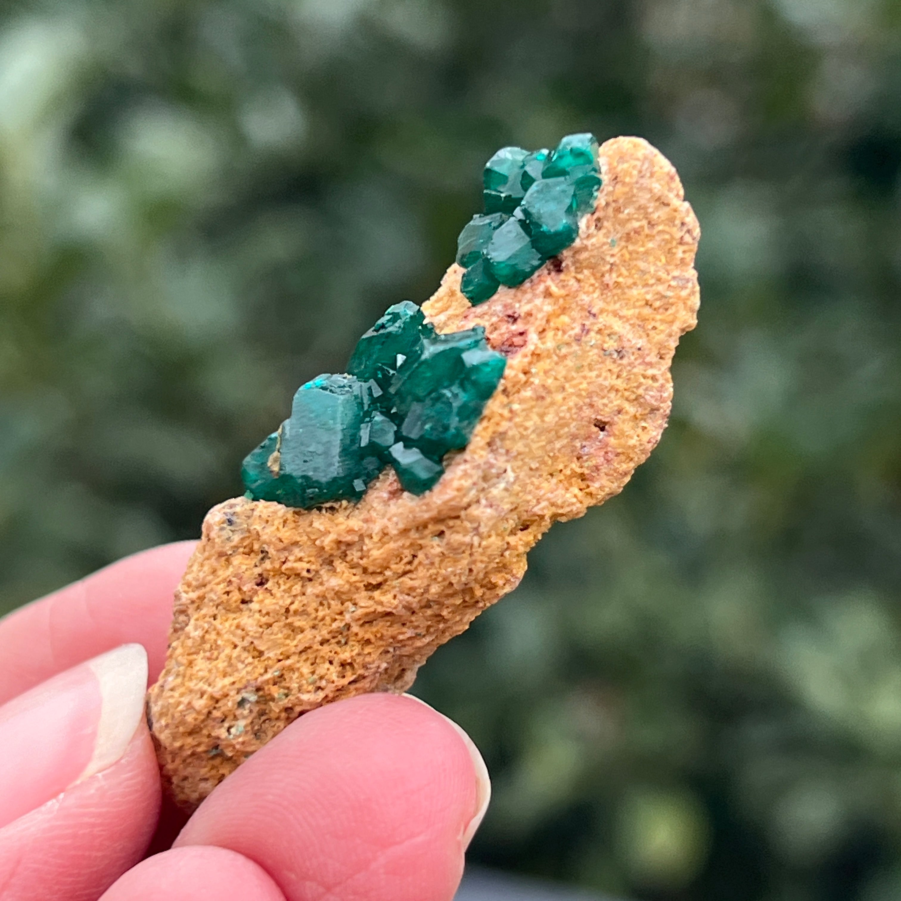 Диоптазът е ценен полускъпоценен камък със яркозелен цвят, съставен от меден силикат и хидроксид.