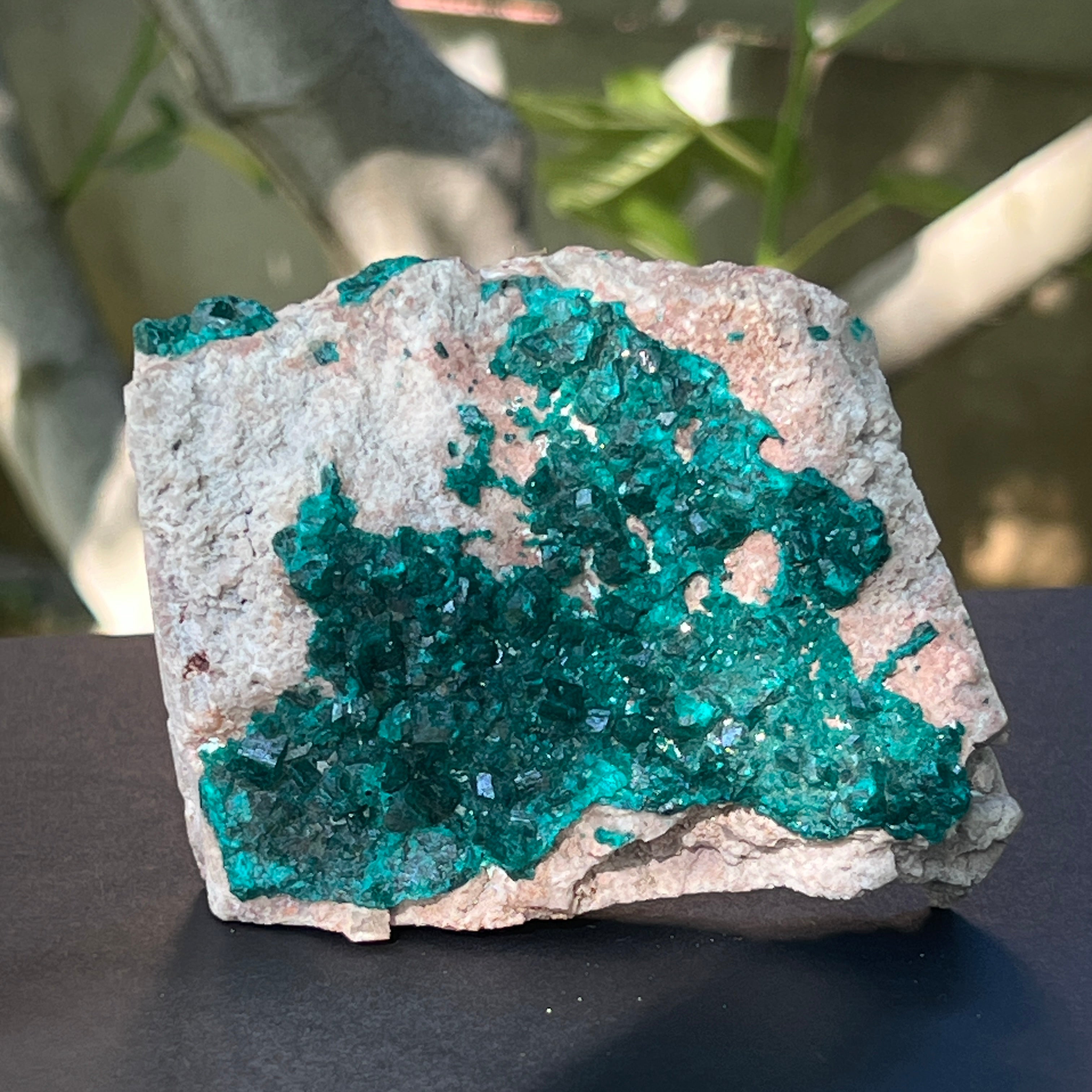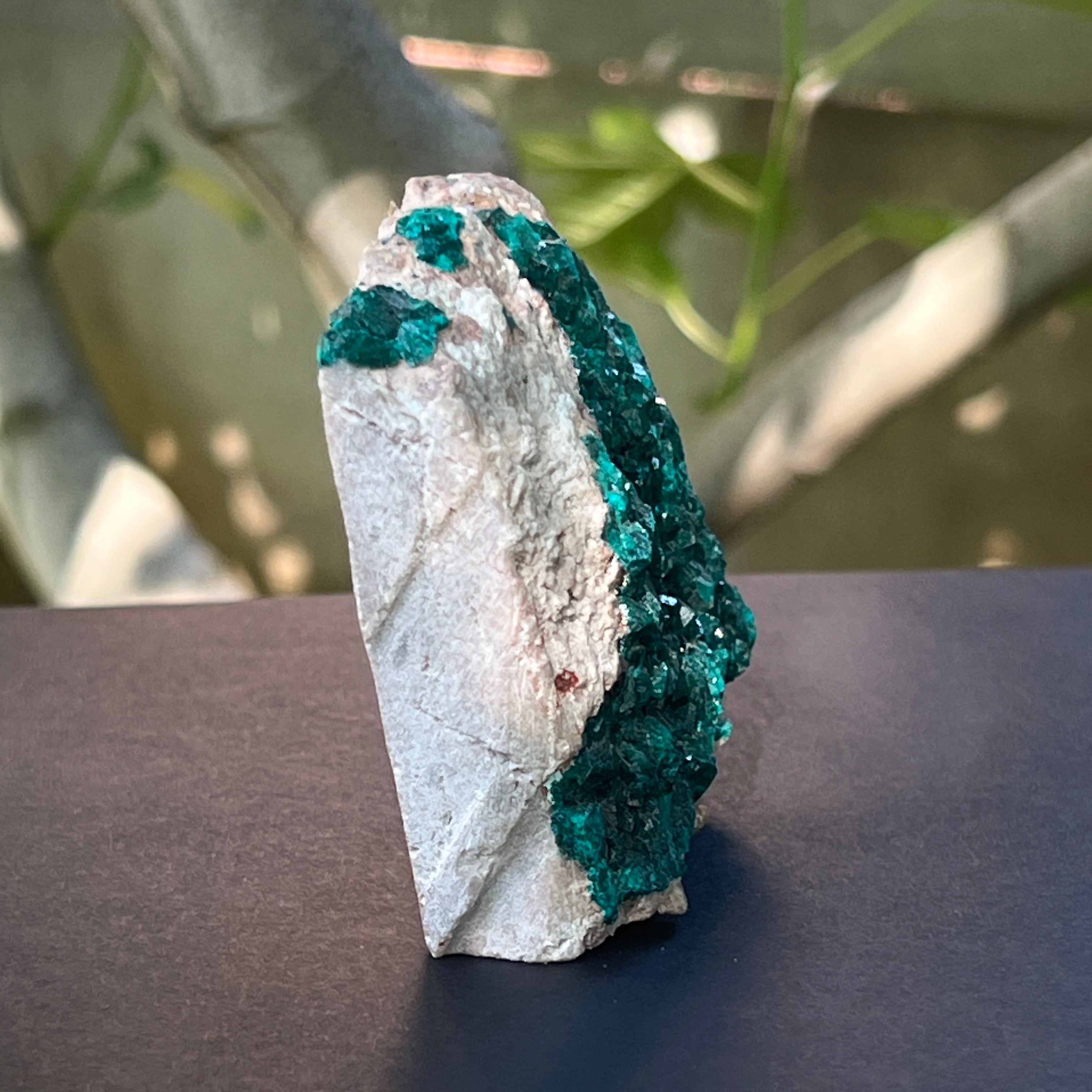 Диоптазът е ценен полускъпоценен камък с ярко зелен цвят, съставен от меден силикат и хидроксид.