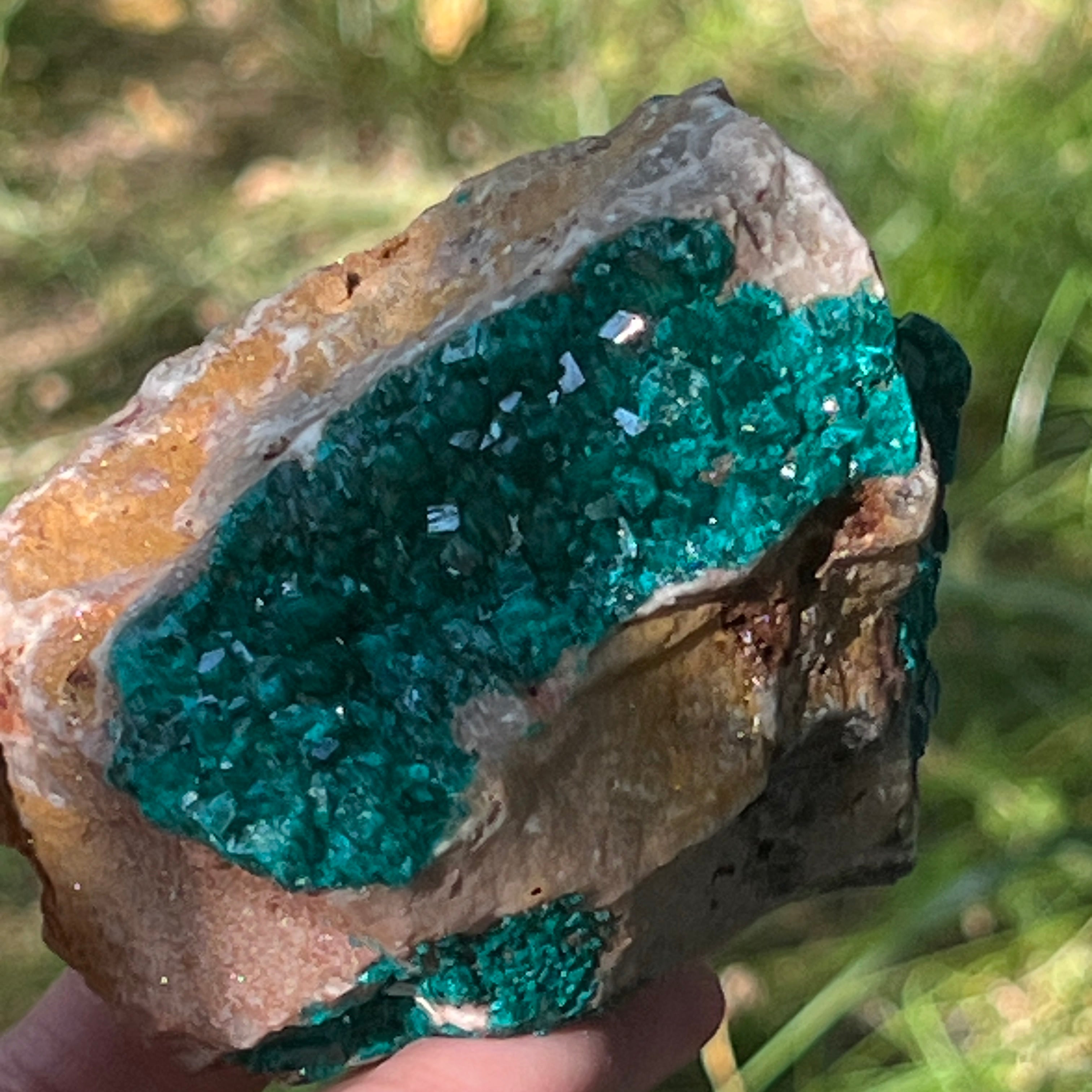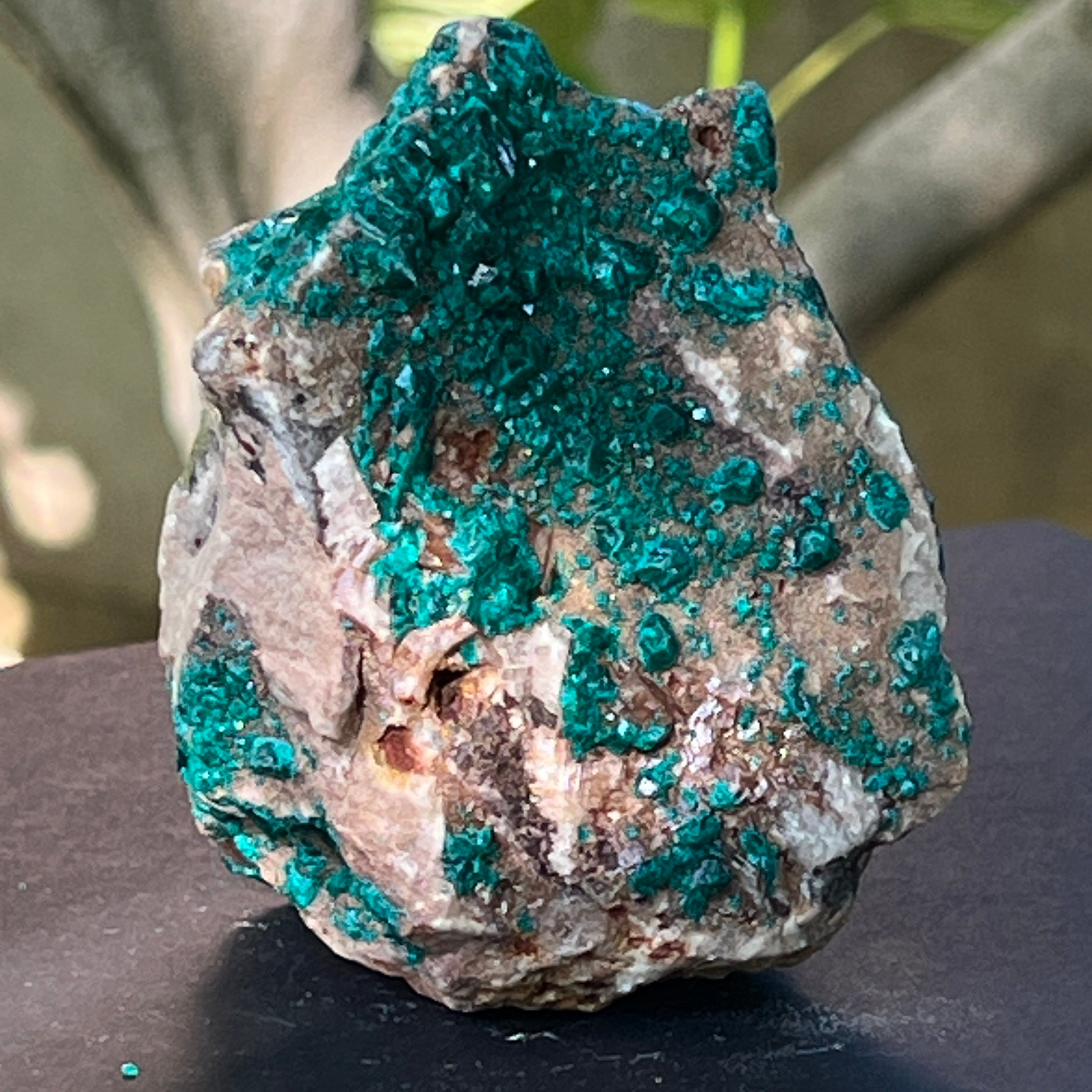 Диоптазът е ценен полускъпоценен камък с наситено зелен цвят, съставен от меден силикат и хидроксид.