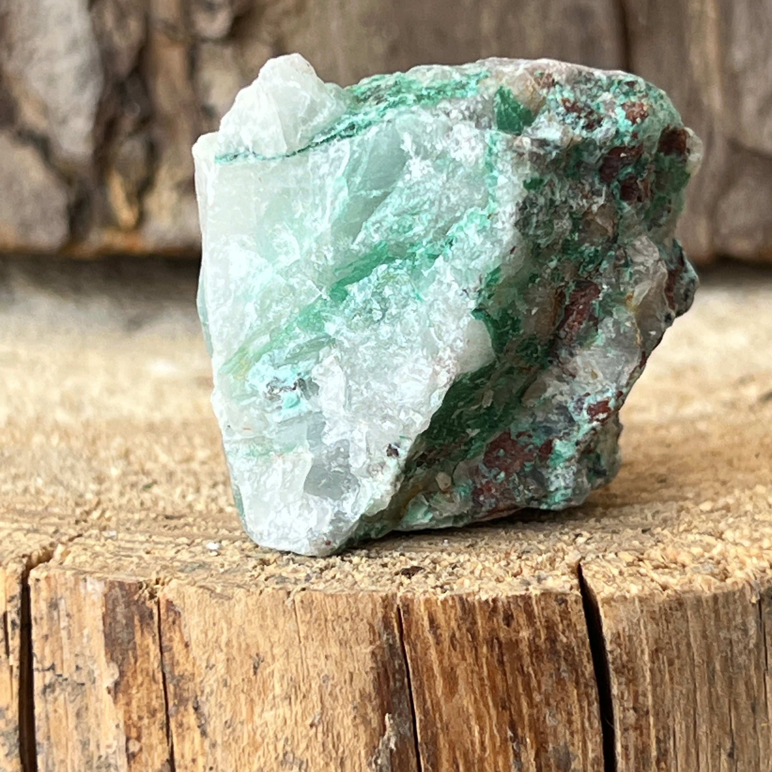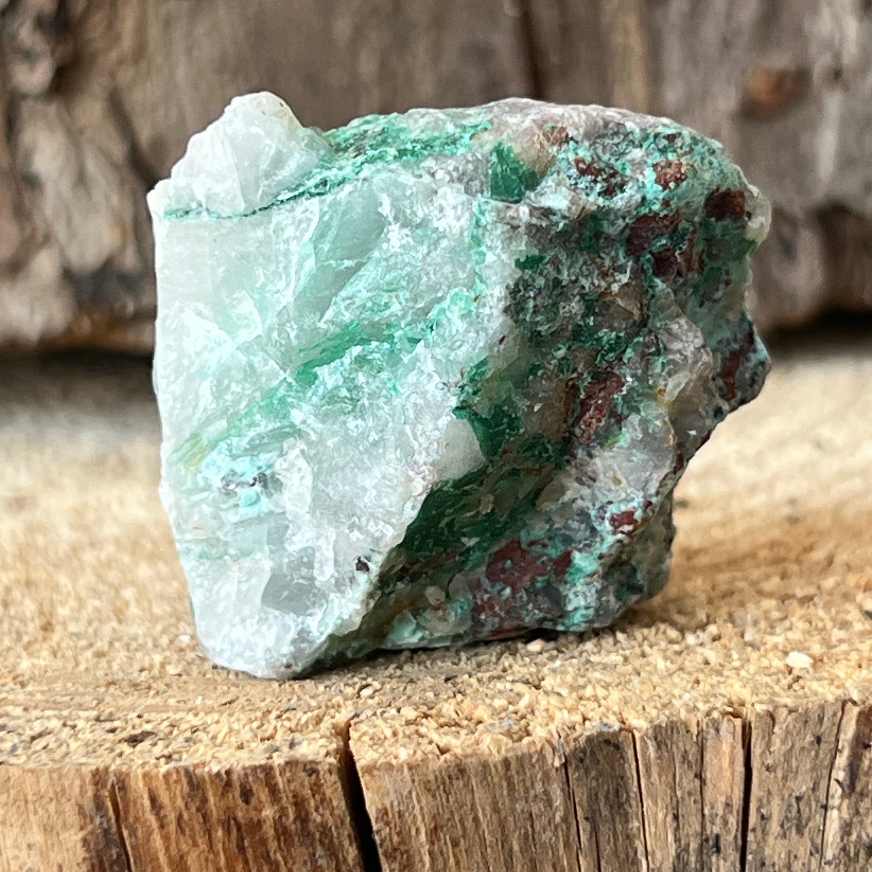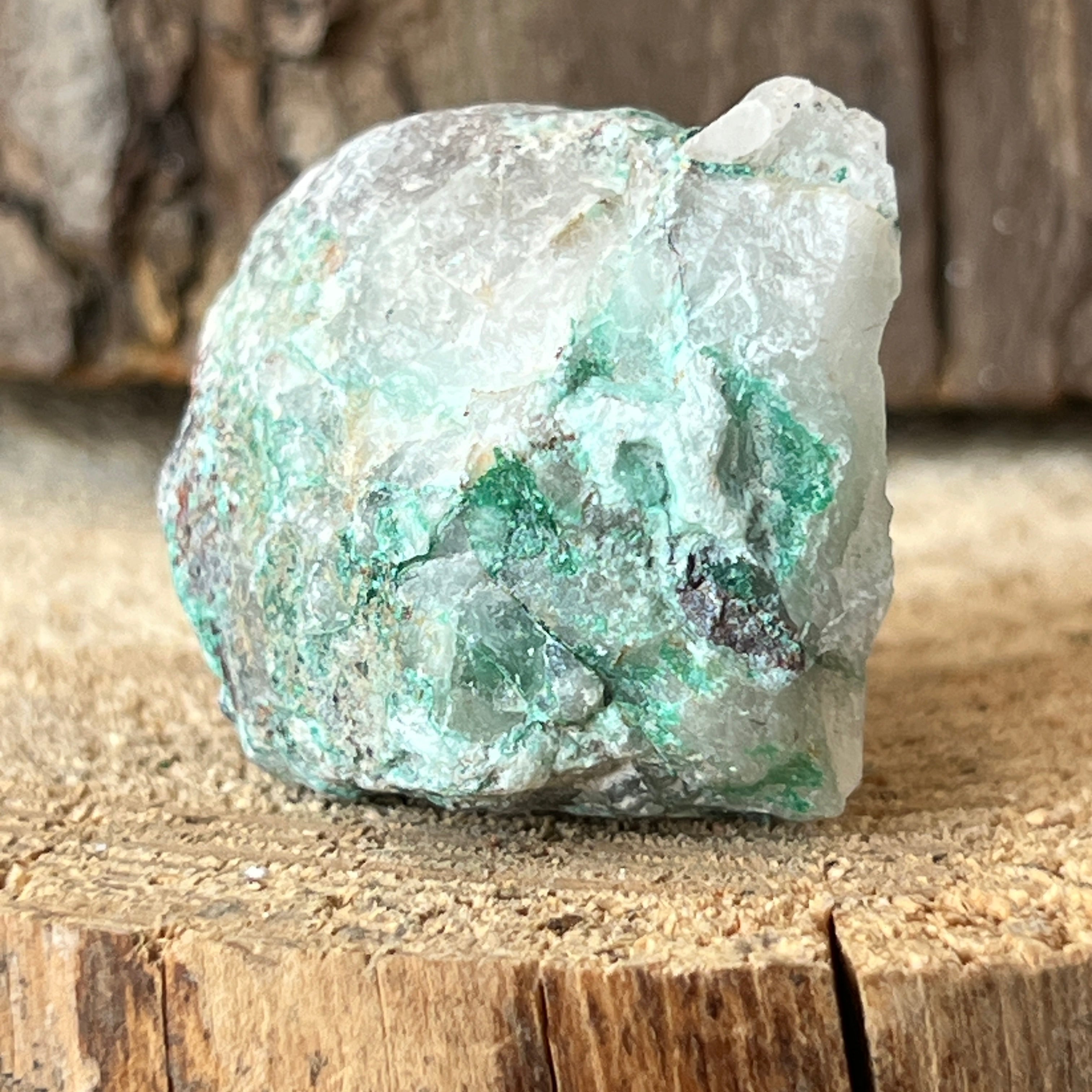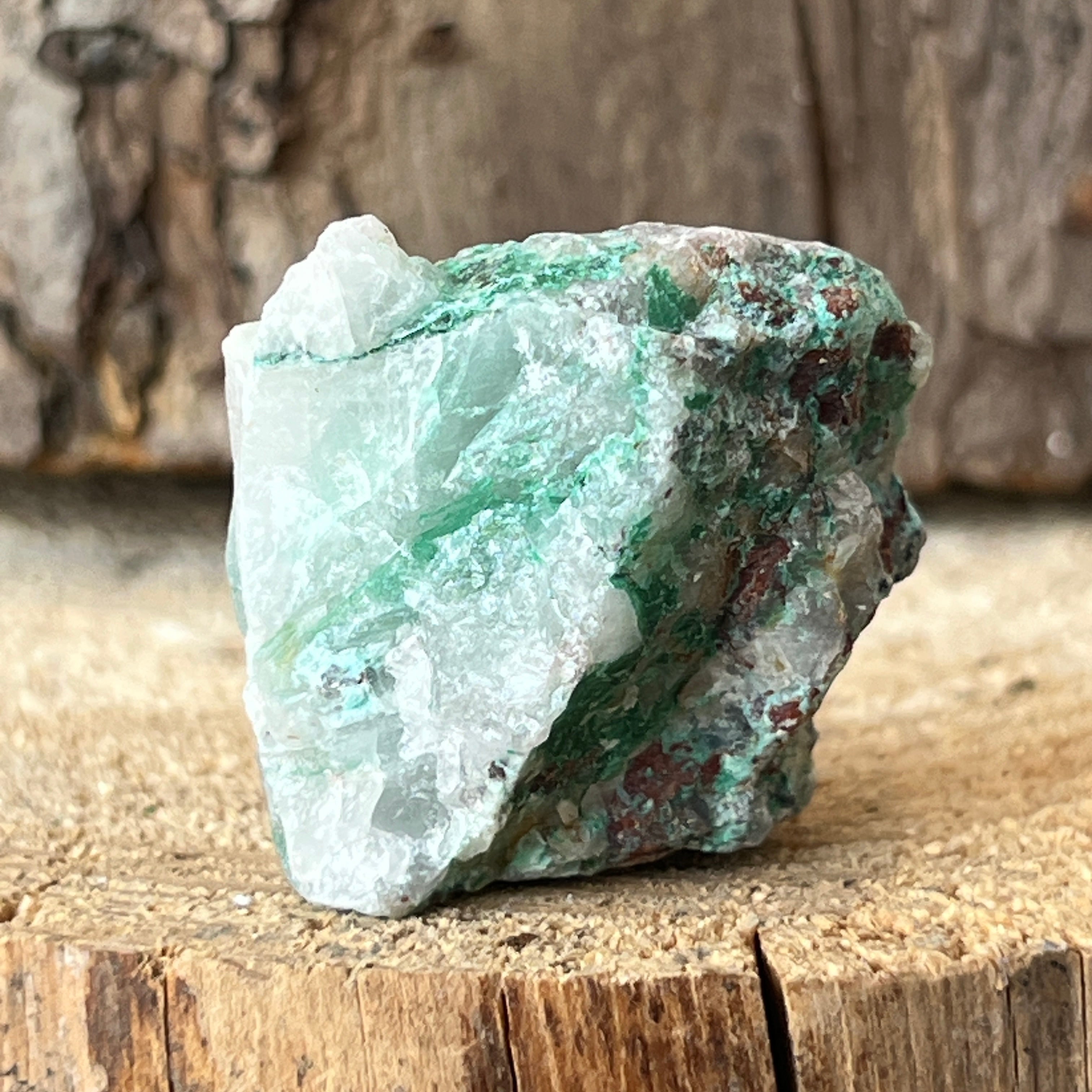 Ajoit е рядък камък, който се състои от натриев силикат и мед с интензивен зелен цвят.