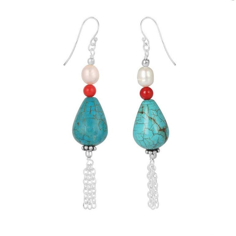 Ревюта – Дълги тюркоазени сребърни обеци Модел 2