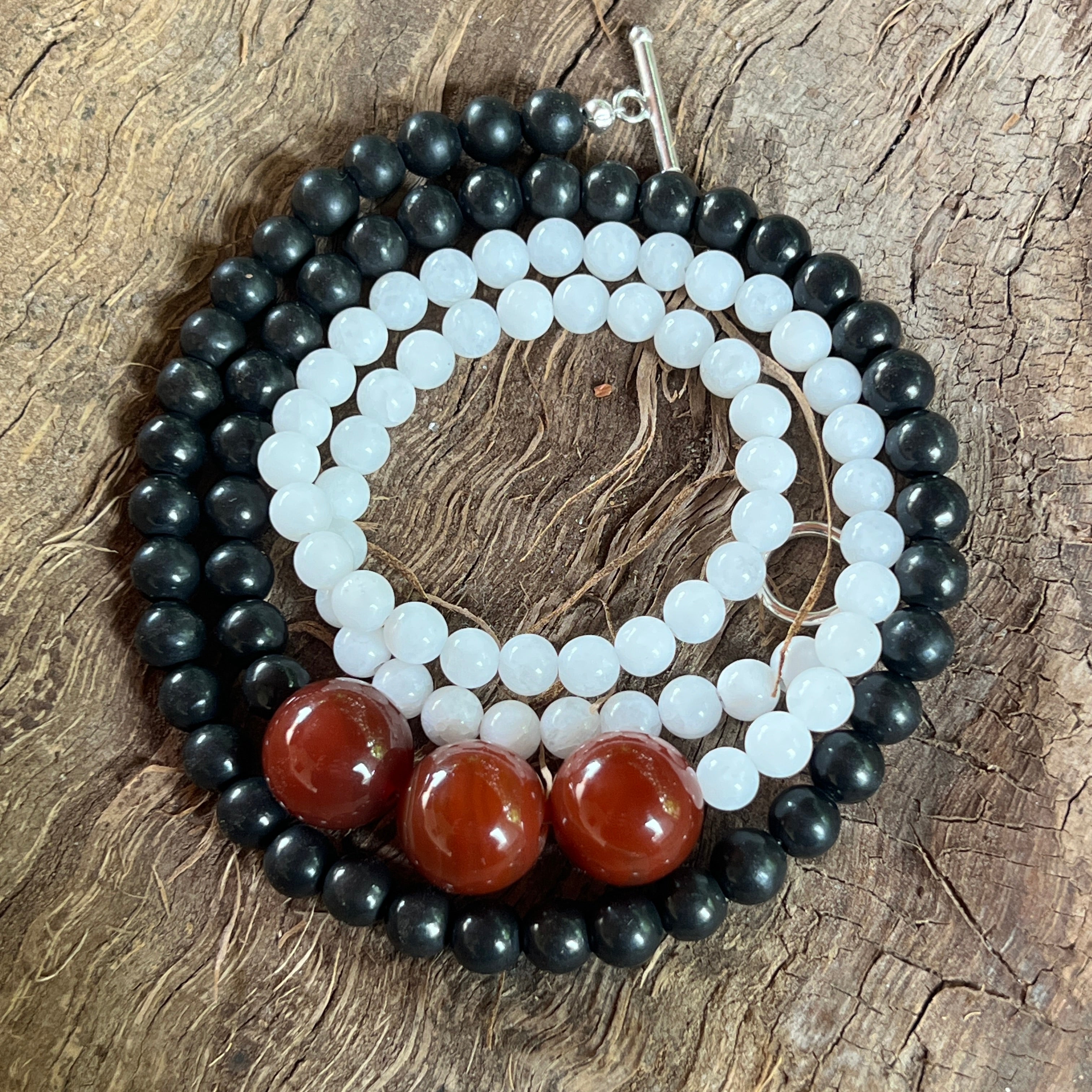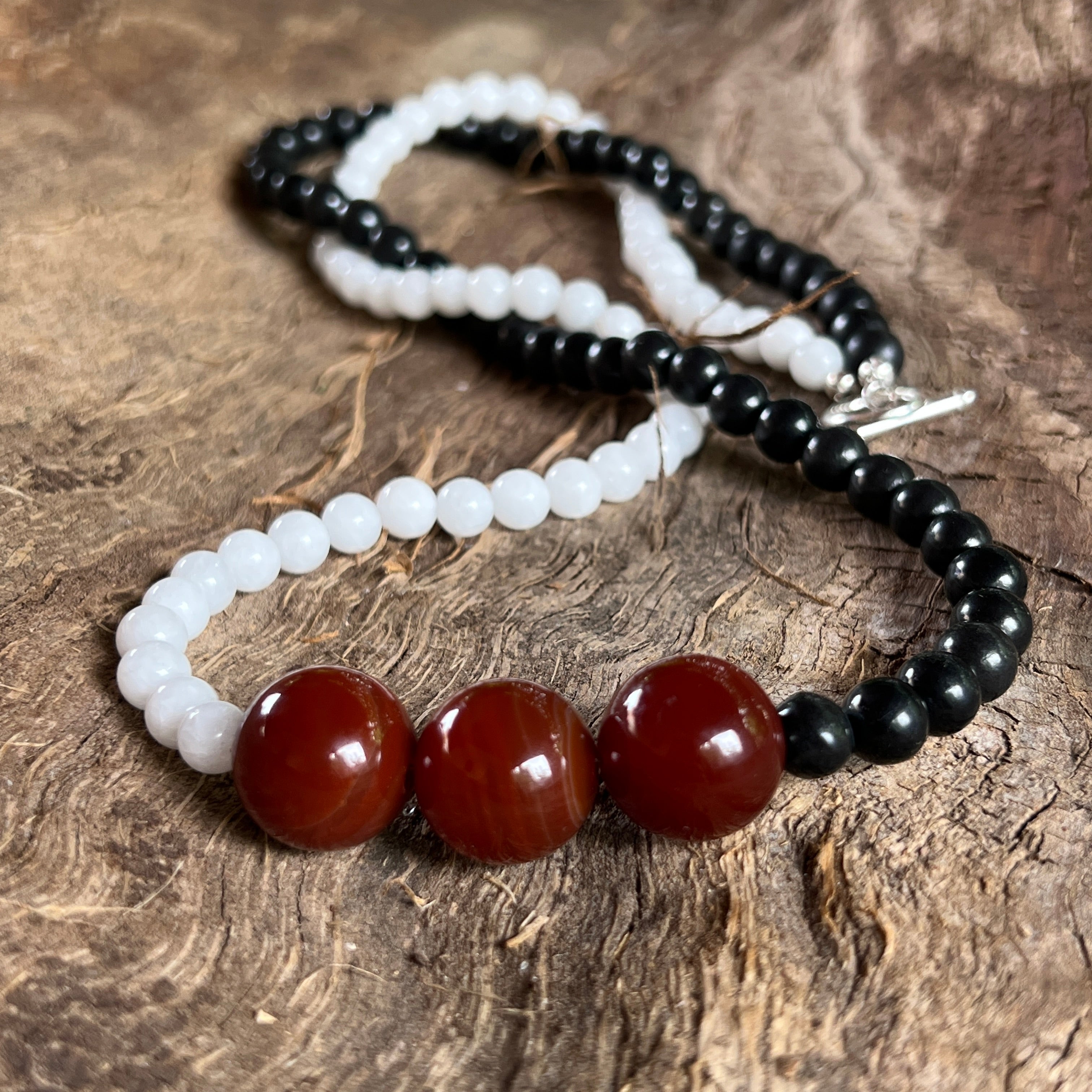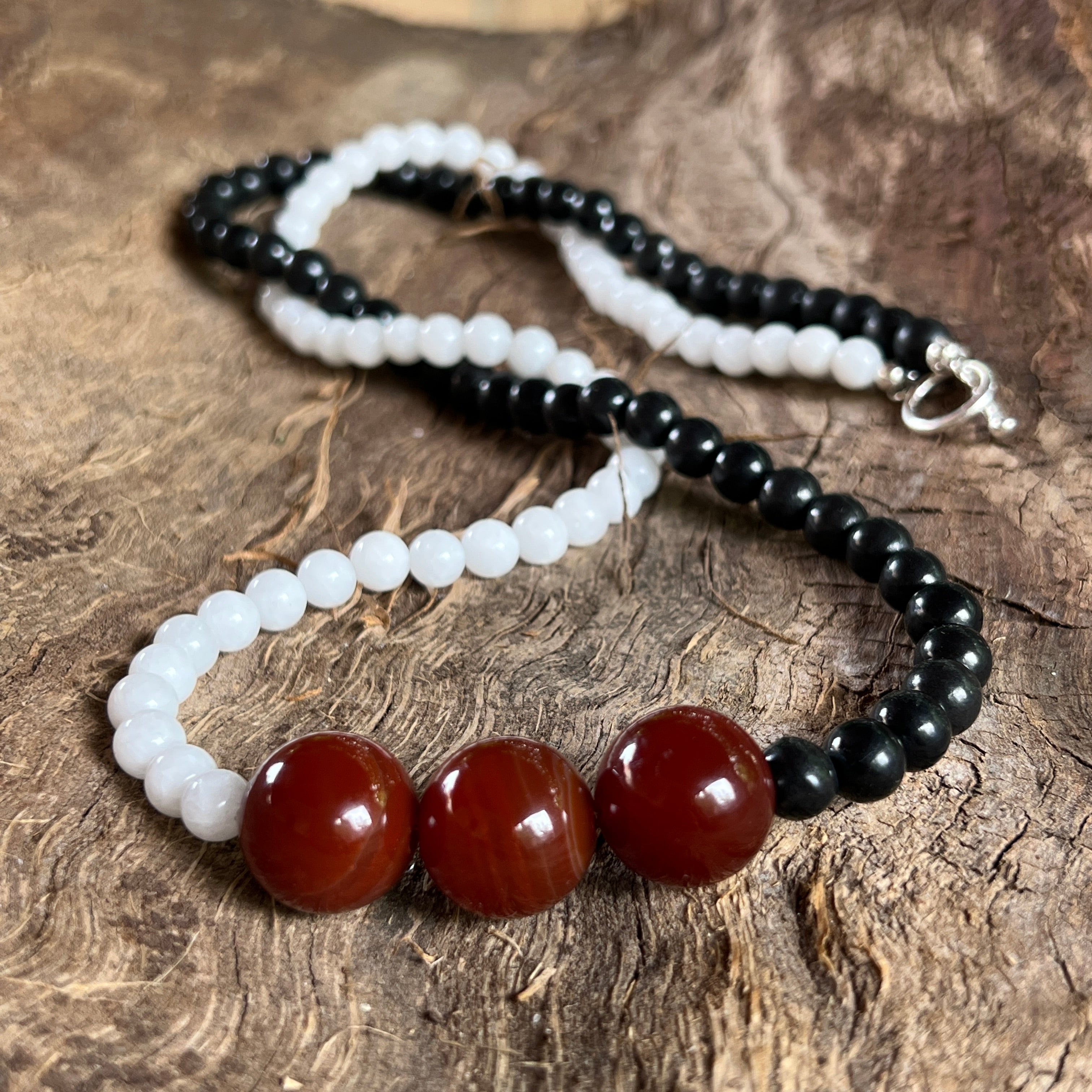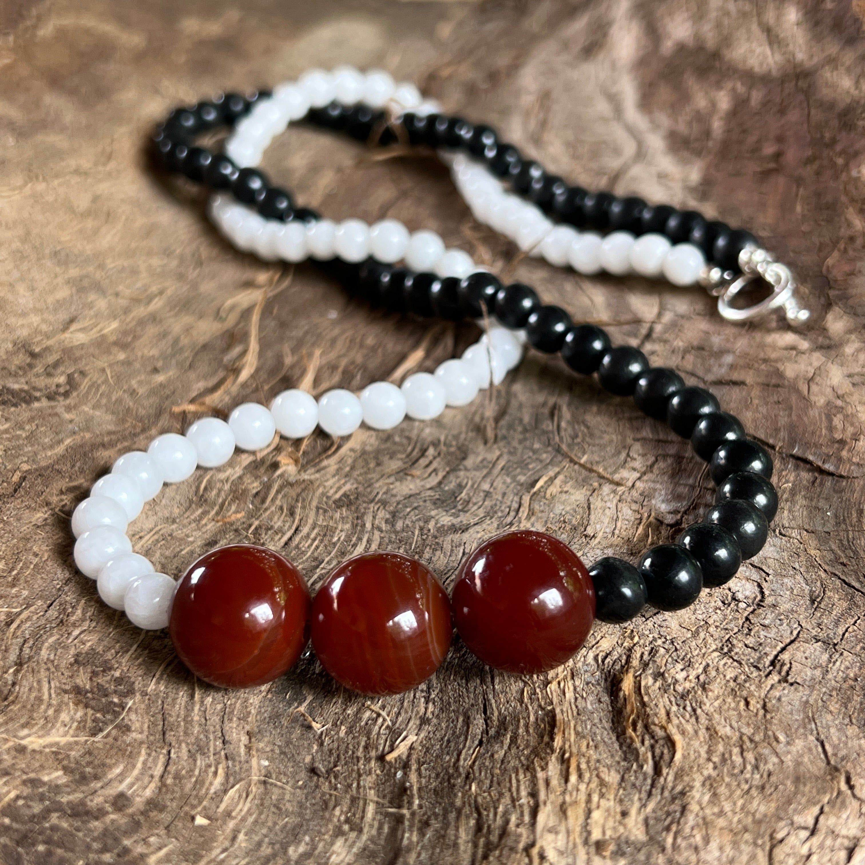 Дълго колие от шунгит, бял жадеит и карнеол Rooted Glow#14