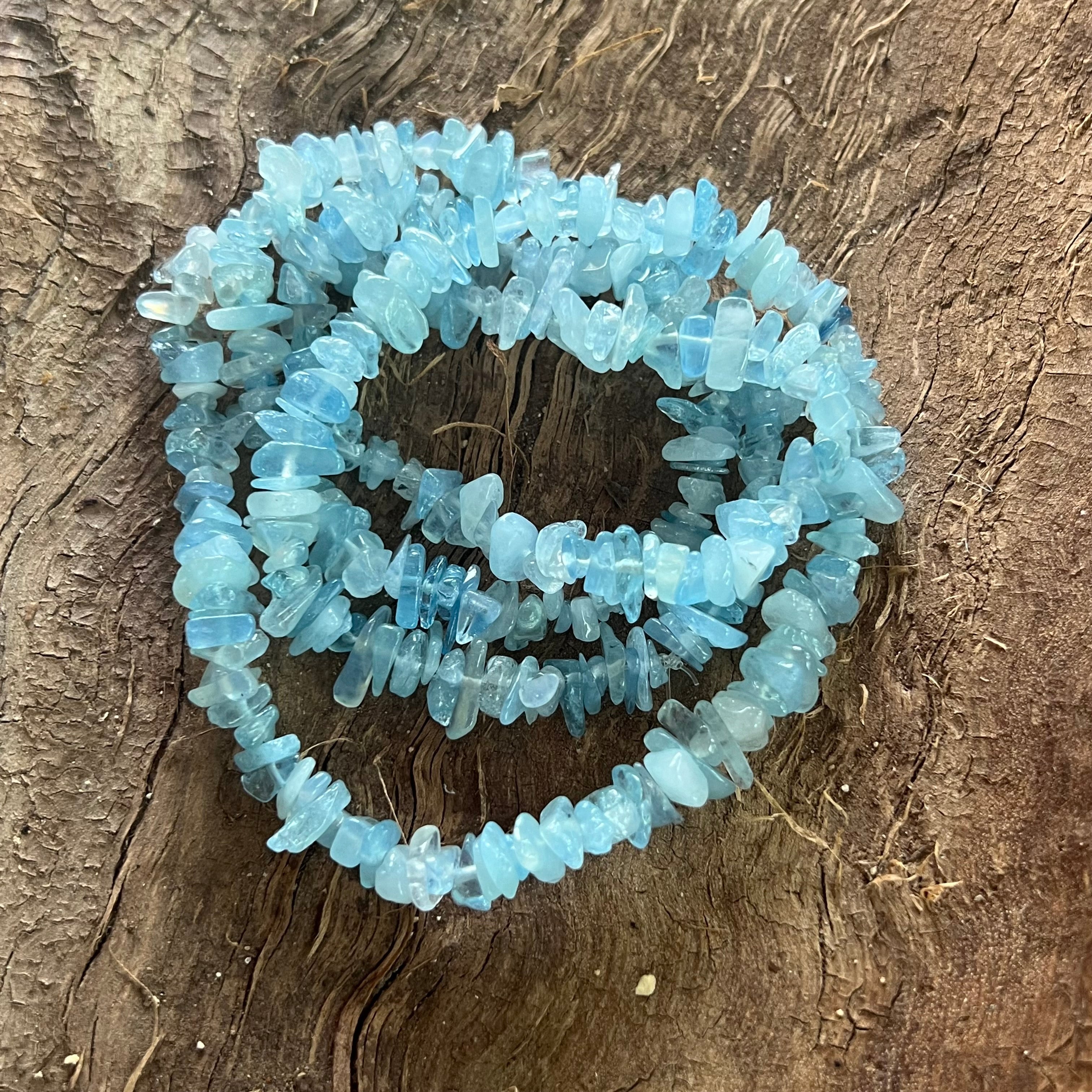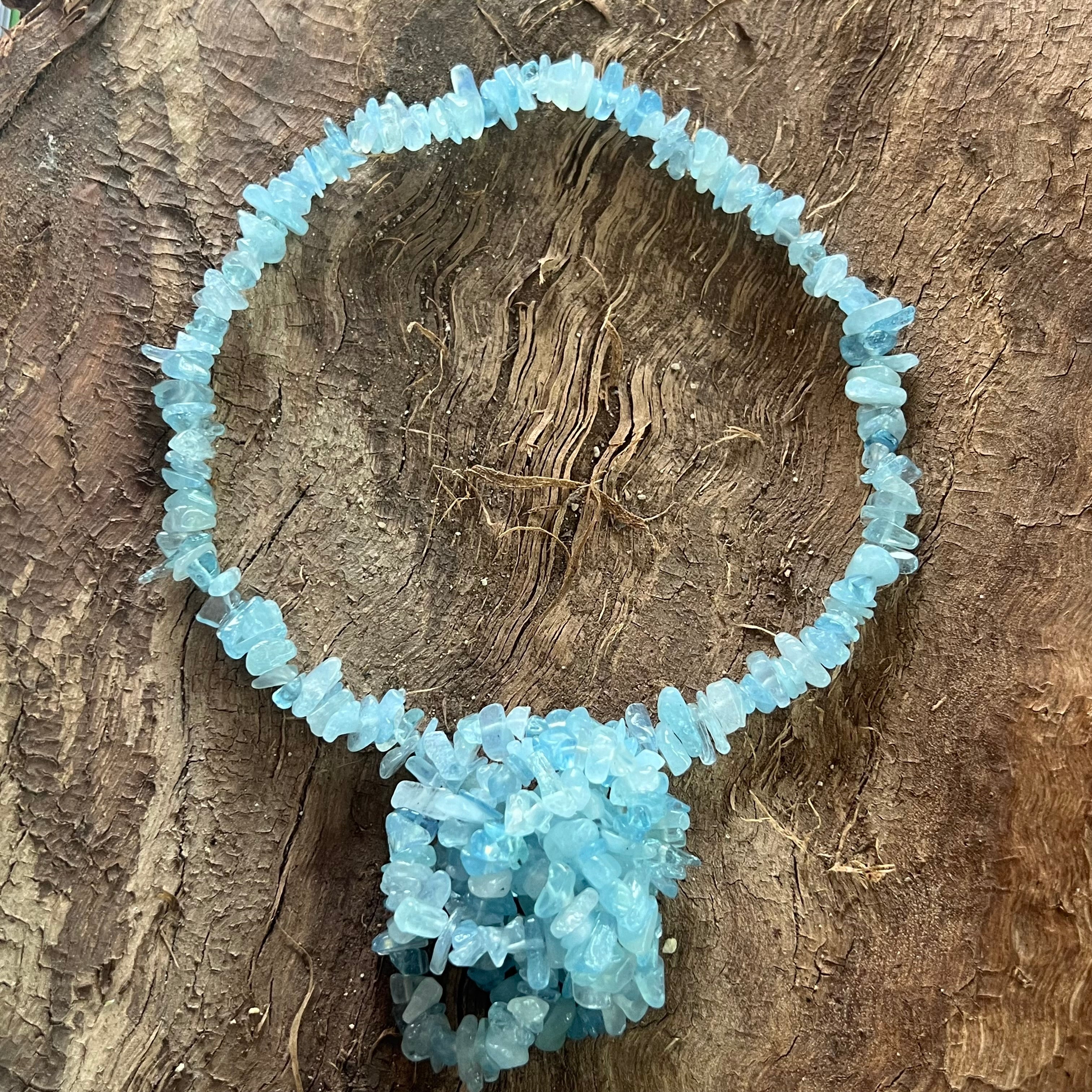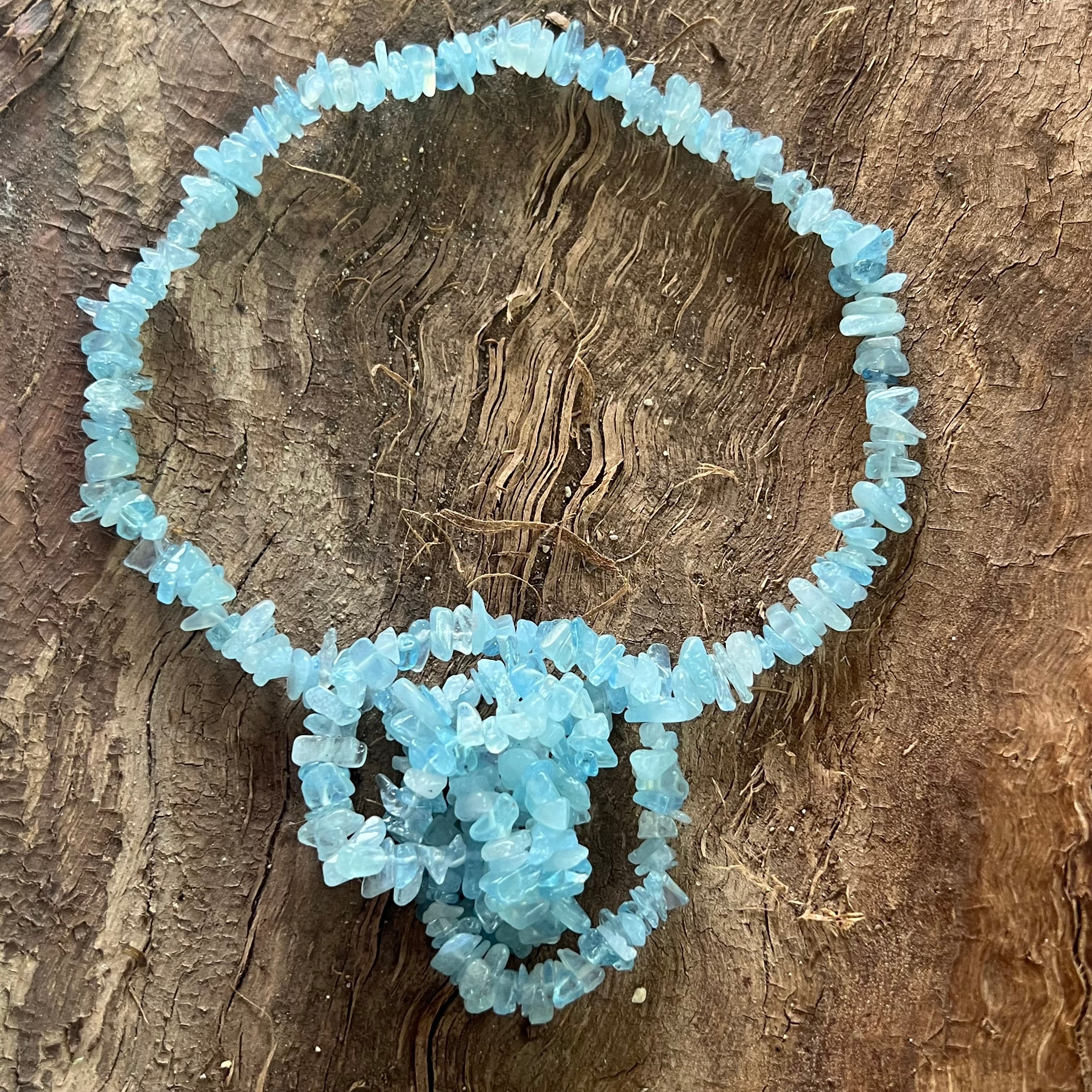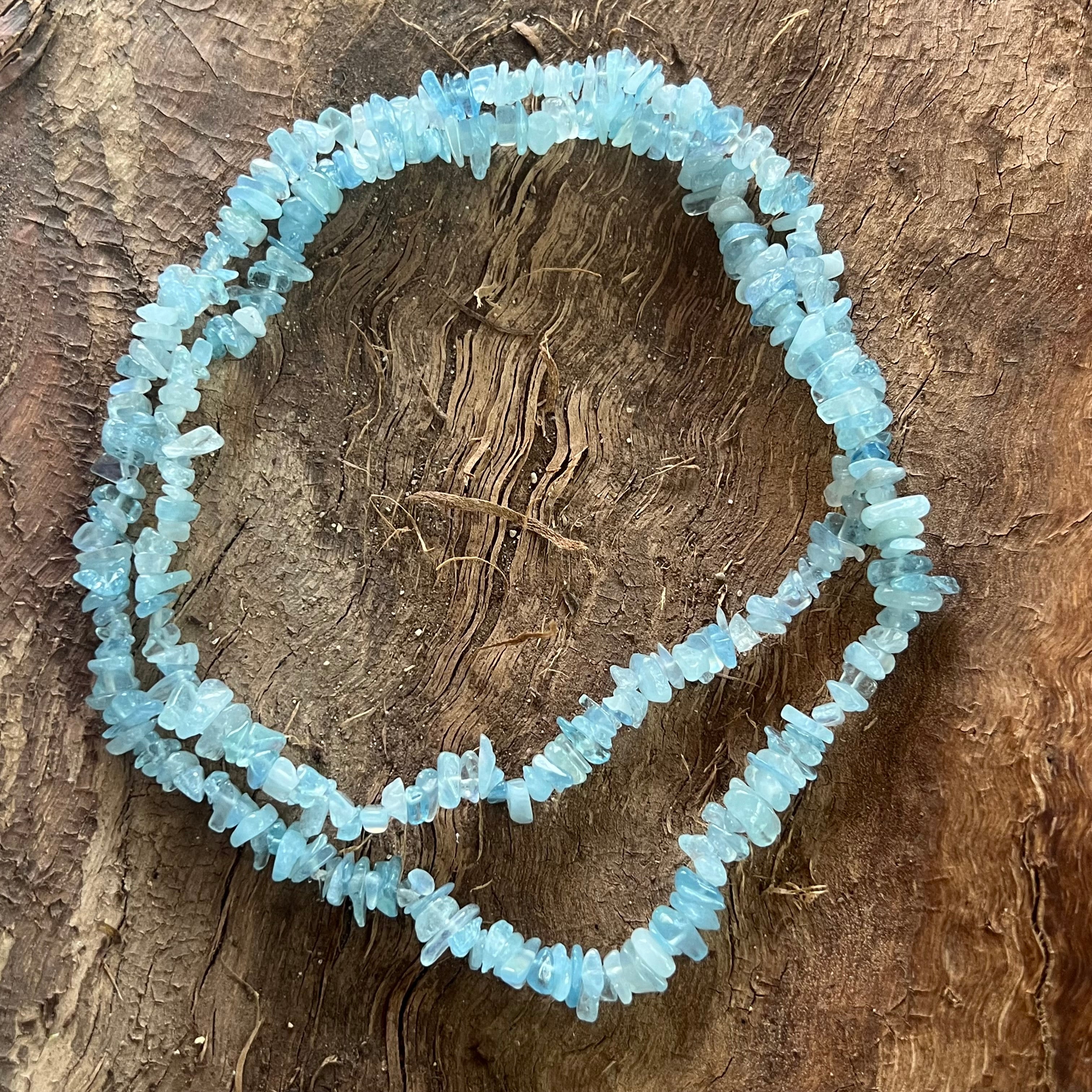 Дълго колие с аквамаринови чипсове, приблизителен размер 80 см