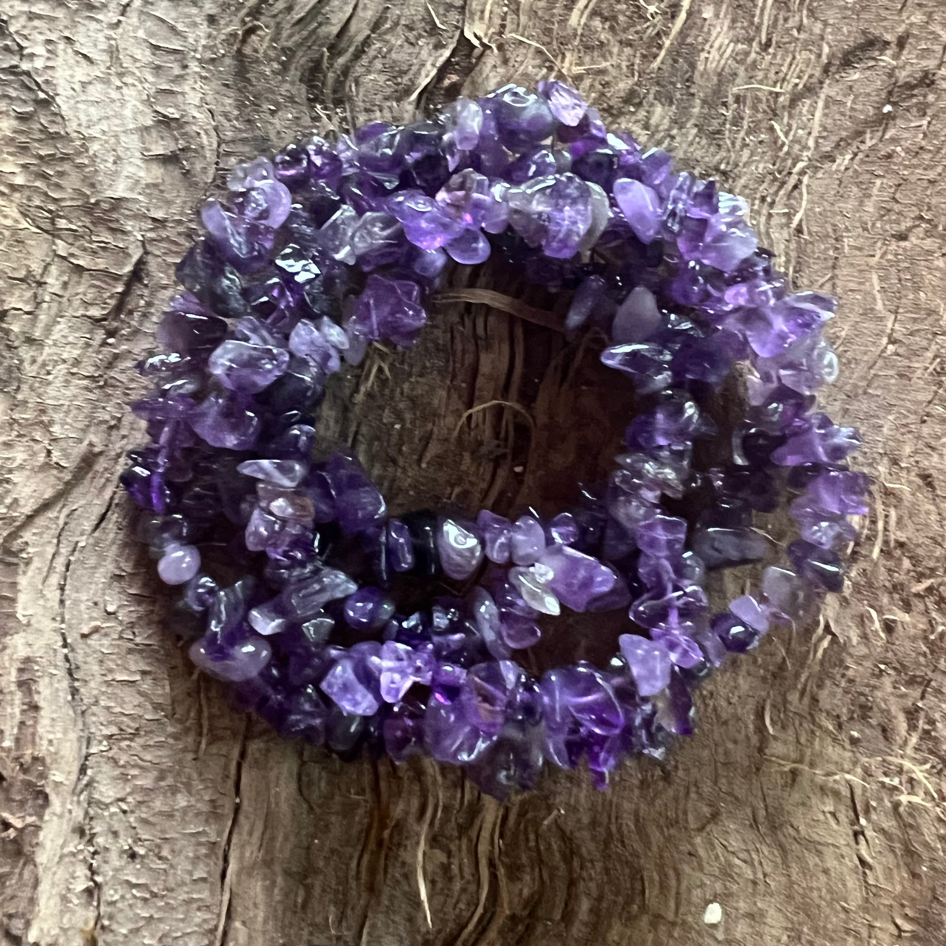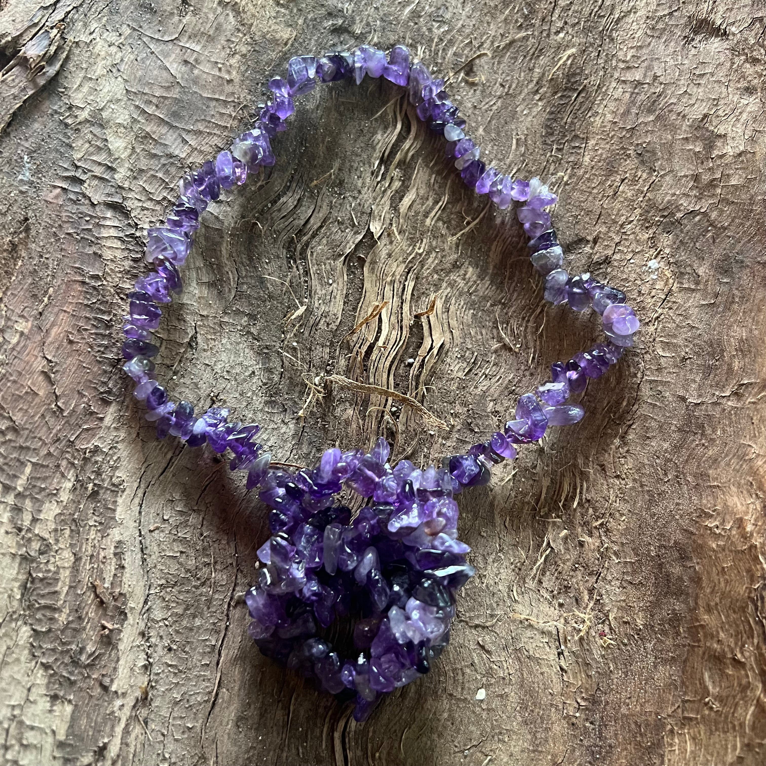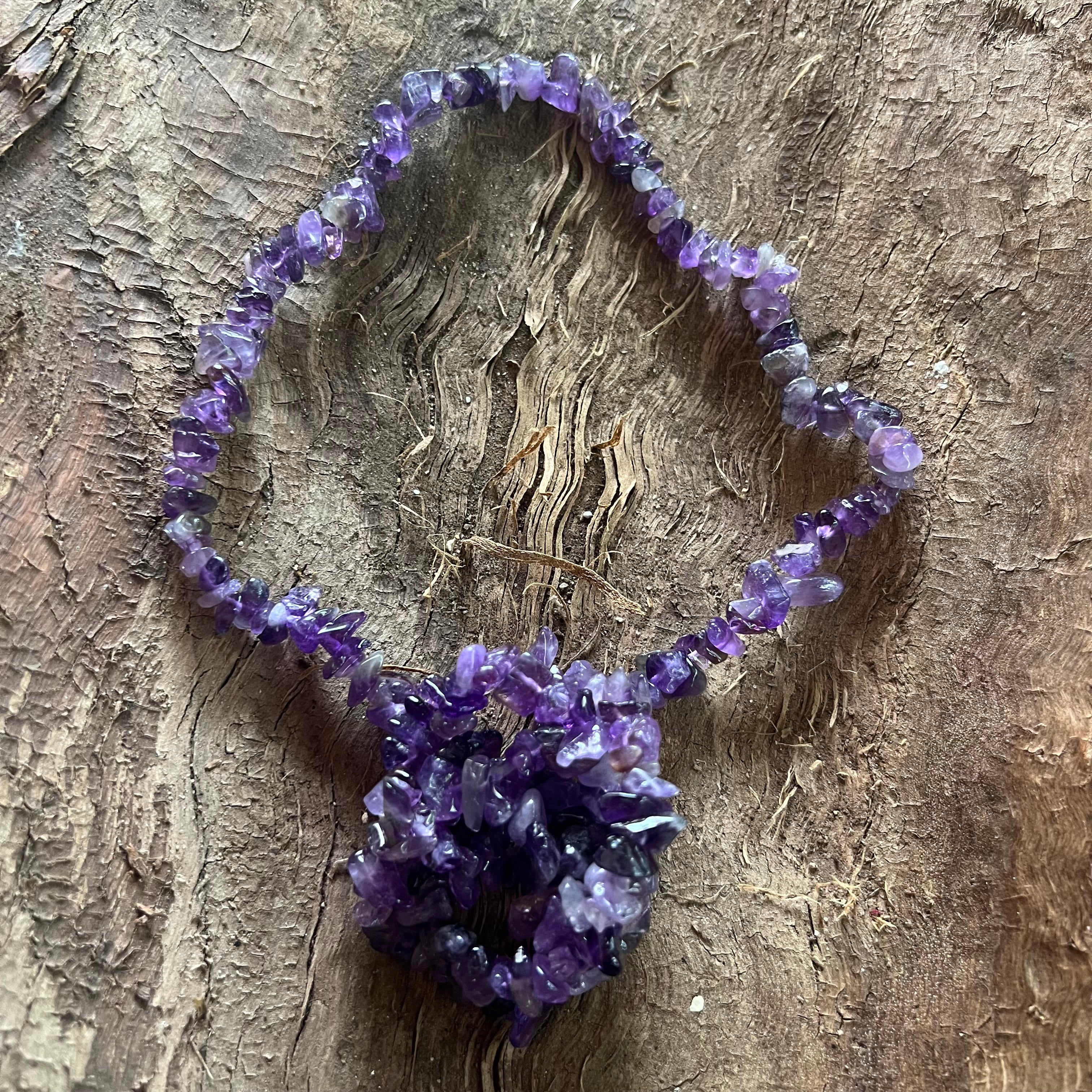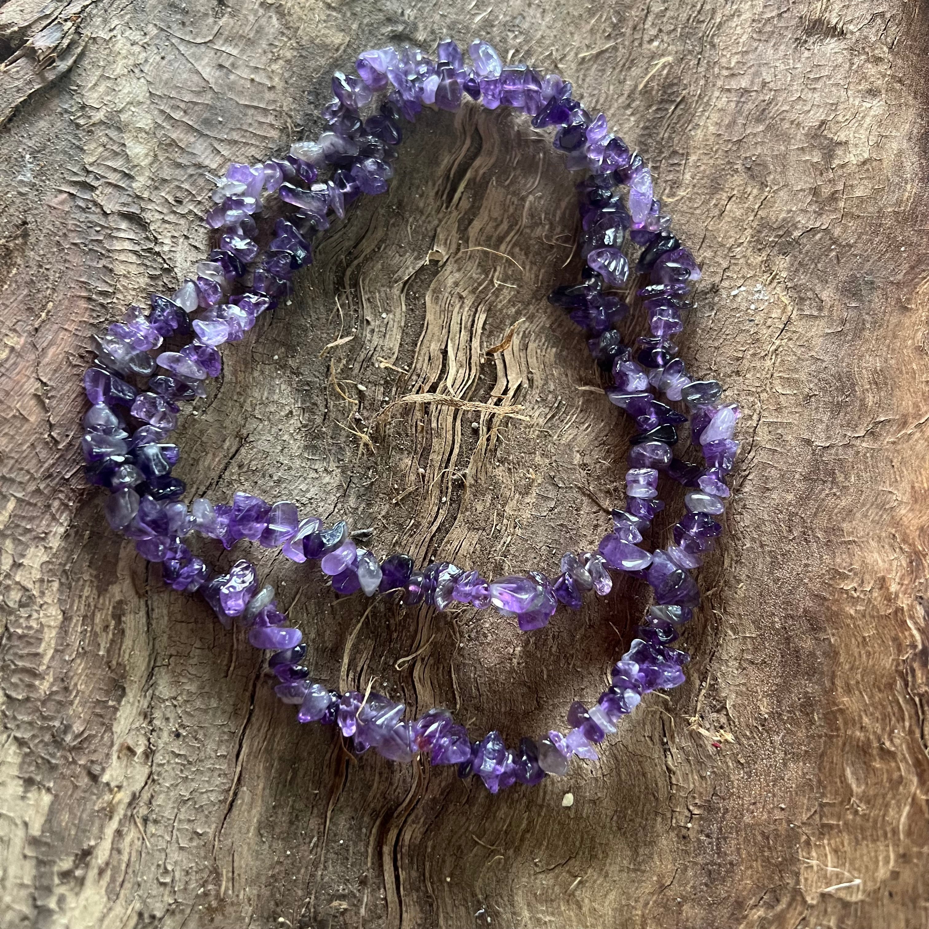 Дълго колие с чипс от аметист, приблизителен размер 80 см