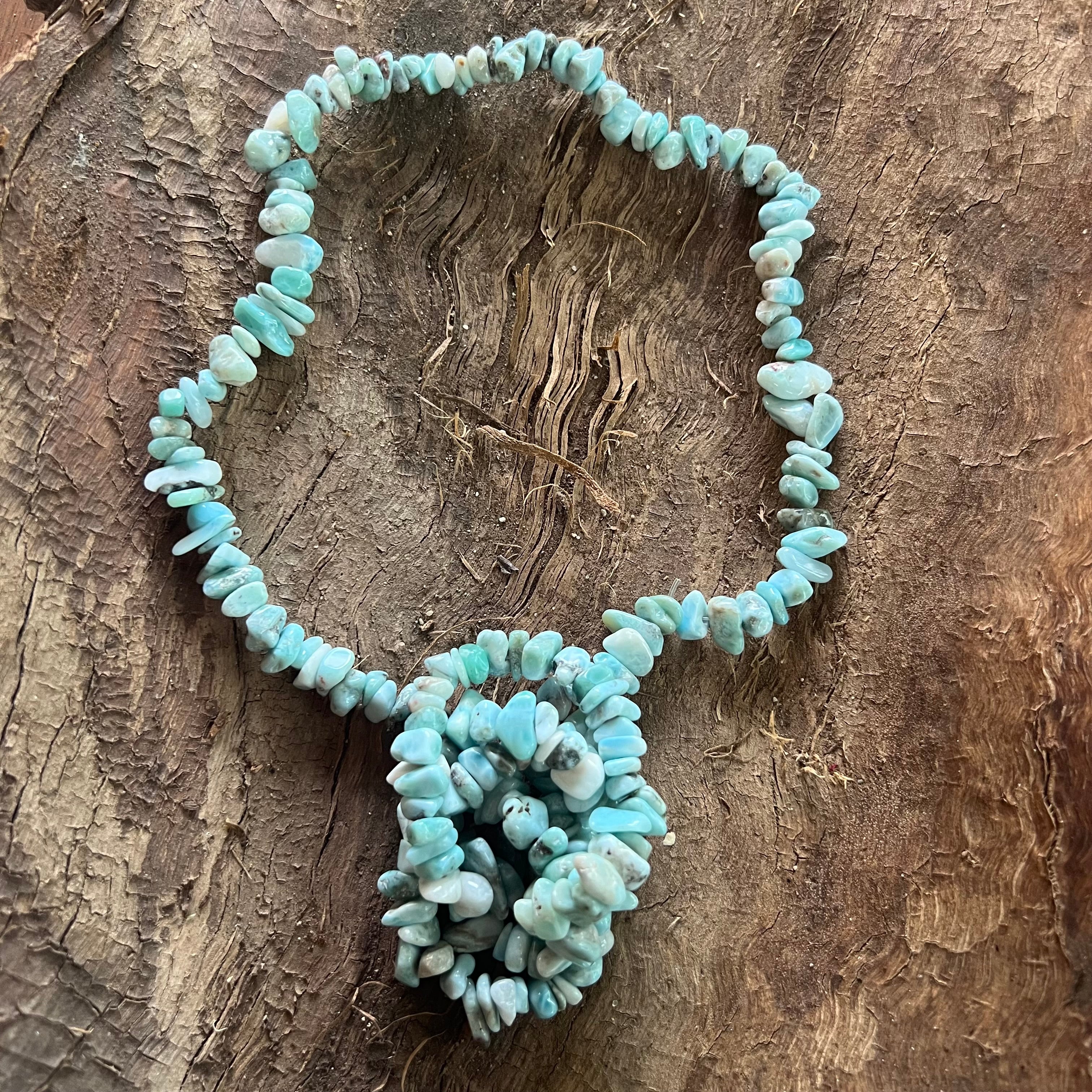 Дълго колие с чипс от ларимар, приблизителна дължина 80 см
