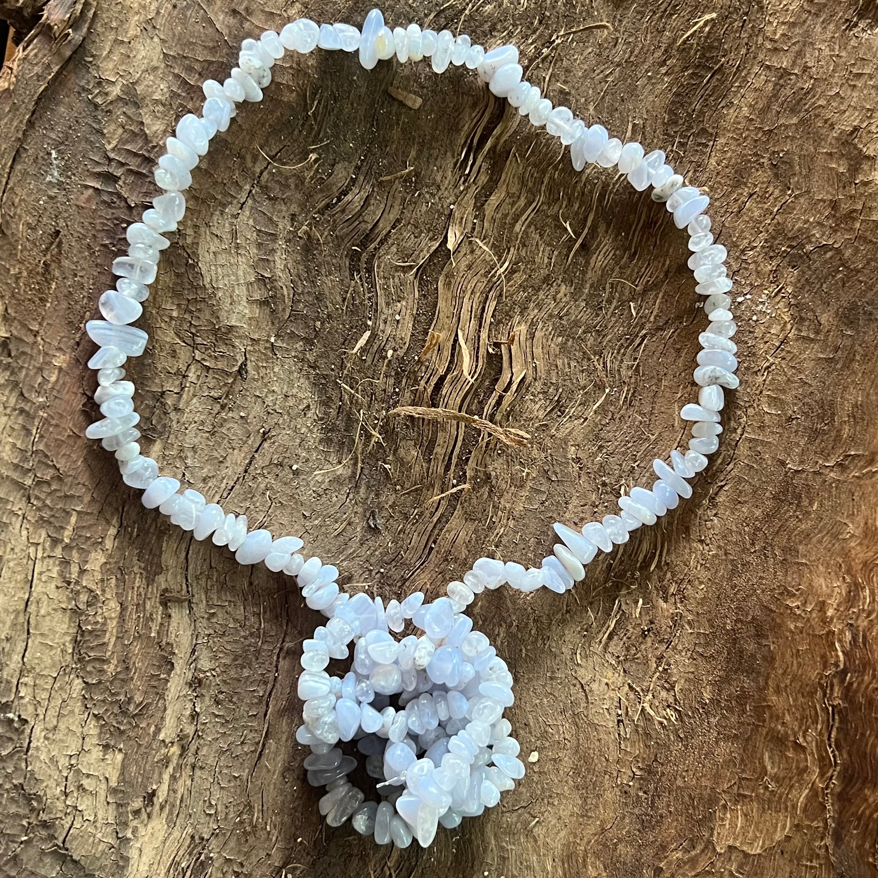 Ревюта – Дълго колие с чипс от синьо калцедон