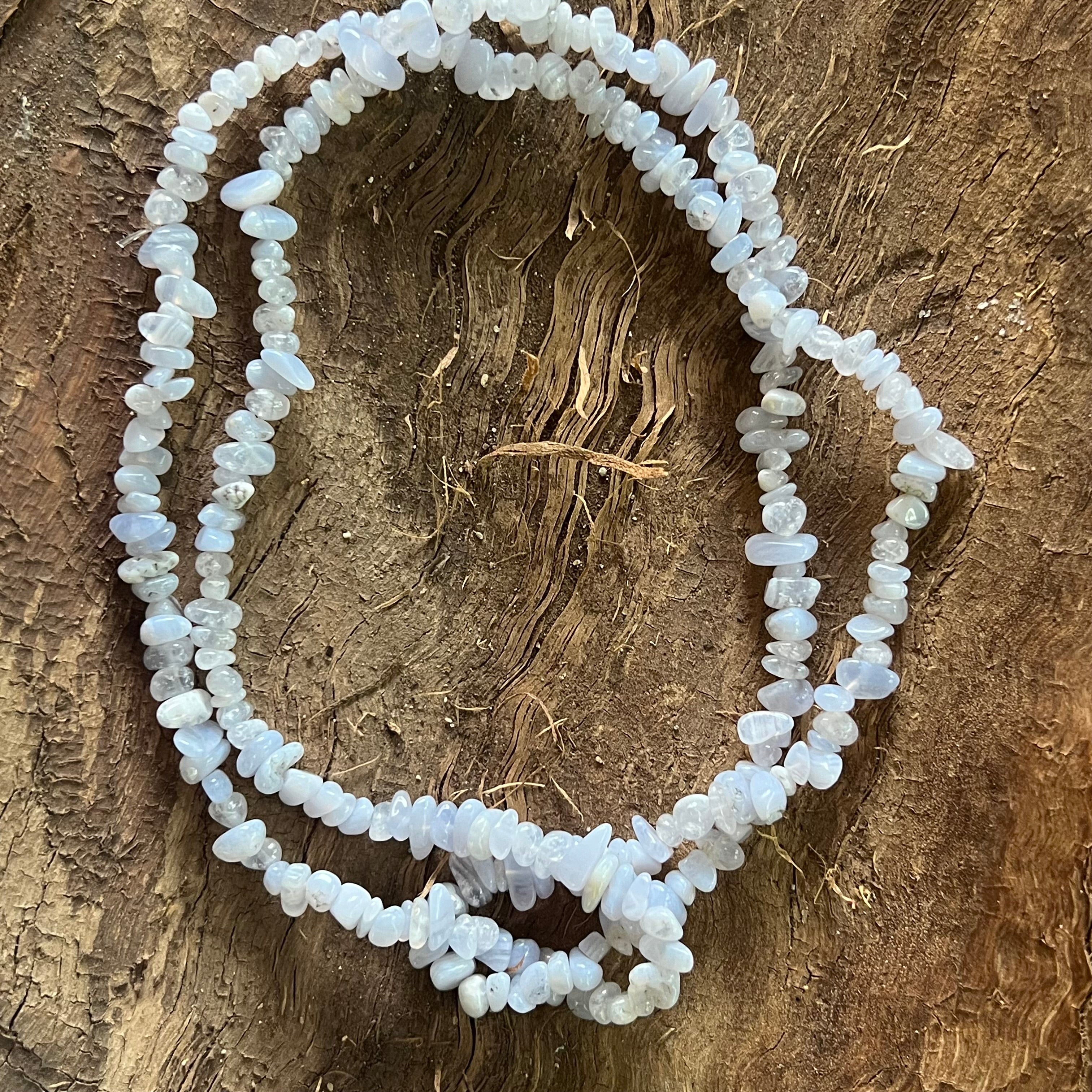 Дълго колие с чипс от синьо калцедон, приблизителна дължина 80 см