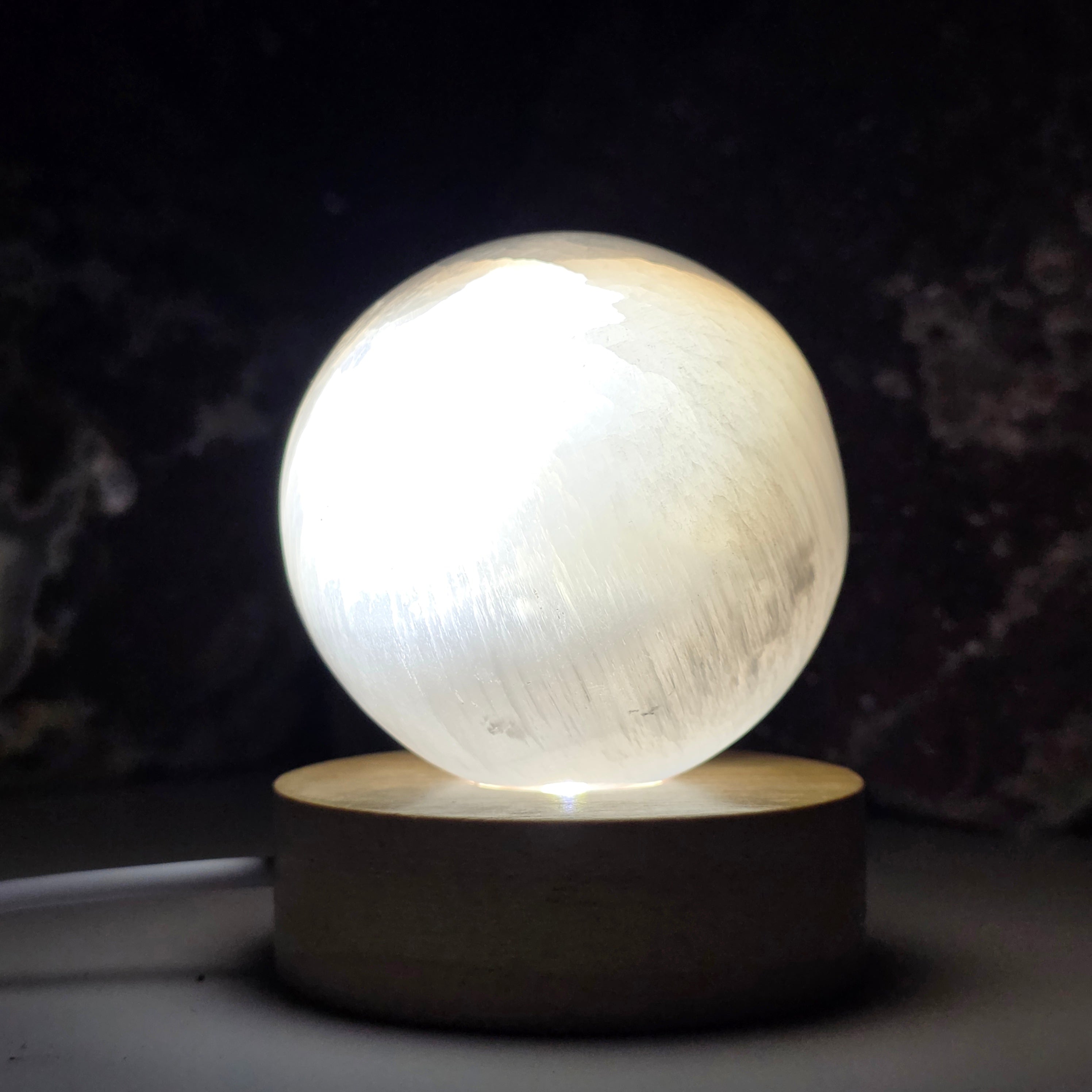 Ревюта – Дървена LED поставка за кристали | Кръгла