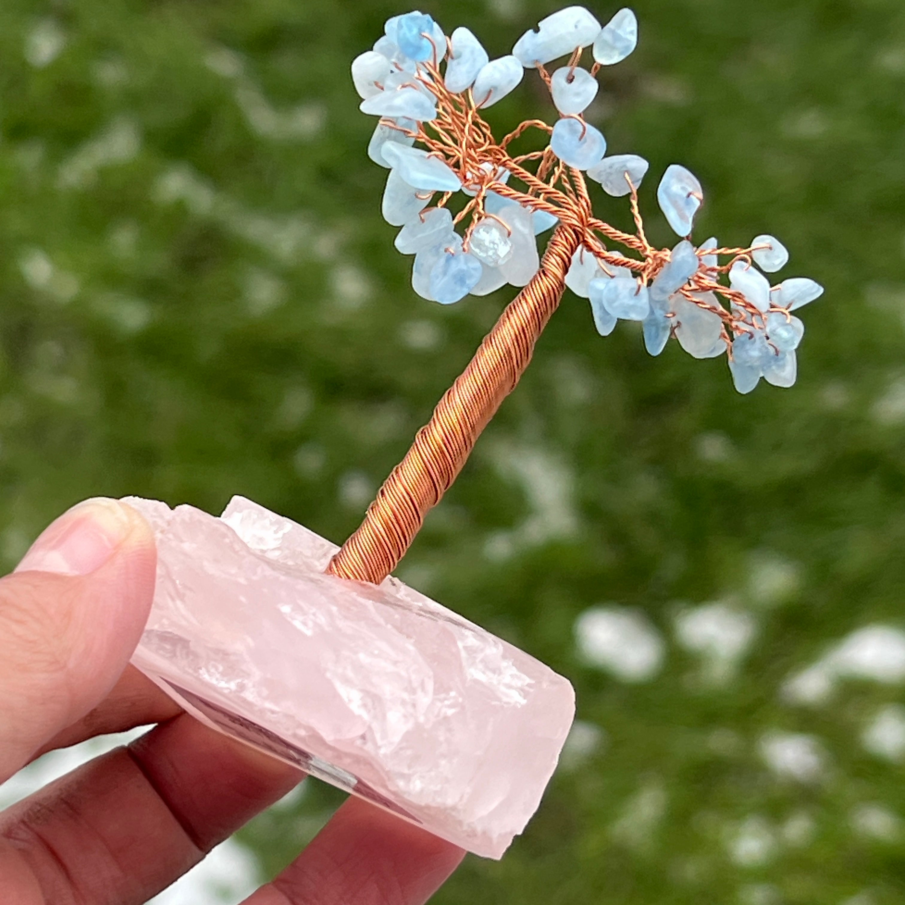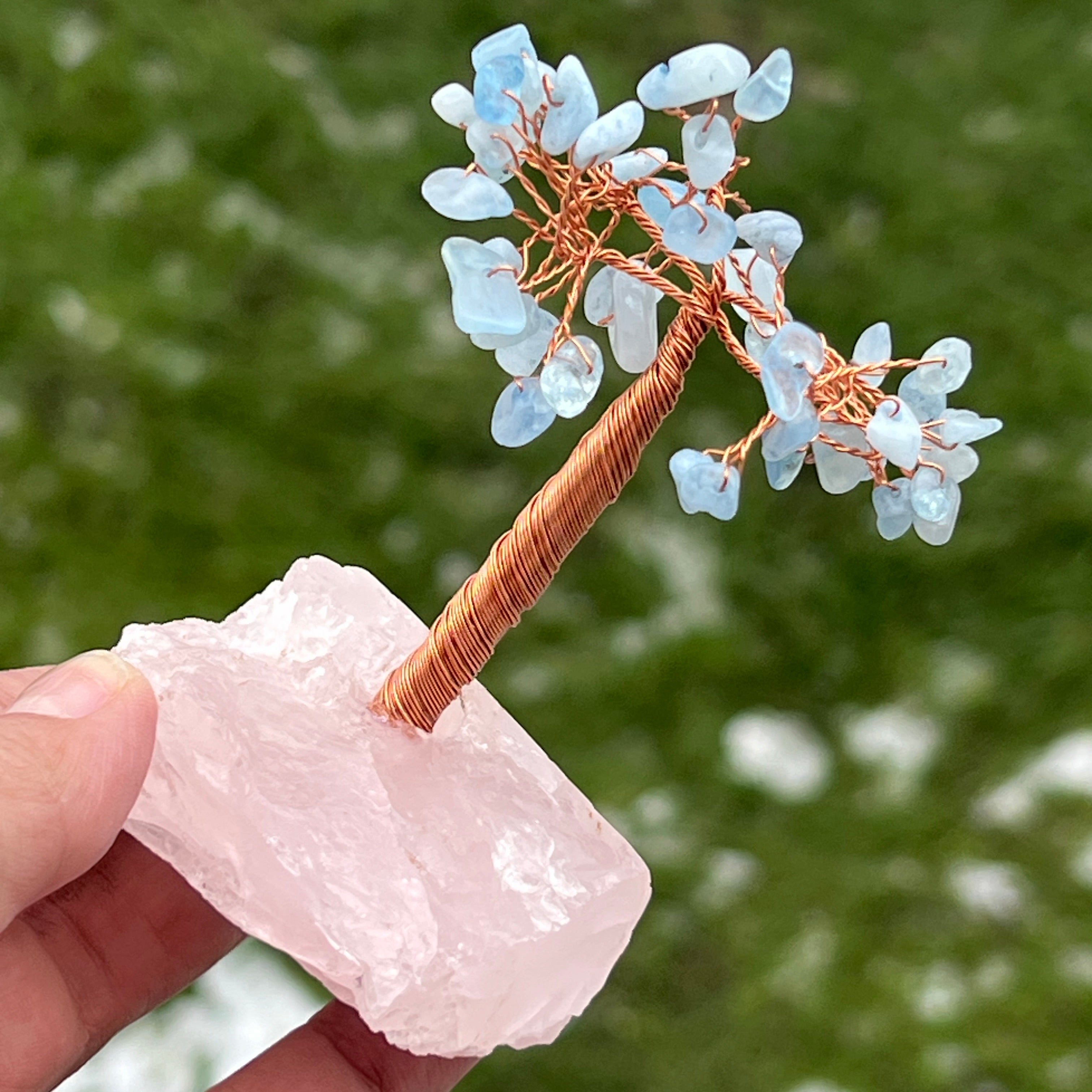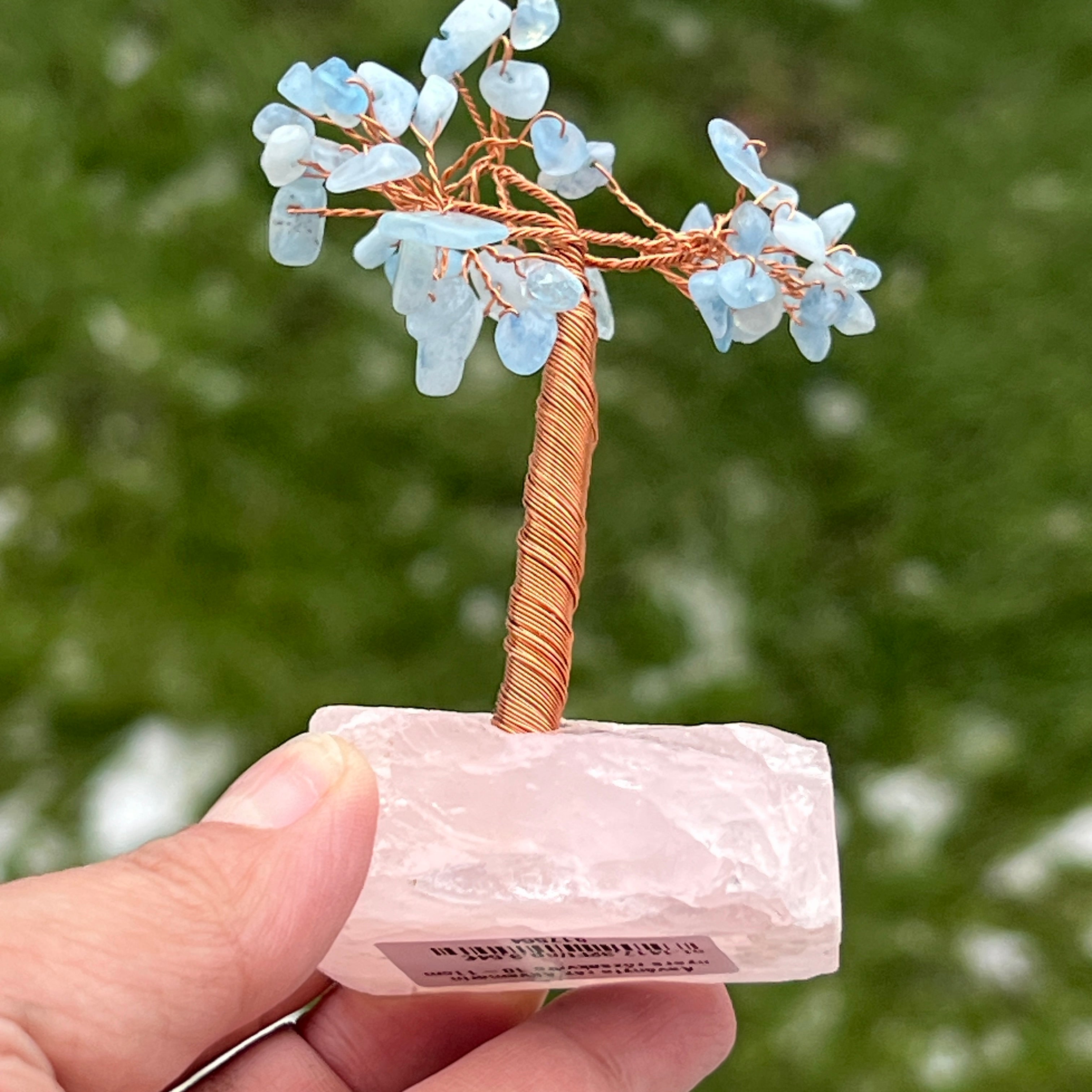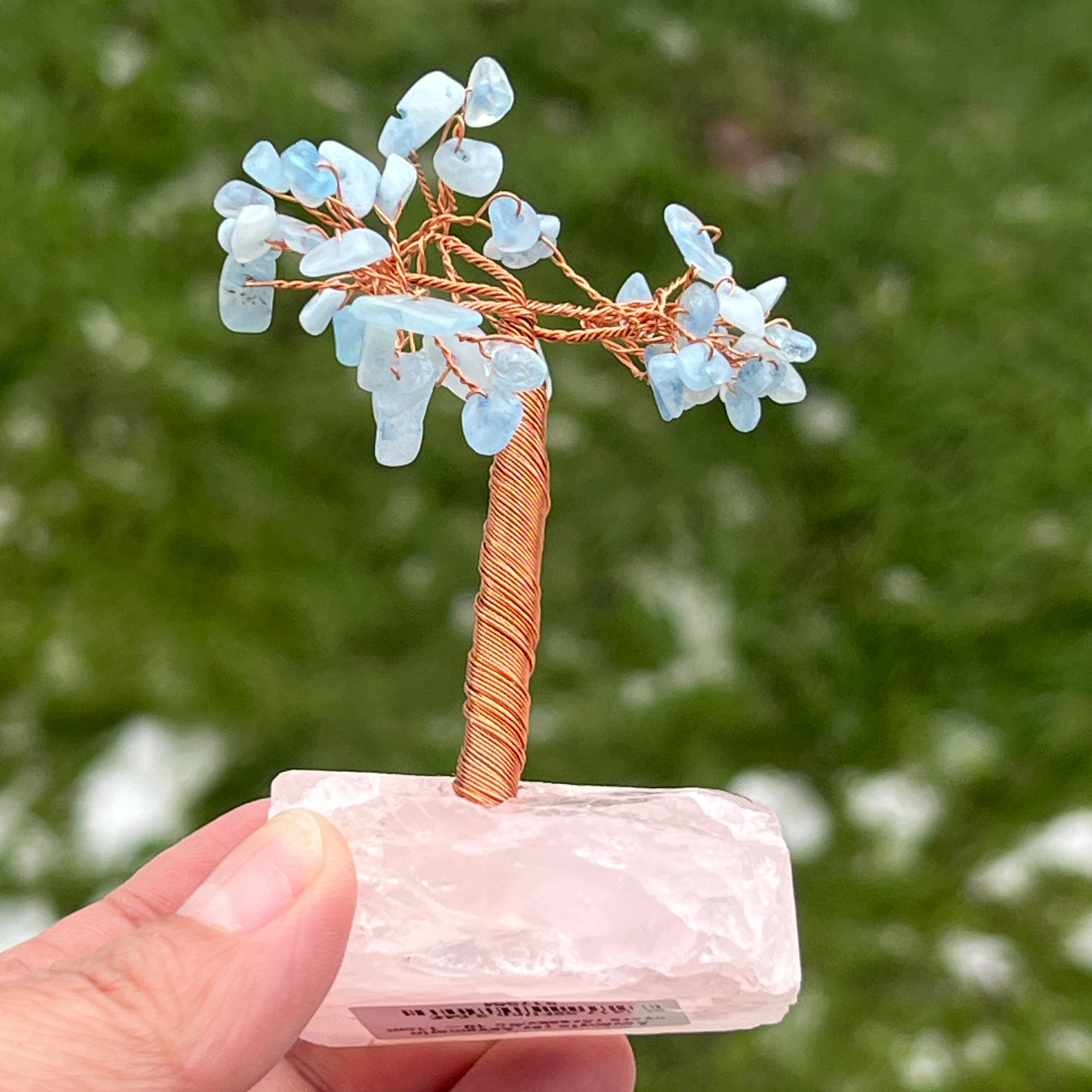 Дърво фън шуй с аквамарин, базиран на розов кварц – размер S
