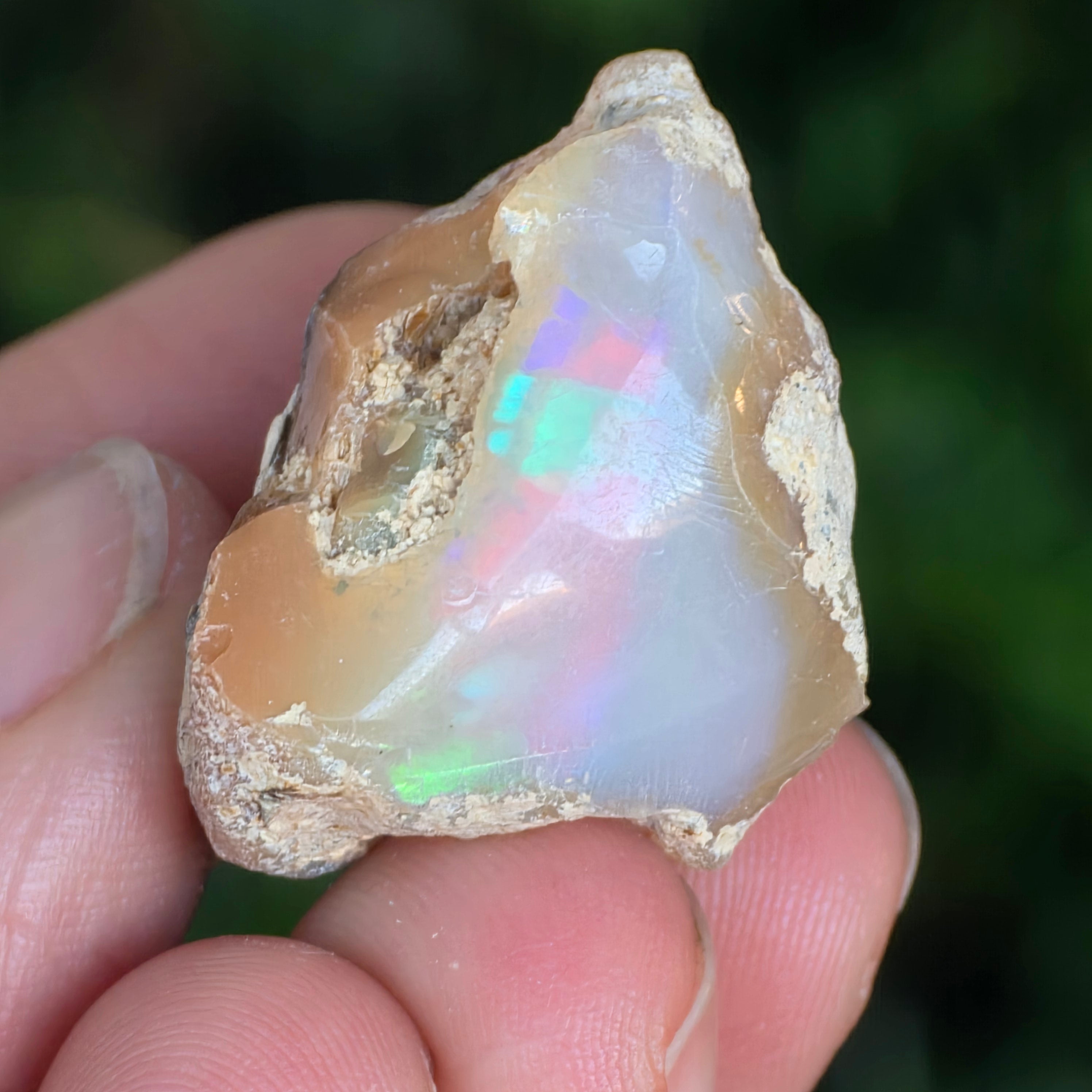 Като колекционерски екземпляр, този етиопски образец се отличава с прозрачност, наситеност на цвета и впечатляваща светлинна игра — качества, които го поставят сред най-търсените разновидности на огнен опал в света.