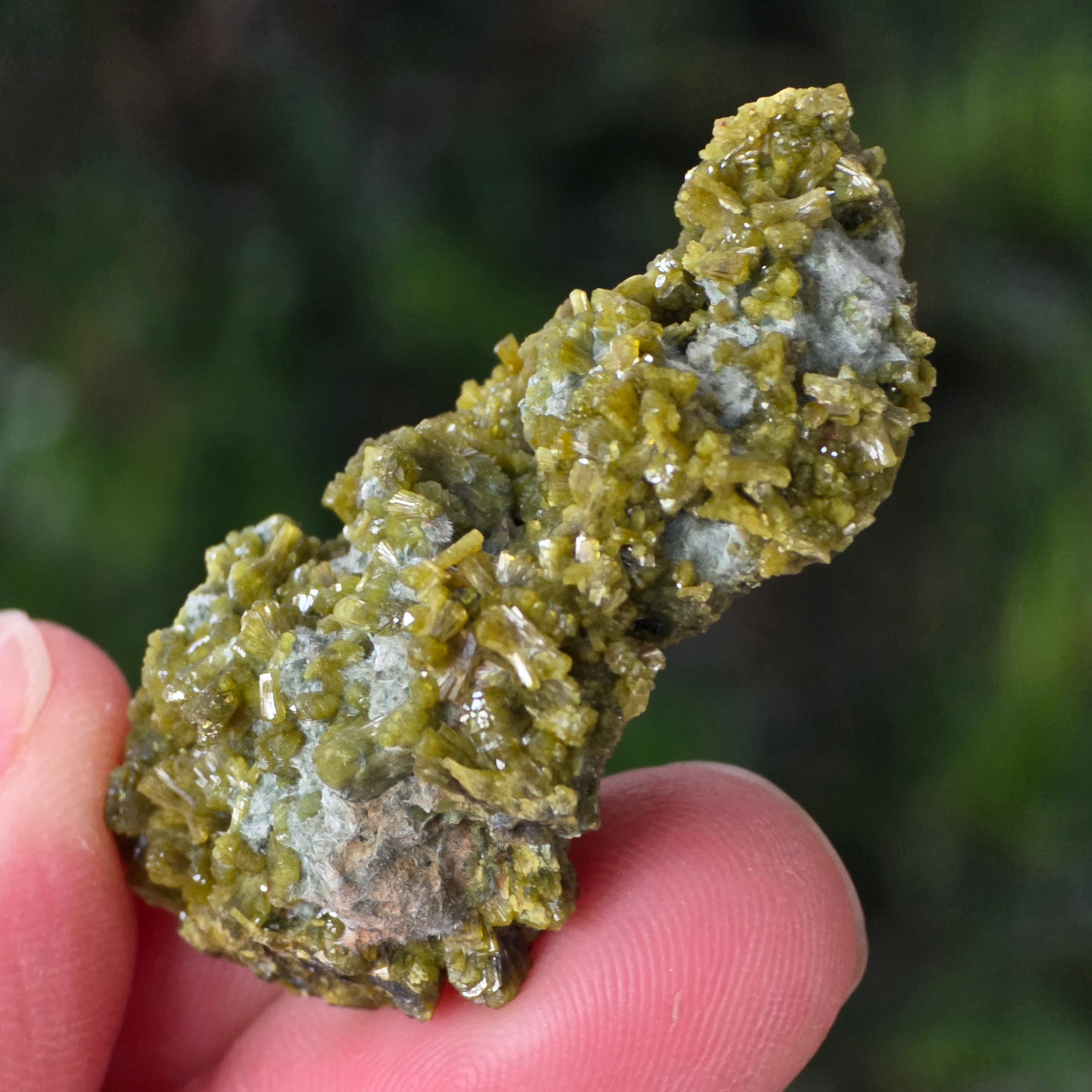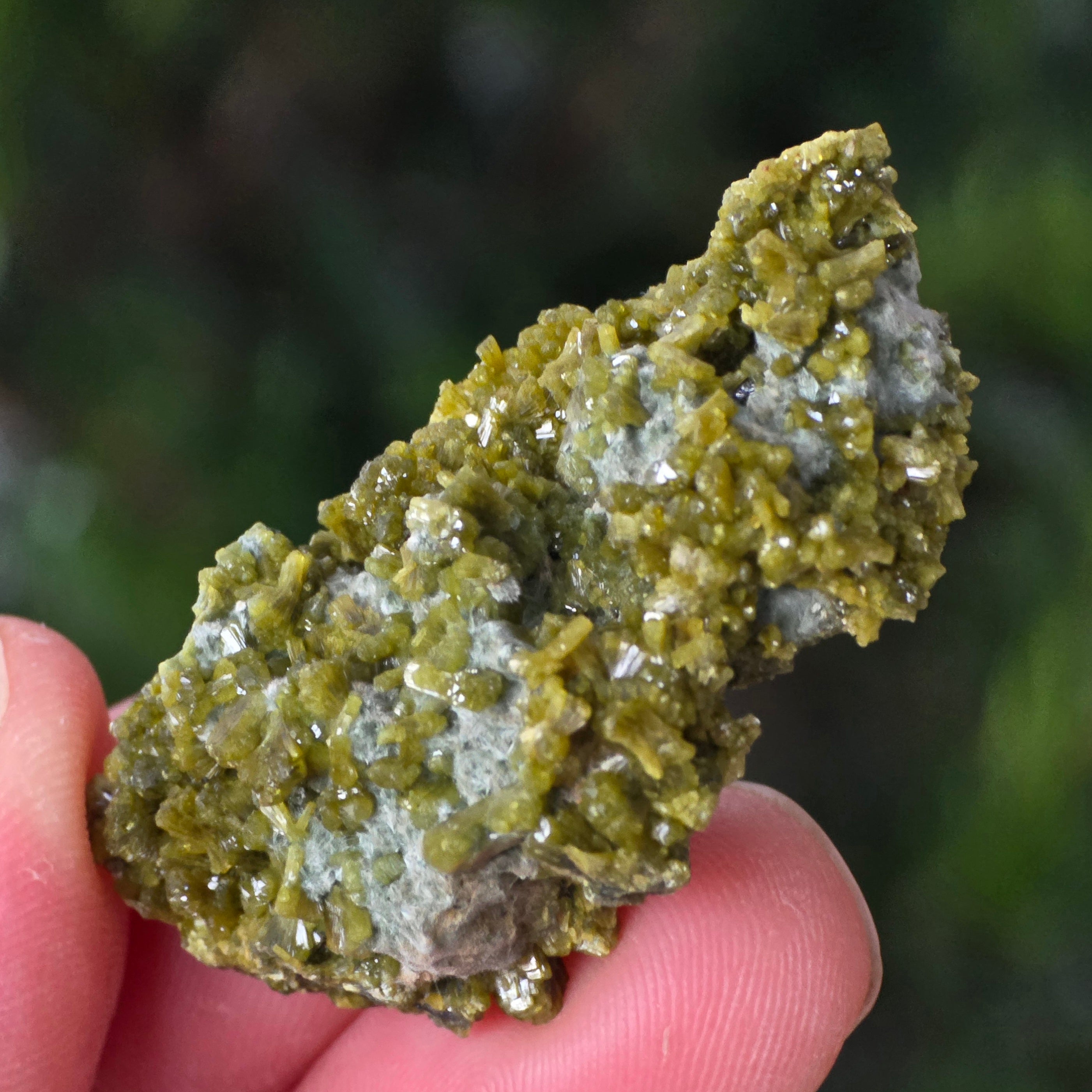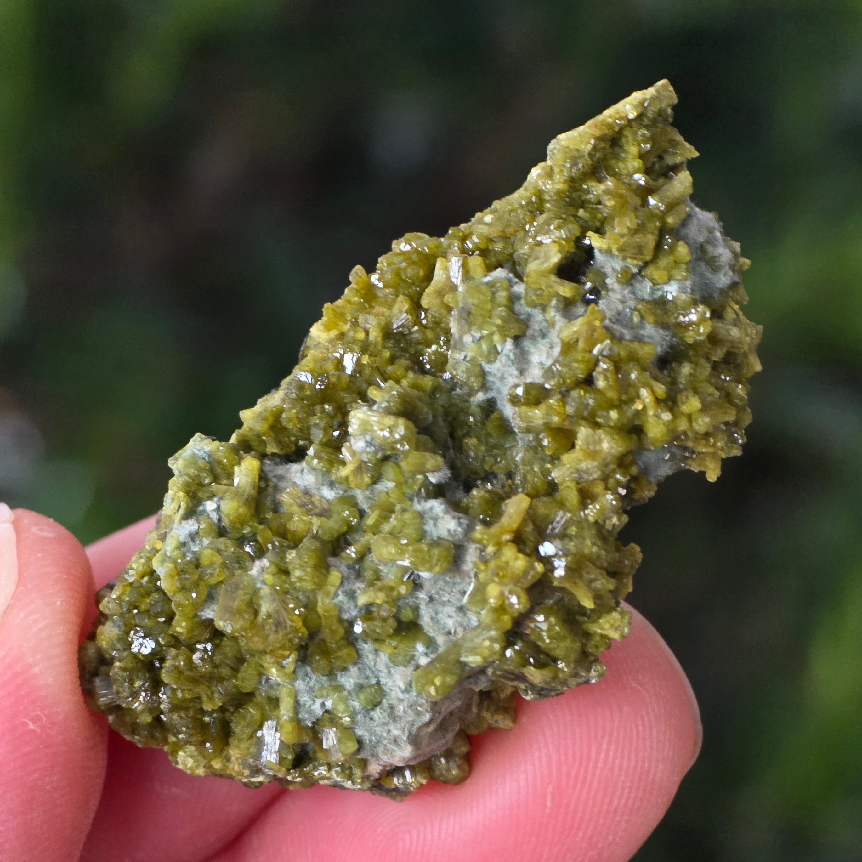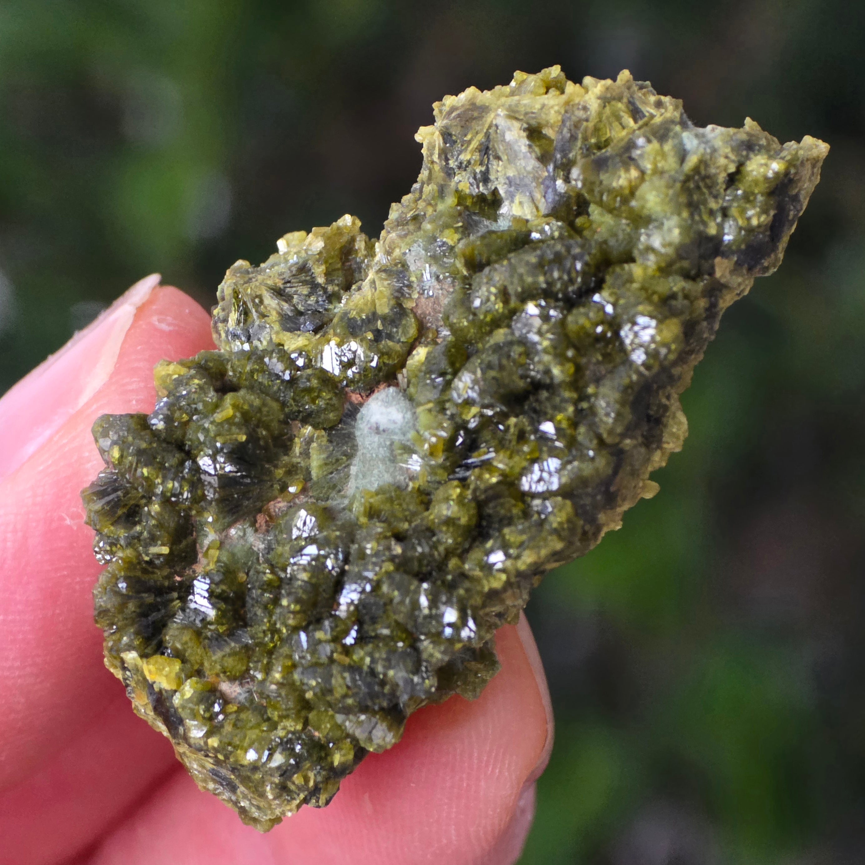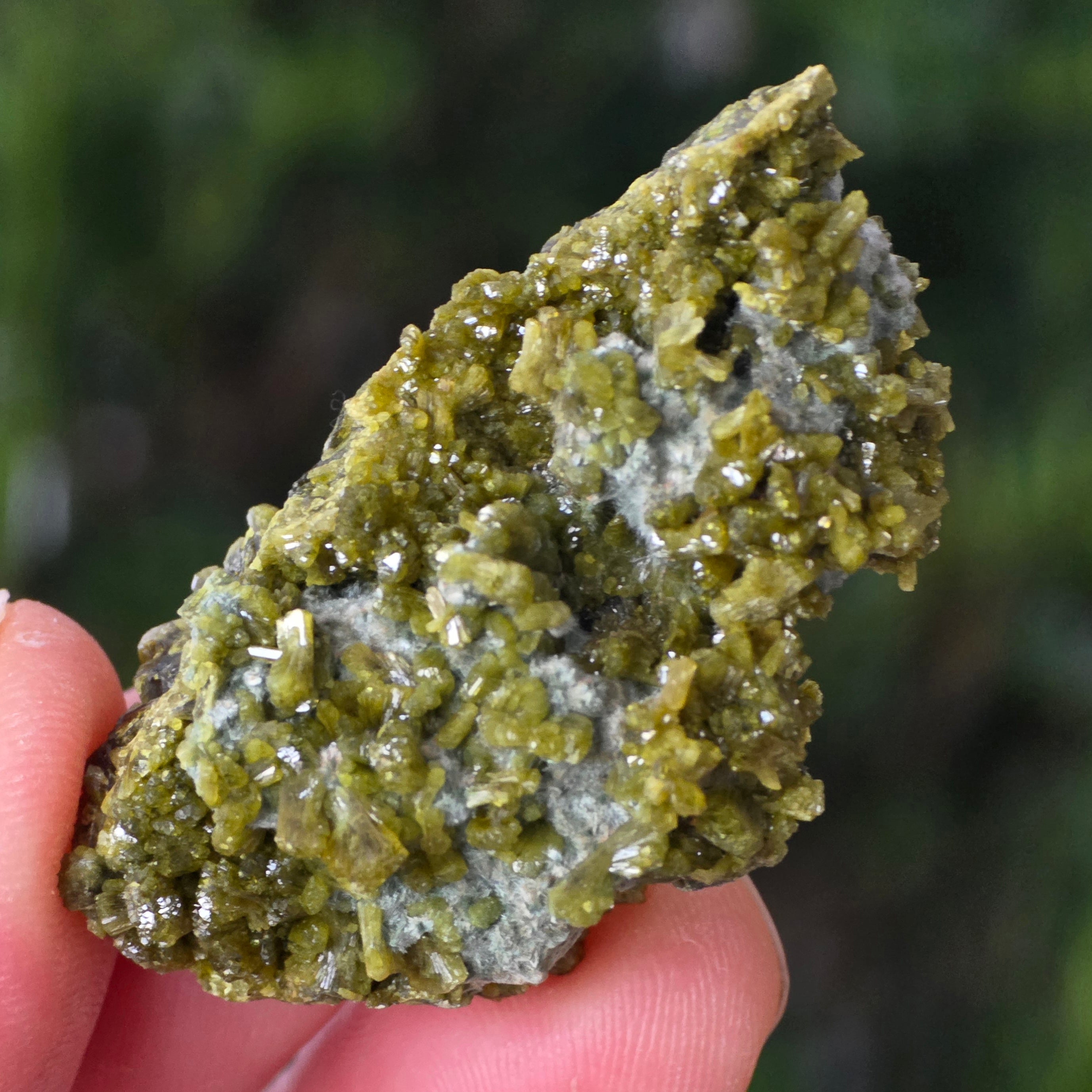 Епидотът се образува в метаморфни скали и в хидротермални кухини като резултат от бавното преобразуване на първичните минерали под налягането на Земята. Неговите призматични, блестящи кристали могат да варират от маслиново зелено до наситено зелено или дори кафеникаво-зелено, в зависимост от съдържанието на желязо.