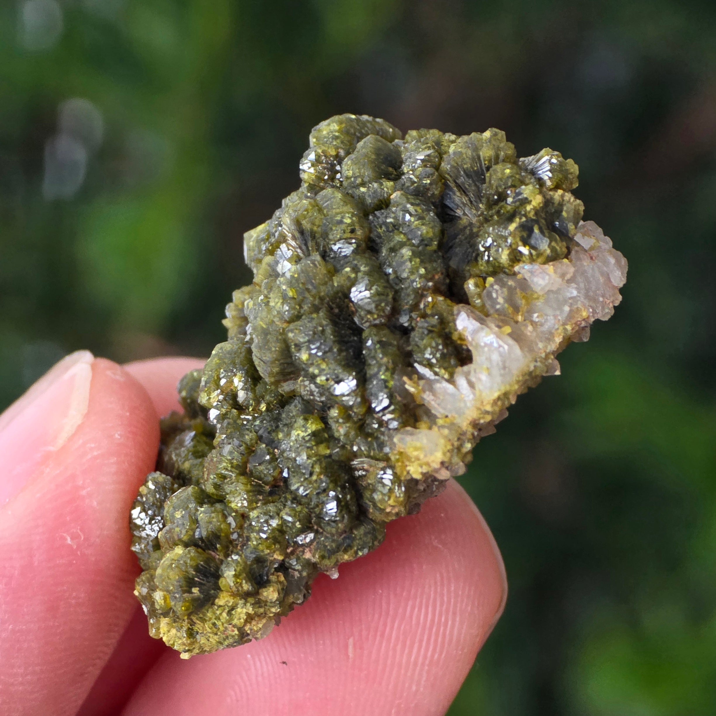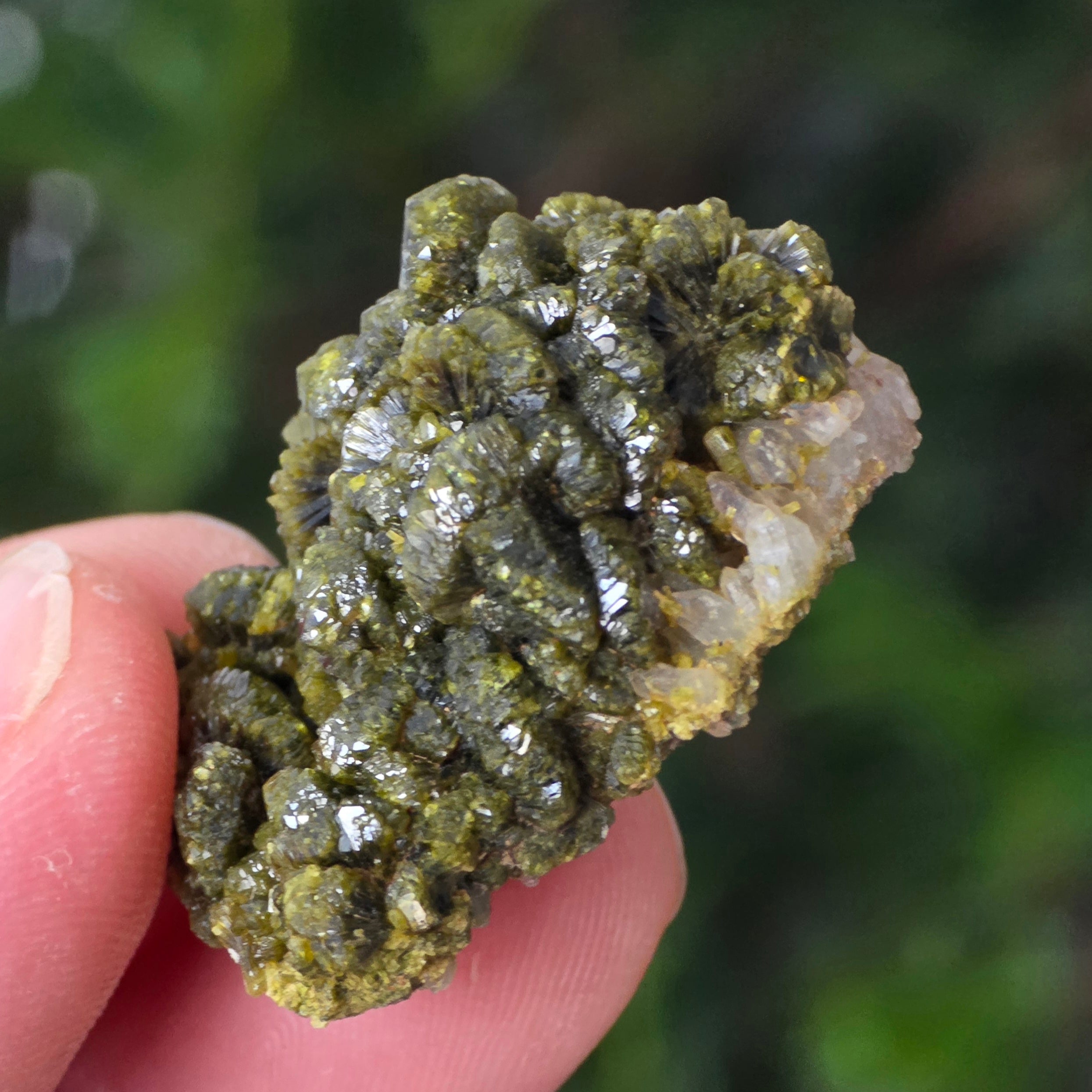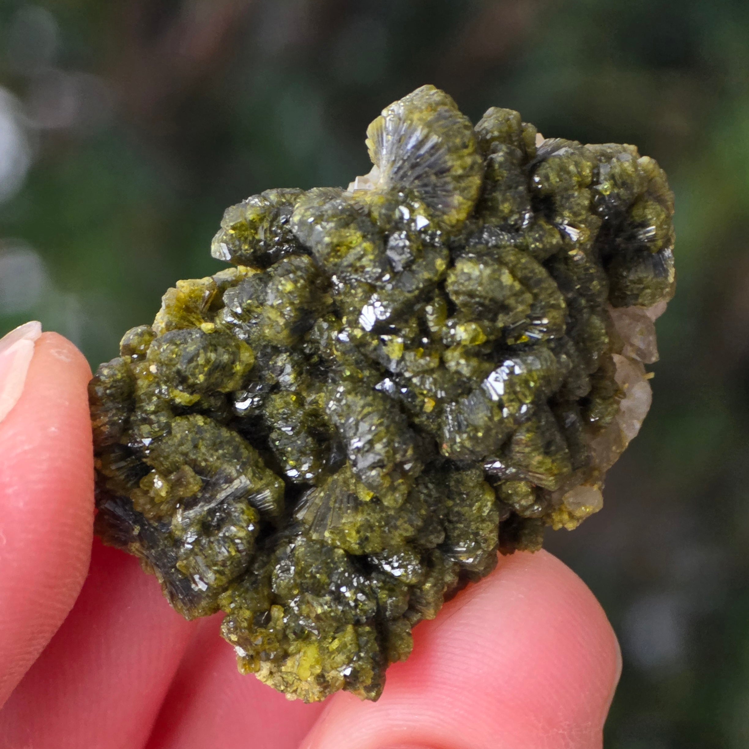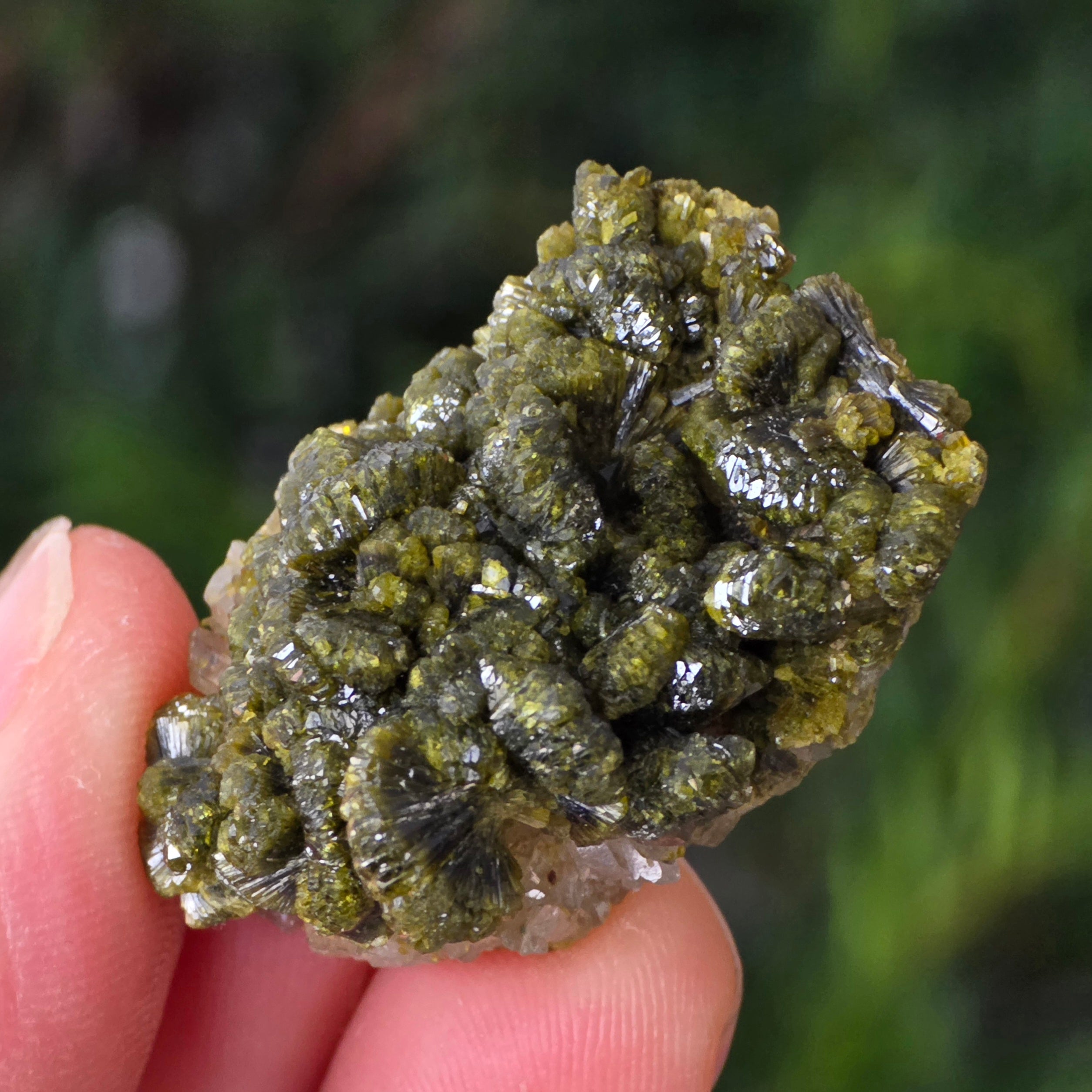 Епидотът се образува в метаморфни скали и в хидротермални кухини, като резултат от бавното превръщане на първичните минерали под натиска на Земята. Неговите призматични, блестящи кристали могат да варират от маслиново зелено до наситено зелено или дори кафеникаво-зелено, в зависимост от съдържанието на желязо.