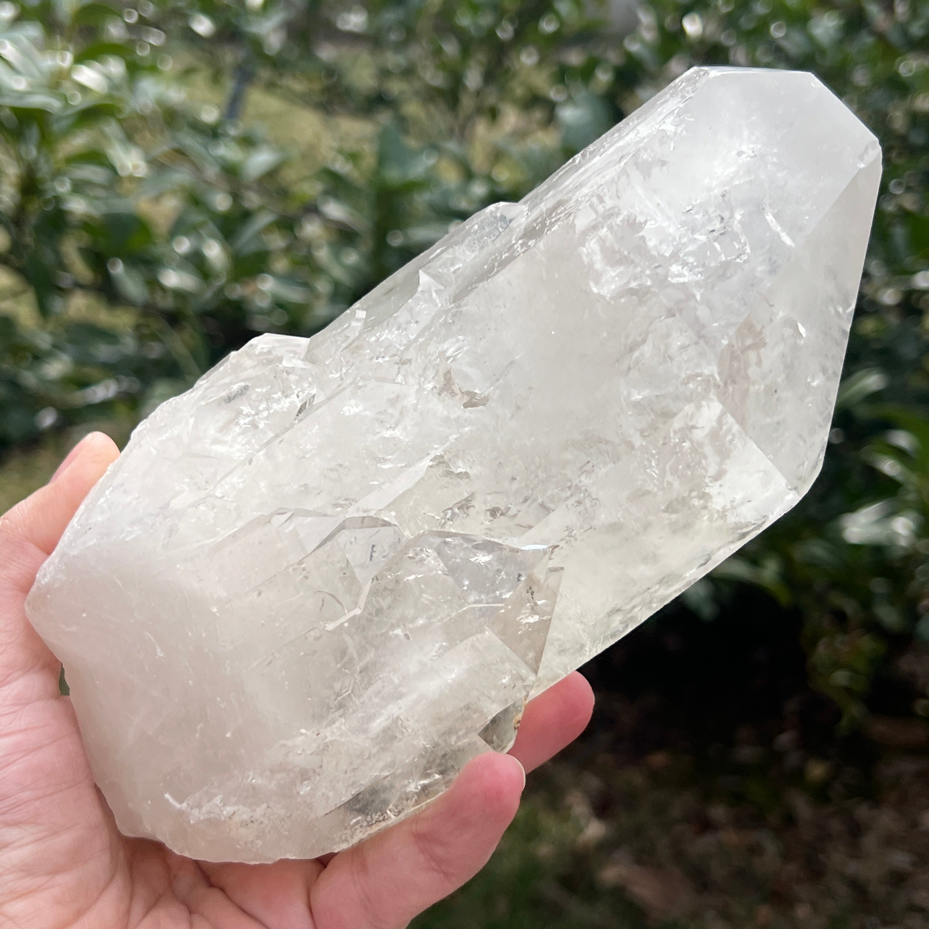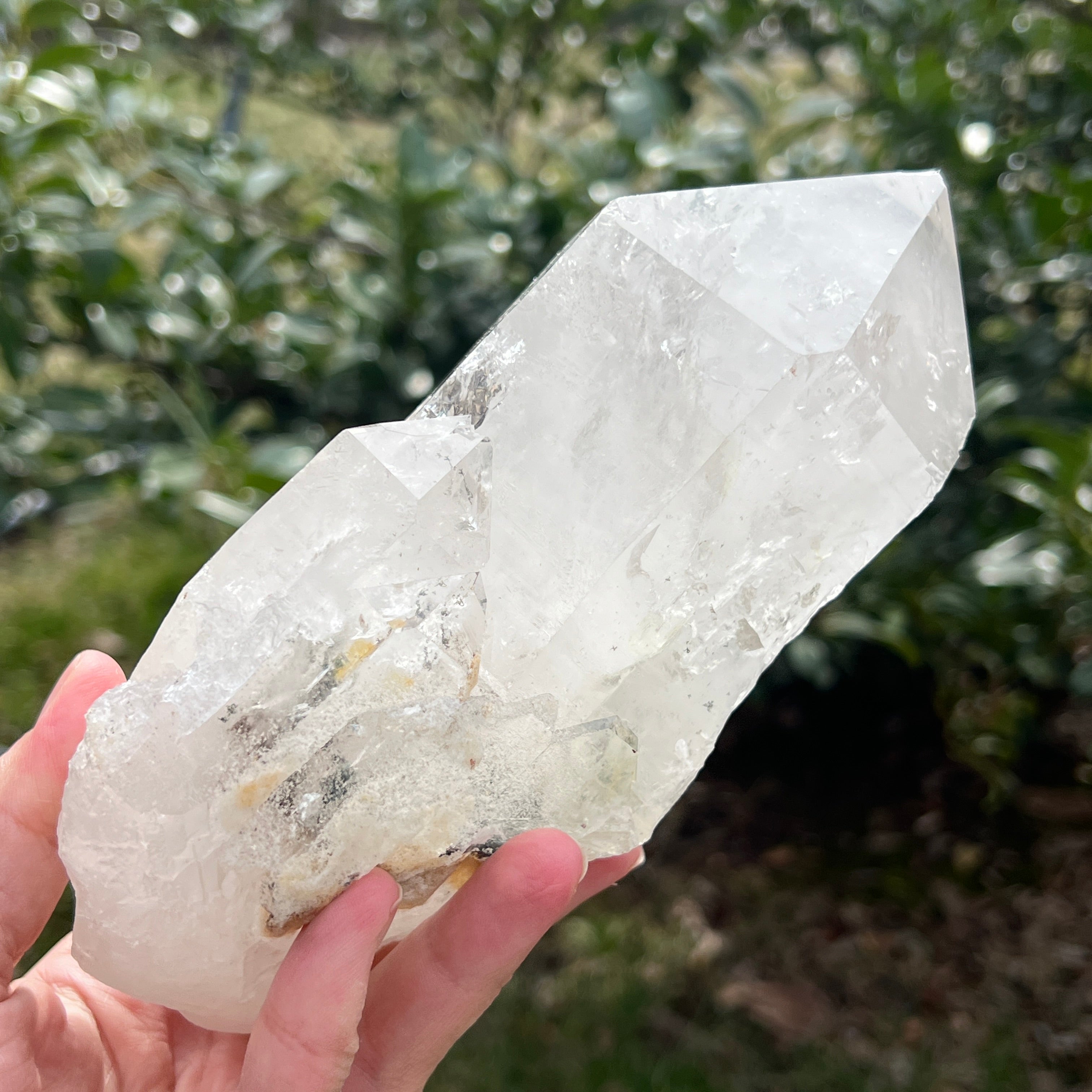 Естествен безцветен кварцов връх, мина цвете L1