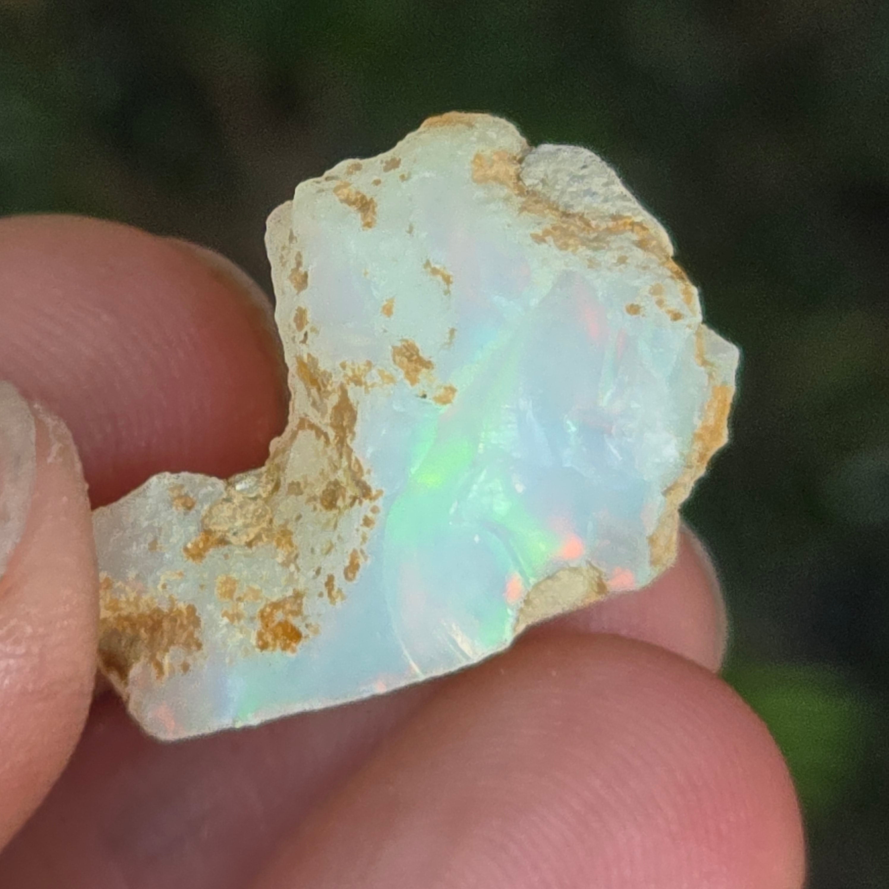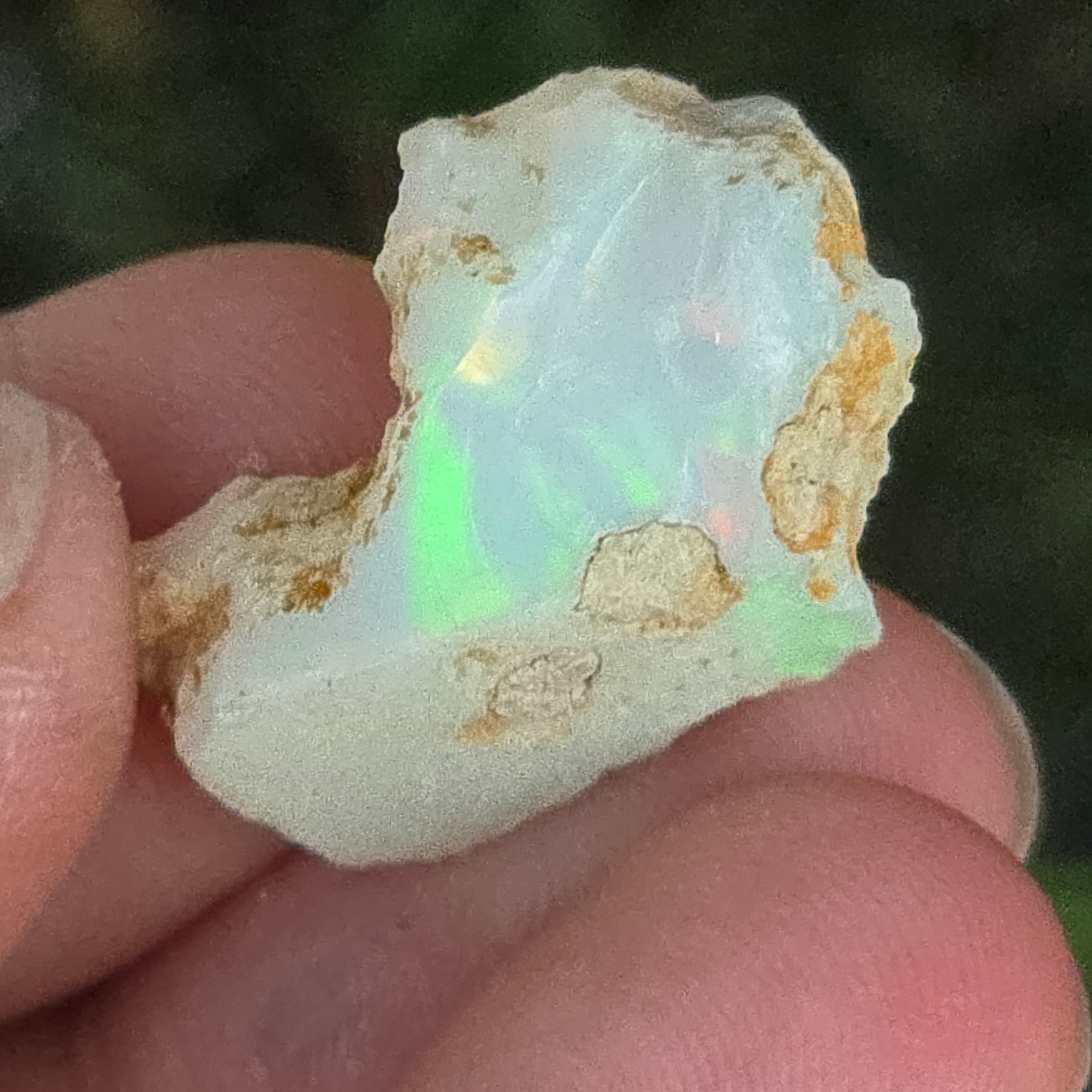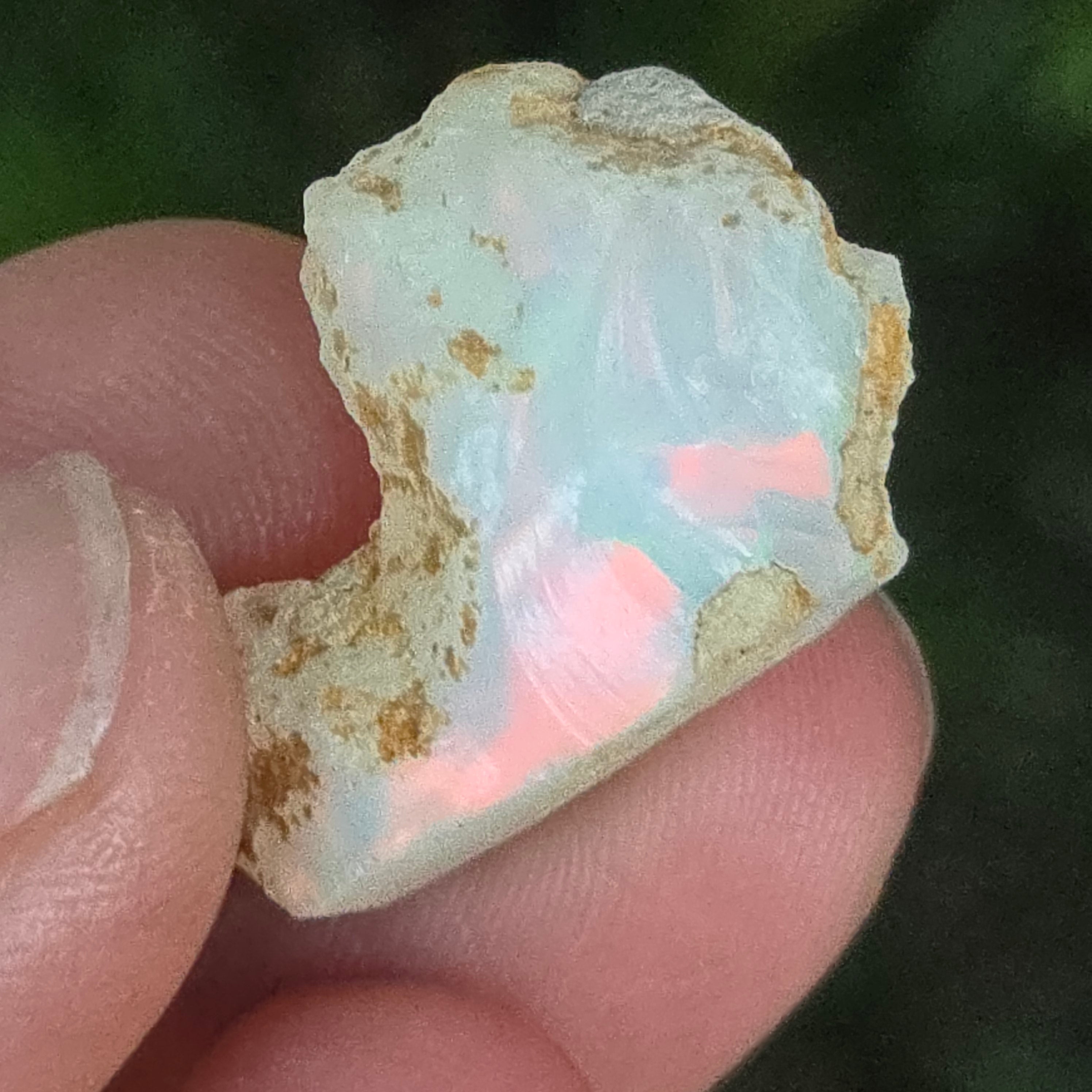 Когато се гледа на светлина, всяко отражение се превръща в танц на цветове — яркочервено, електрическо зелено, разтопено златно — естествено проявление на оптичния феномен, наречен игра на цветове, характерен само за най-ценните опали.