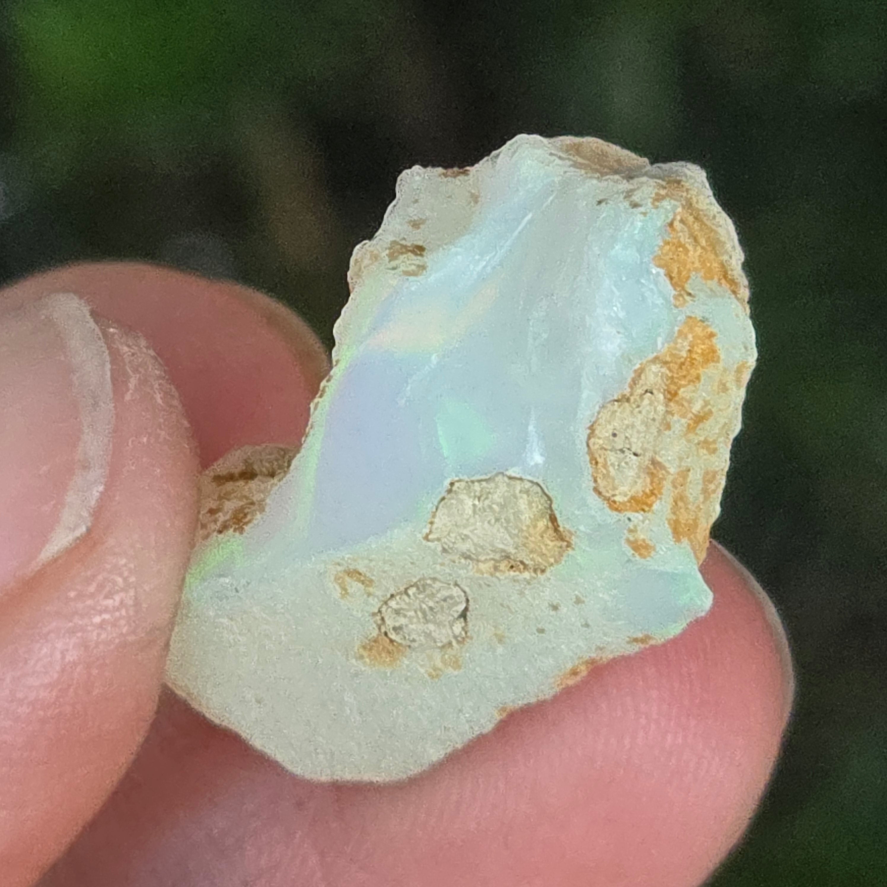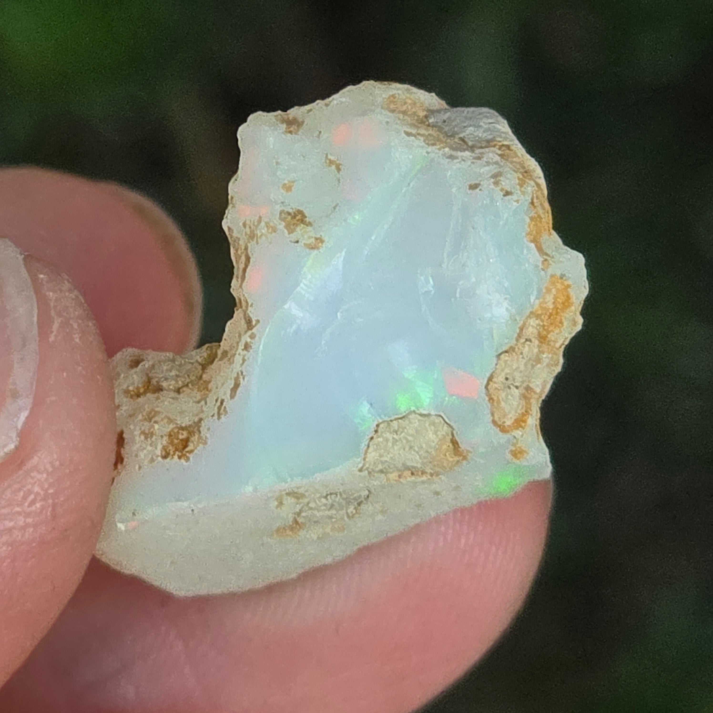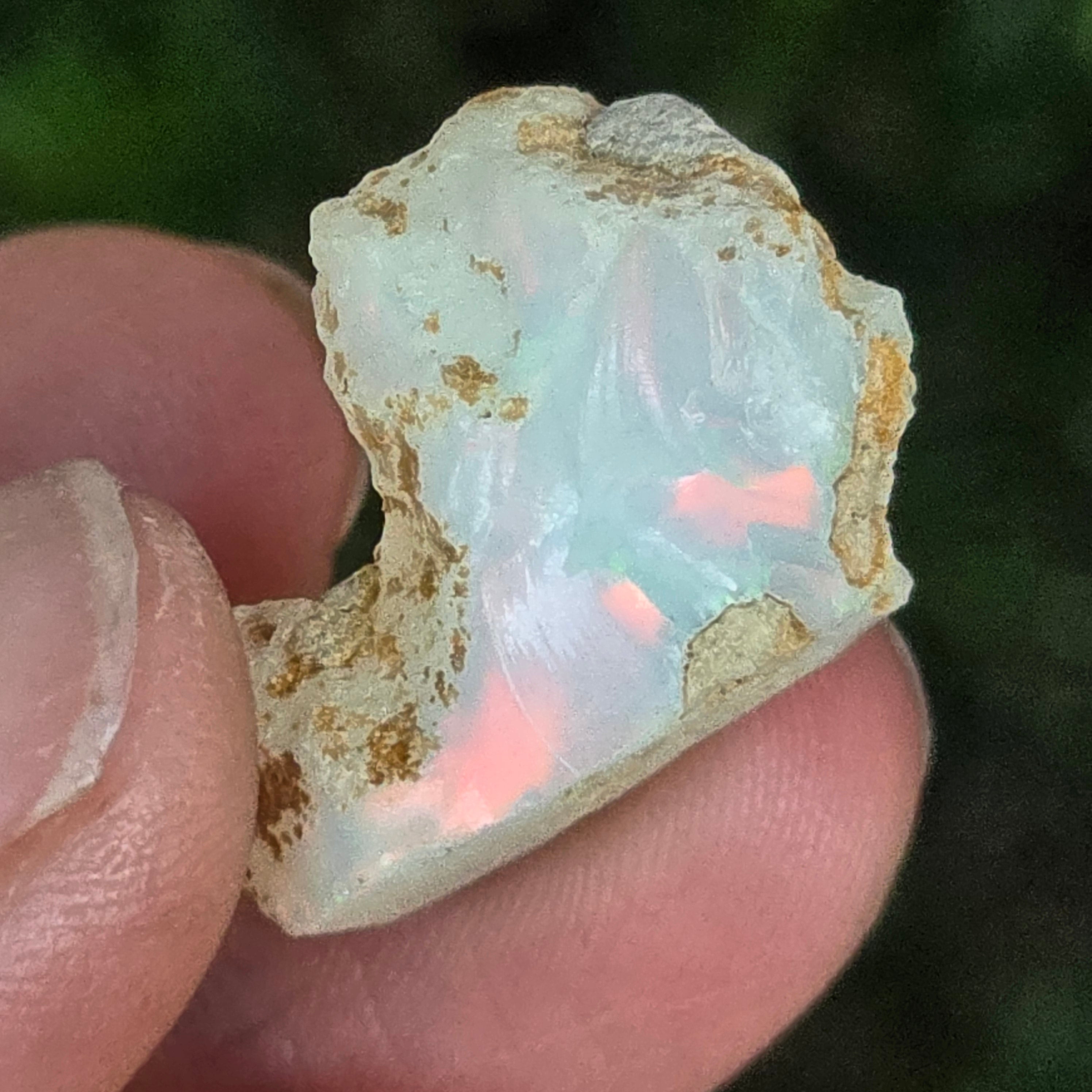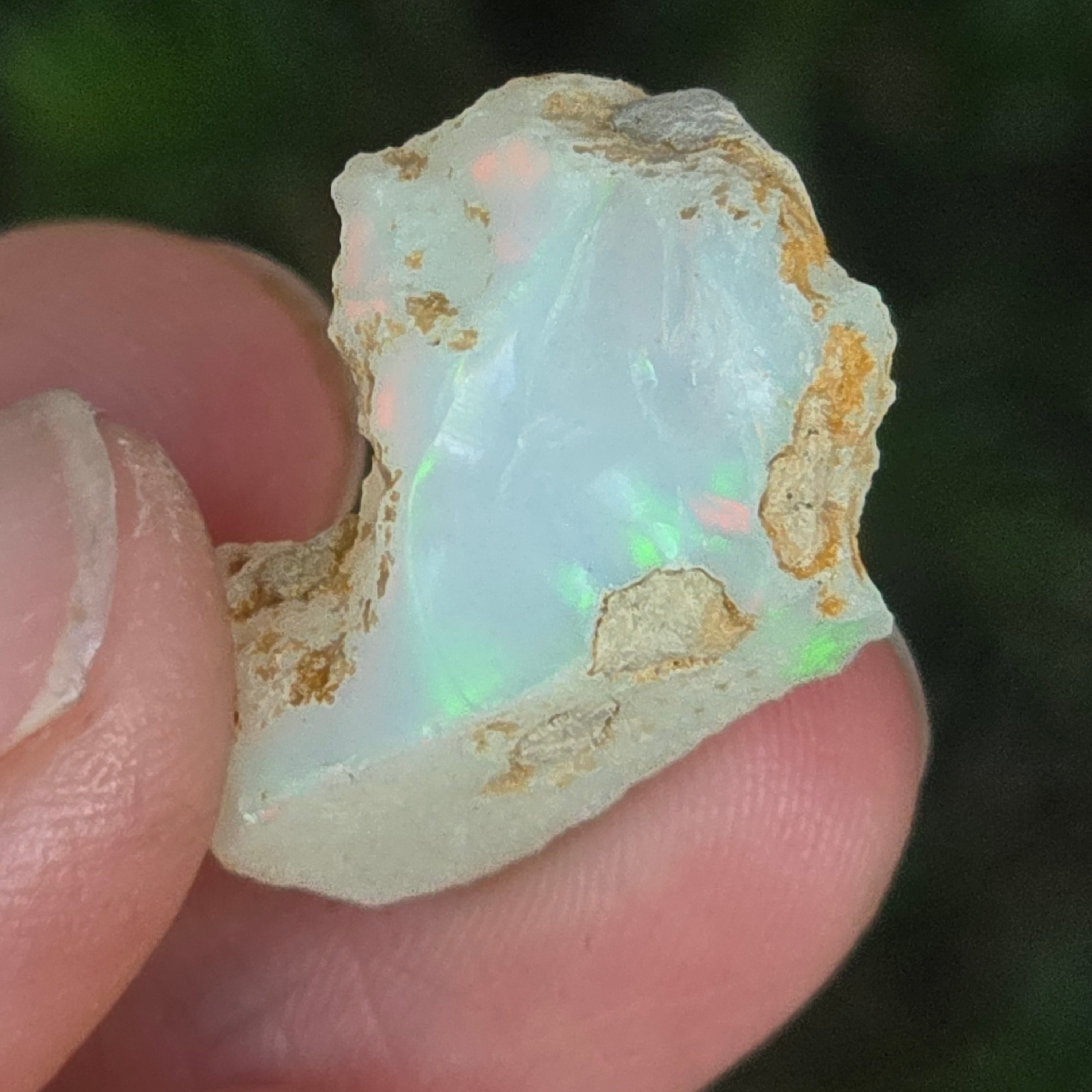 Когато се гледа на светлина, всяко отражение се превръща в танц на цветове — яркочервено, електрическо зелено, разтопено златно — естествено проявление на оптичния феномен, наречен игра на цветове, характерен само за най-ценните опали.