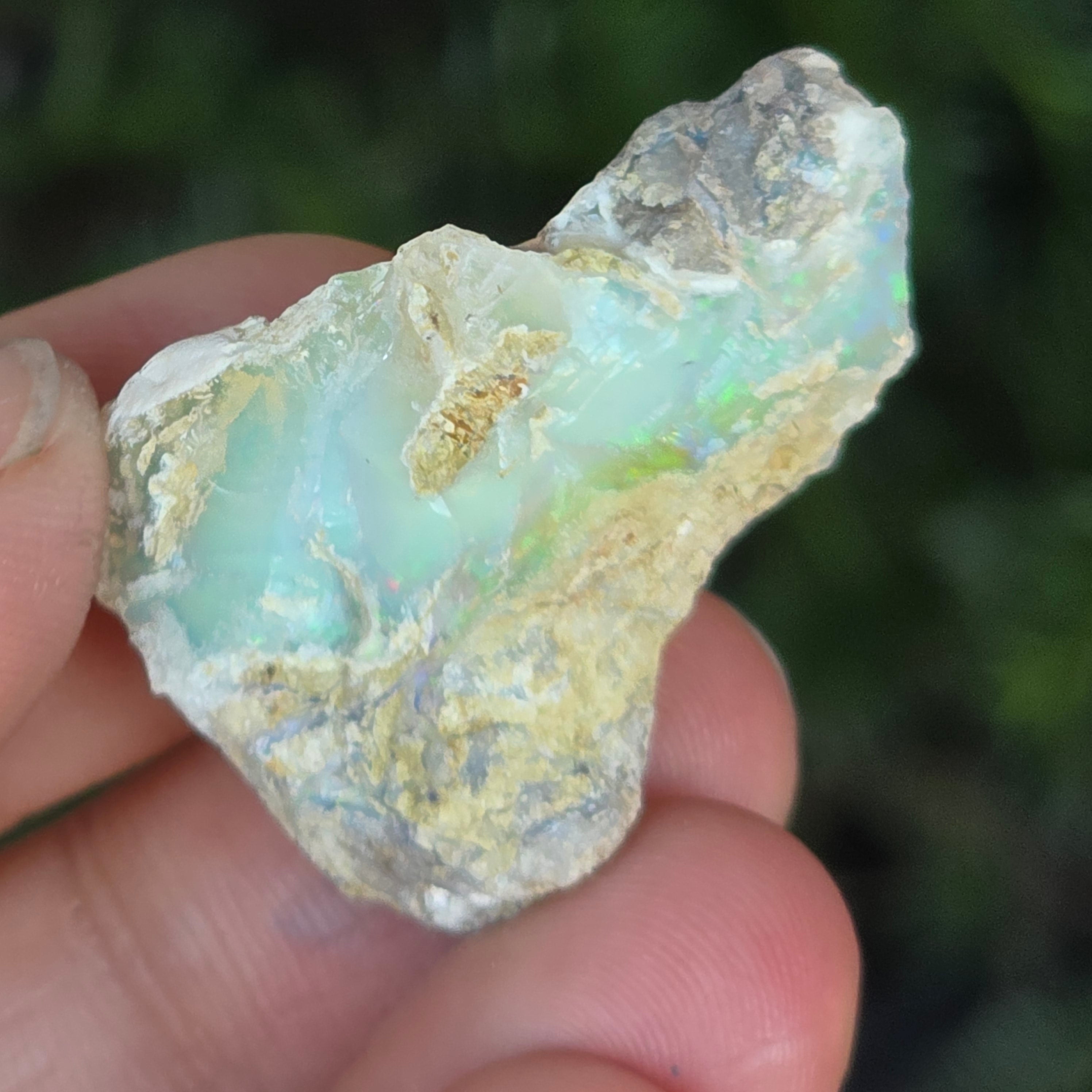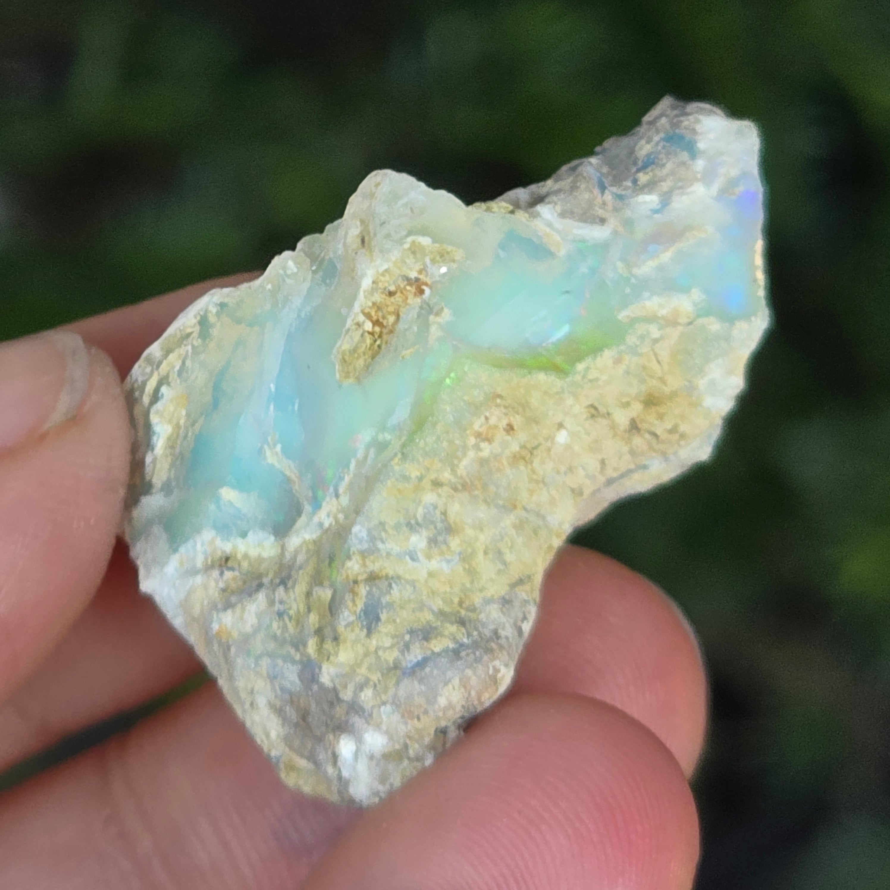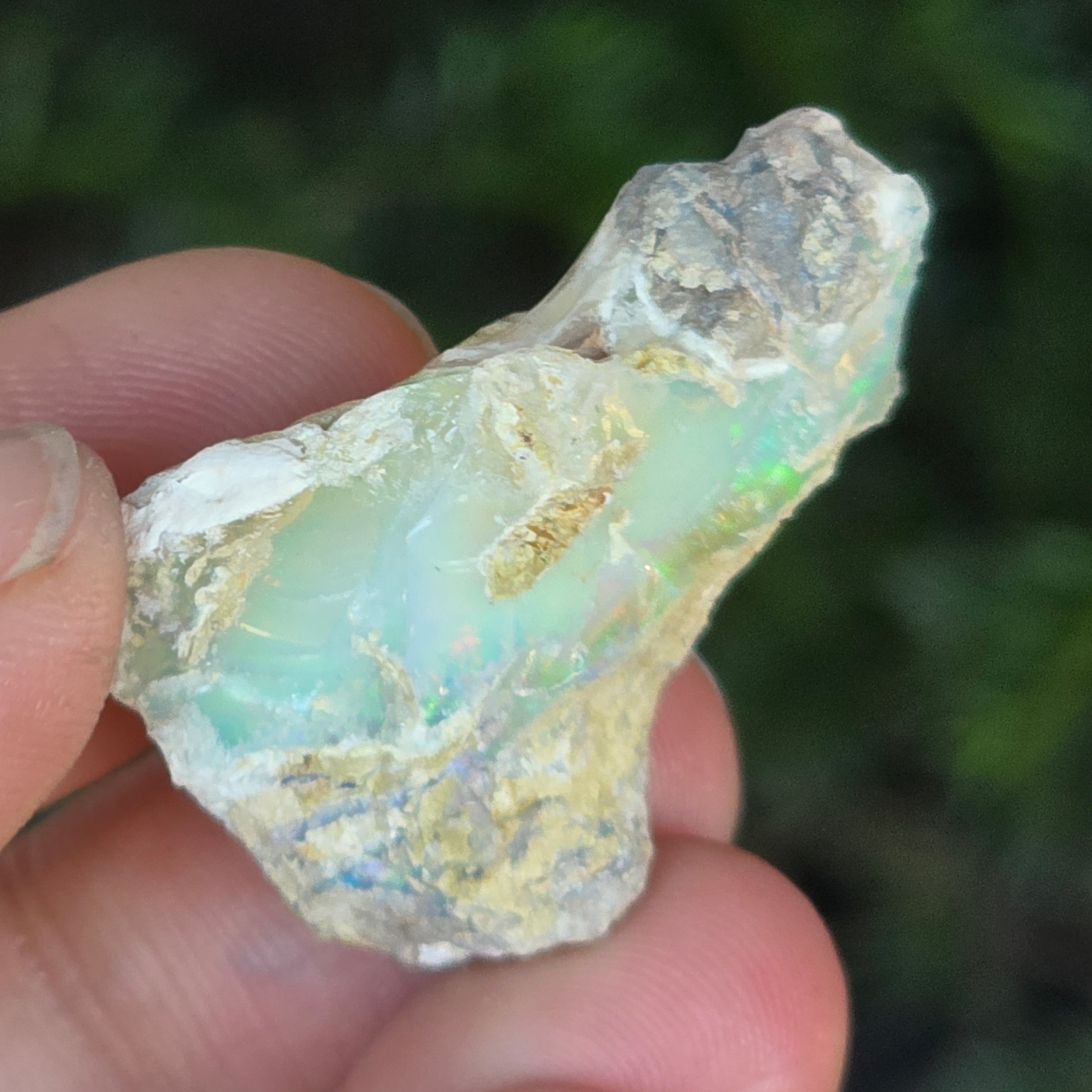 Когато се гледа на светлина, всяко отражение се превръща в танц на цветове — яркочервено, електрическо зелено, разтопено златно — естествено проявление на оптичния феномен, наречен игра на цветове, характерен само за най-ценните опали.
