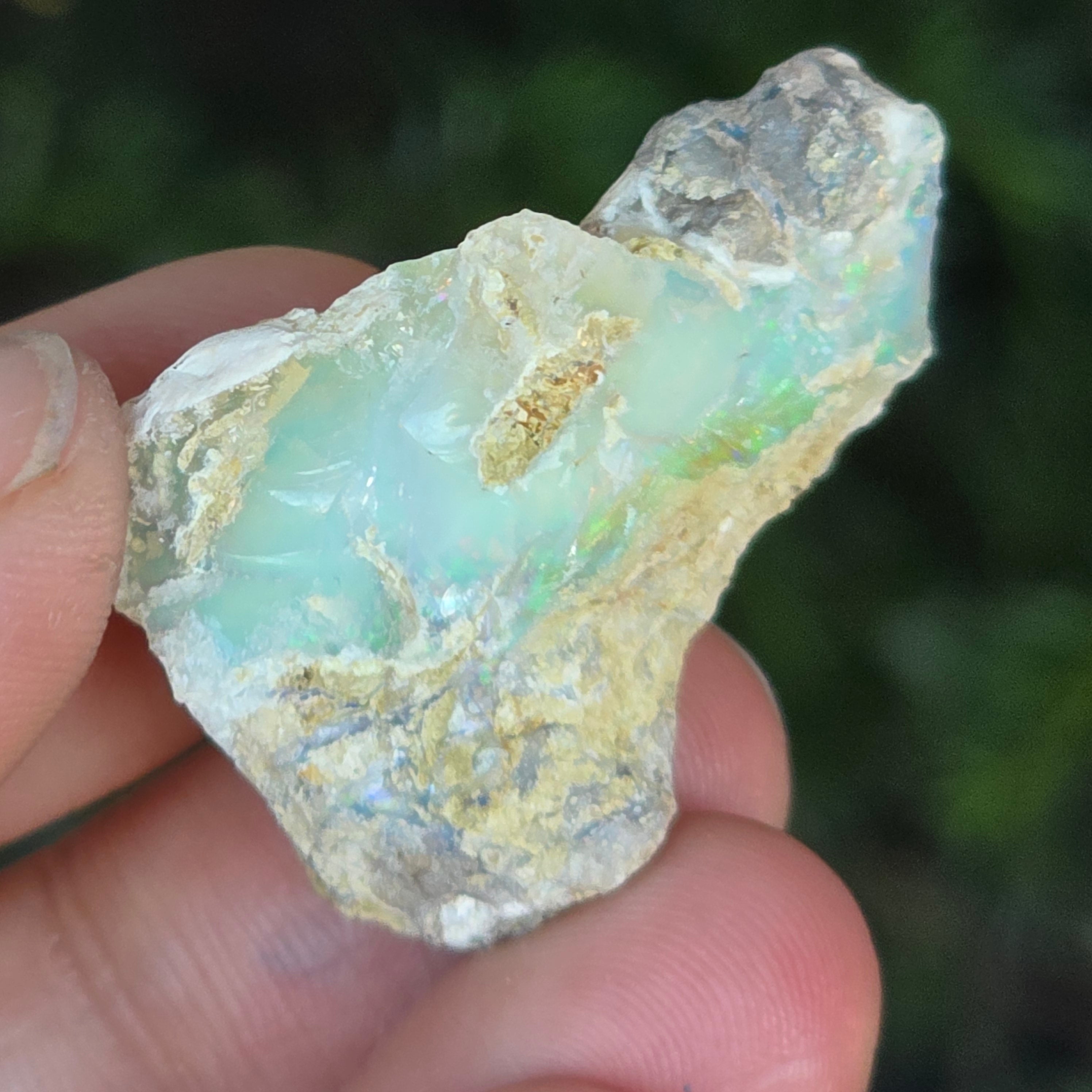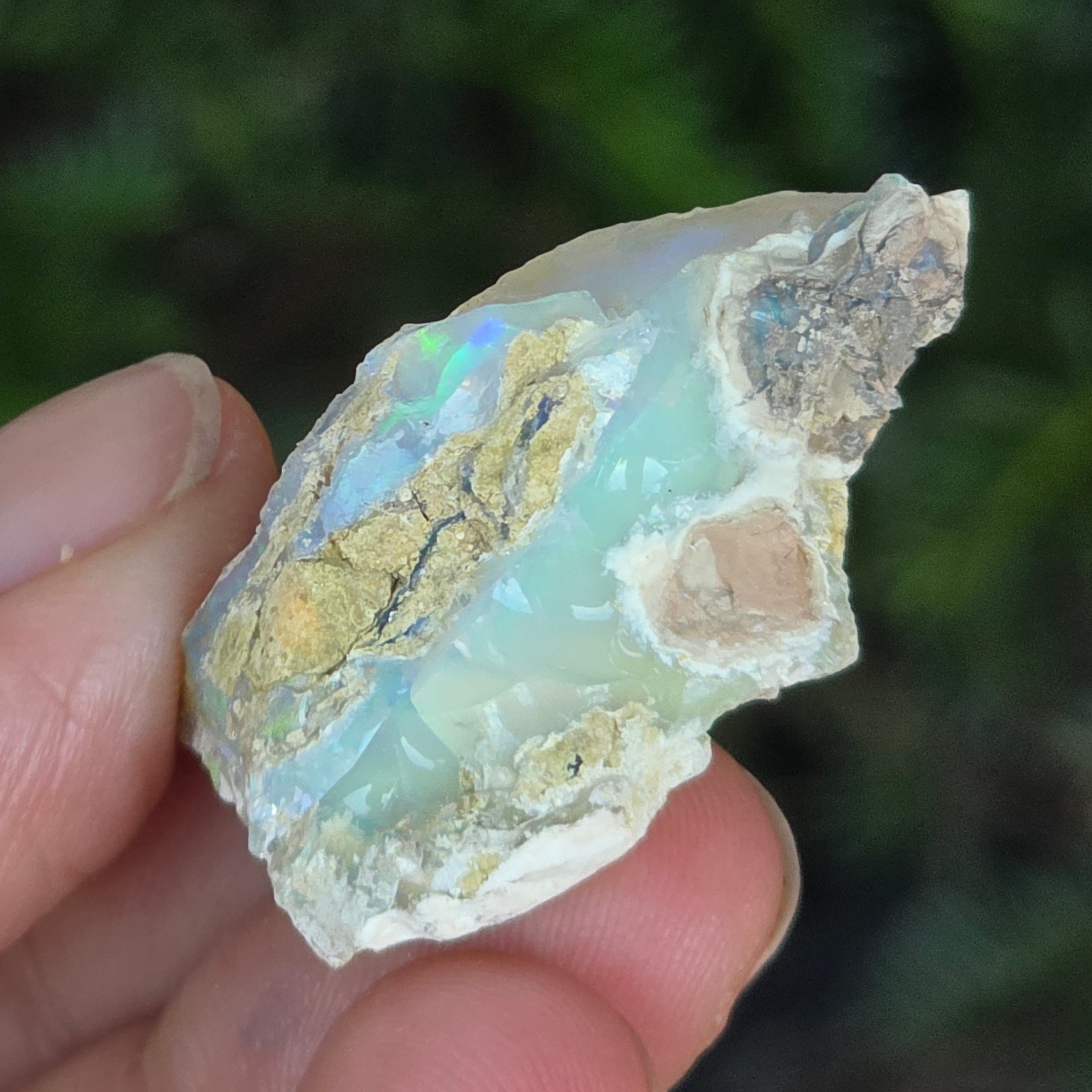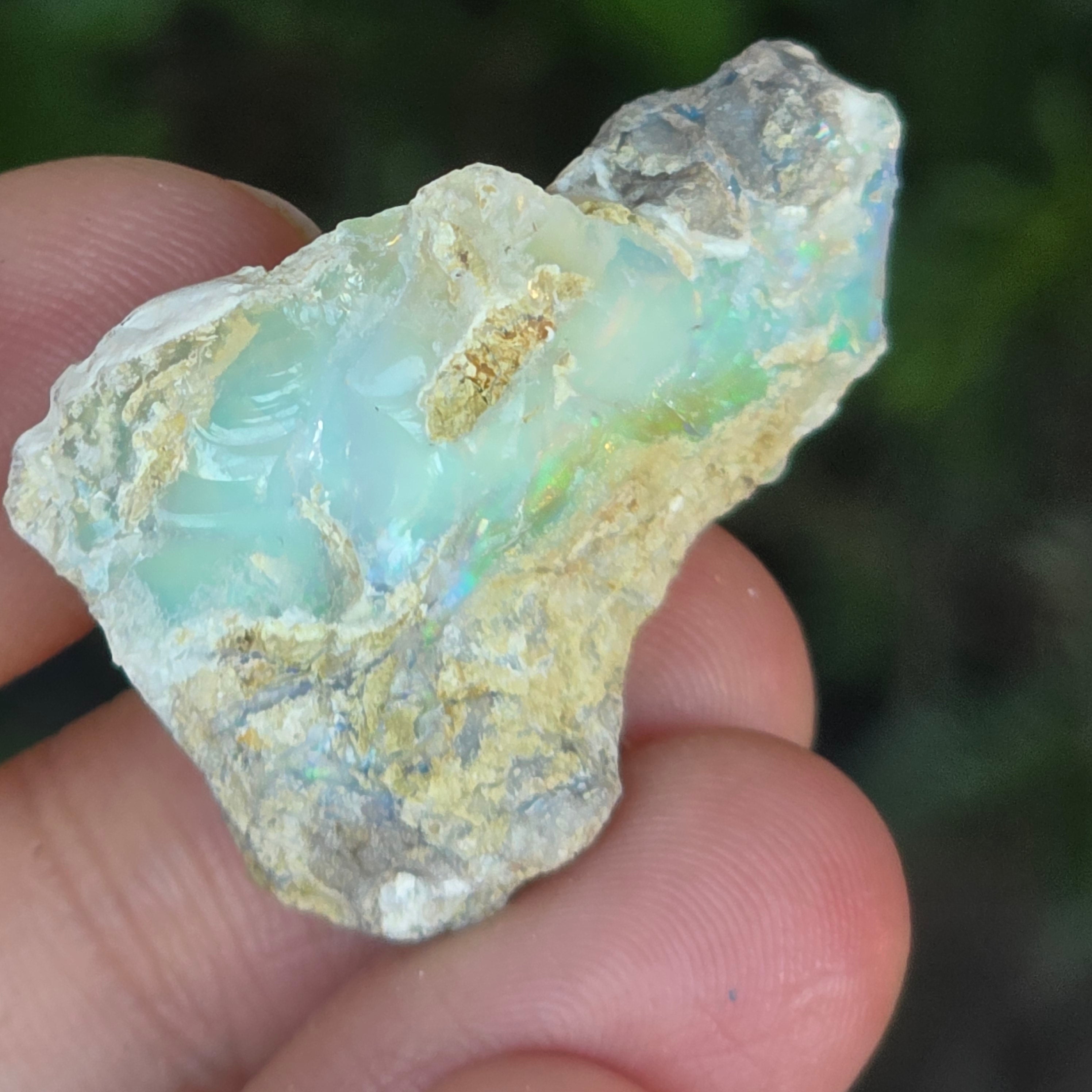 Когато се гледа на светлина, всяко отражение се превръща в танц на цветове — яркочервено, електрическо зелено, разтопено златно — естествено проявление на оптичния феномен, наречен игра на цветове, характерен само за най-ценните опали.