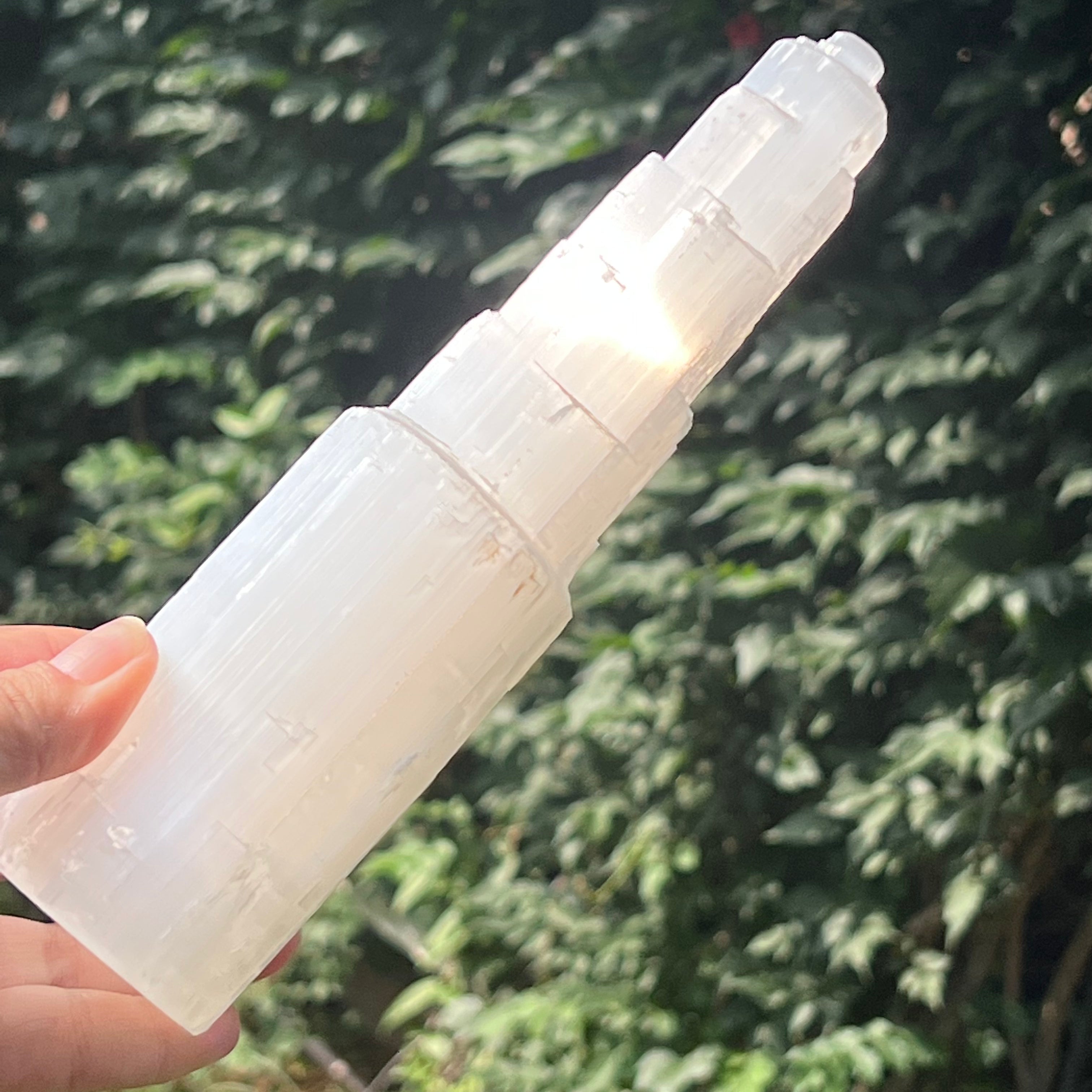 Селенитът често се използва като поддържащ кристал в духовни практики, помагайки за отваряне и активиране на 6-та и 7-ма чакри, които са свързани с интуиция, ясновидство и връзка на духовно ниво.